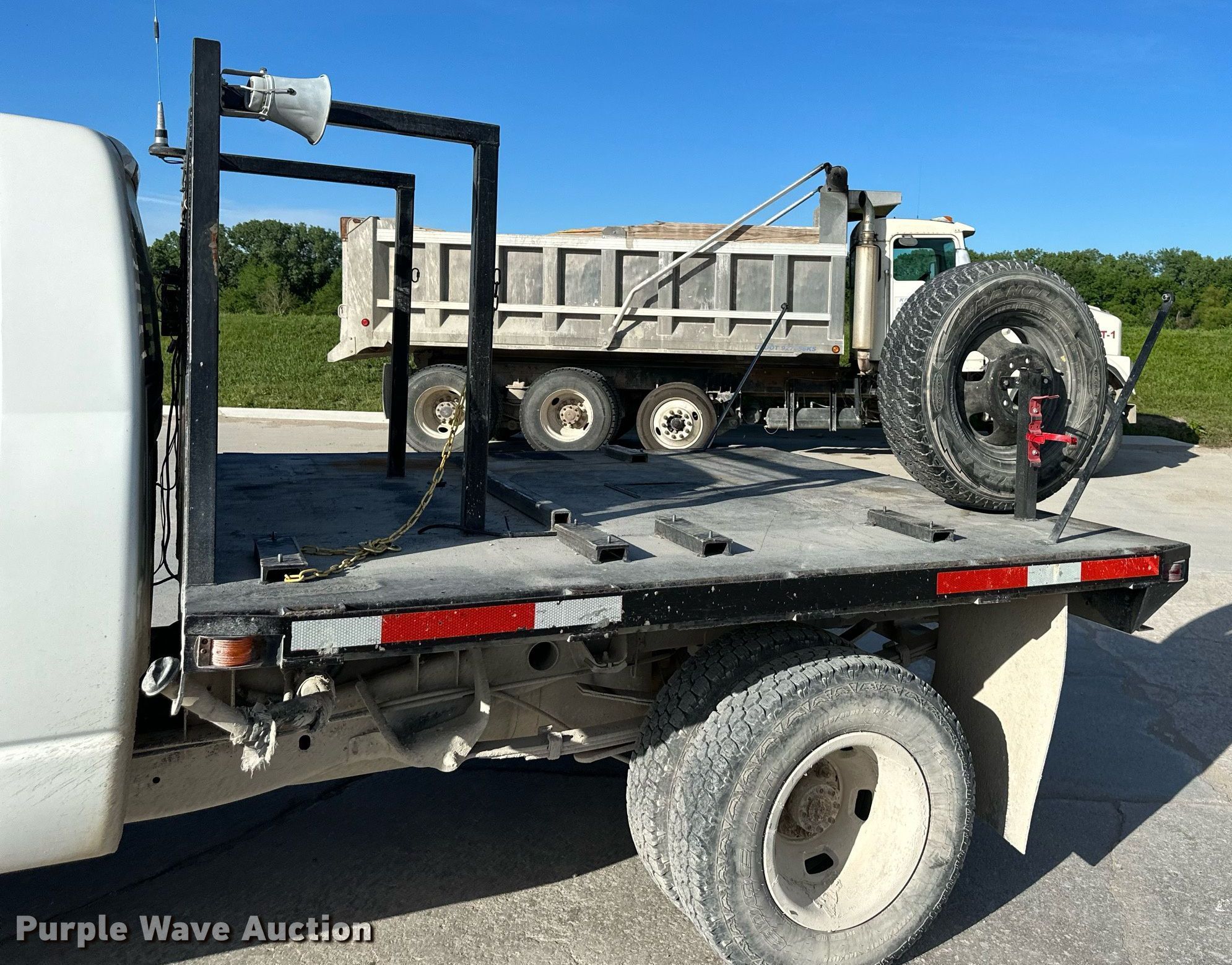 This 2003 Dodge Ram 3500 flatbed pickup truck will sell to the highest bidder regardless of price.