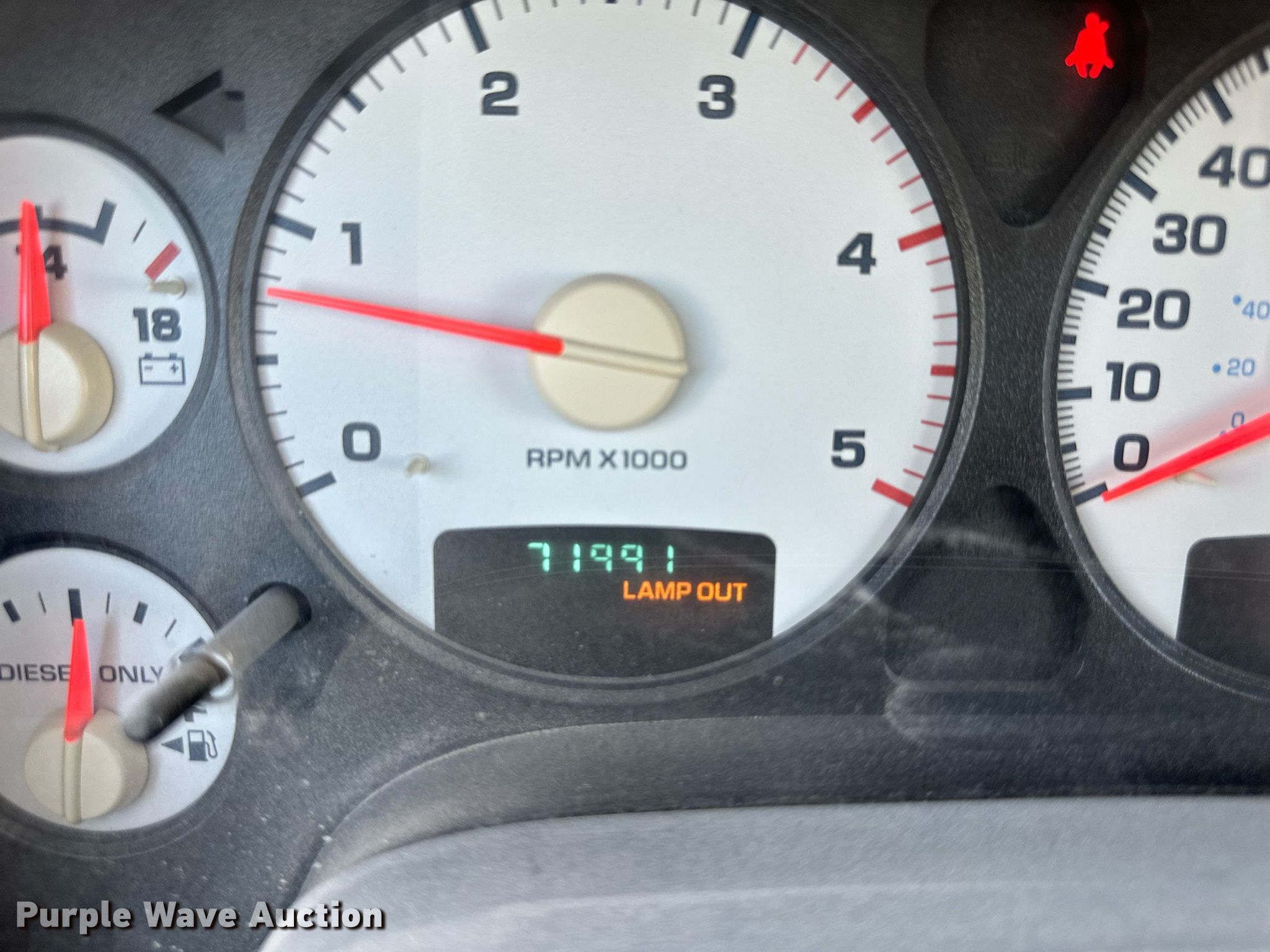 2003 Dodge Ram 3500 flatbed pickup truck. Miles: 71,991 on odometer, VIN: 3D7MU46643G746871. Engine Displacement: 5.9L L6 OHV, Cylinders: 6, Fuel type: Diesel. Transmission Manual, Speed: 5, Four wheel drive. Interior AC, Heat, Cruise control. Features Flatbed. Tires Size: 235/80R17. Notes Dash warning indicator: Lamp out. Kansas title. Title distribution may be delayed up to 14 days from verification of funds. The Monarch Cement Company (Kansas Sand & Concrete) - Open inspection June 20. Topeka, KS 66616