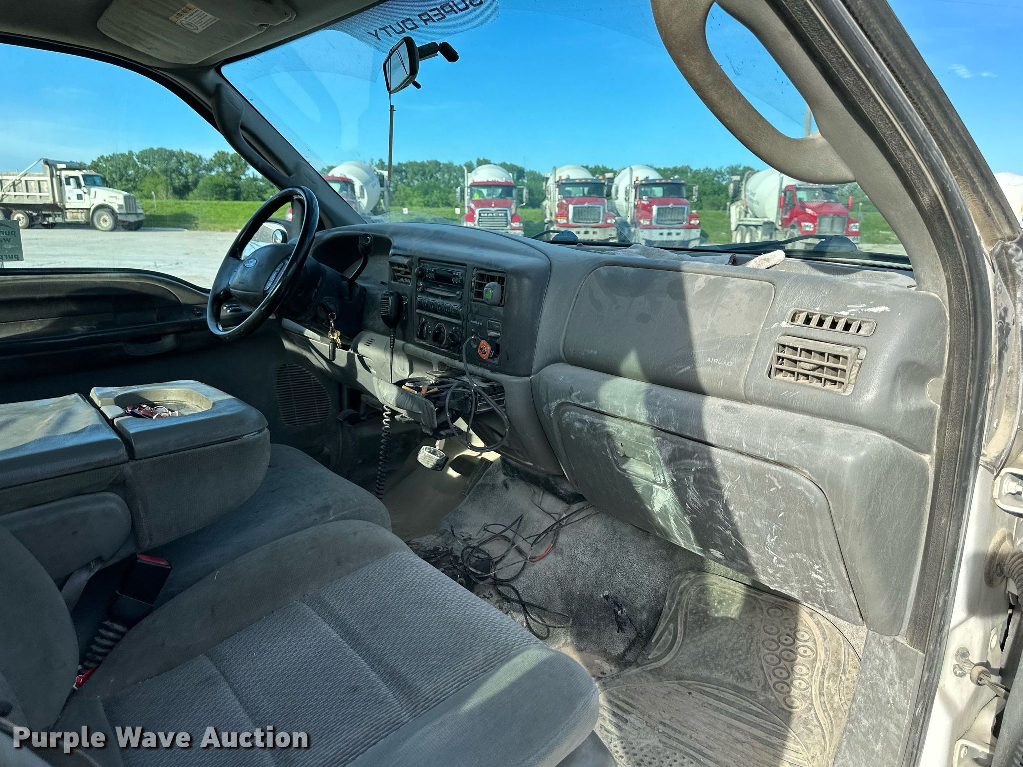 2004 Ford F250 Super Duty SuperCab utility bed pickup truck. Miles: 157,083 on odometer, VIN: 1FDNX20L04EB45566. Engine Displacement: 5.4L V8 SOHC, Cylinders: 8, Fuel type: Gas. Transmission Automatic. Interior AC, Heat. Features Utility bed 8' L. Tires Size: 235/85R16. Notes Contents not included, Knaack toolbox not included. Kansas title. Title distribution may be delayed up to 14 days from verification of funds. The Monarch Cement Company (Kansas Sand & Concrete) - Open inspection June 20. Topeka, KS 66616
