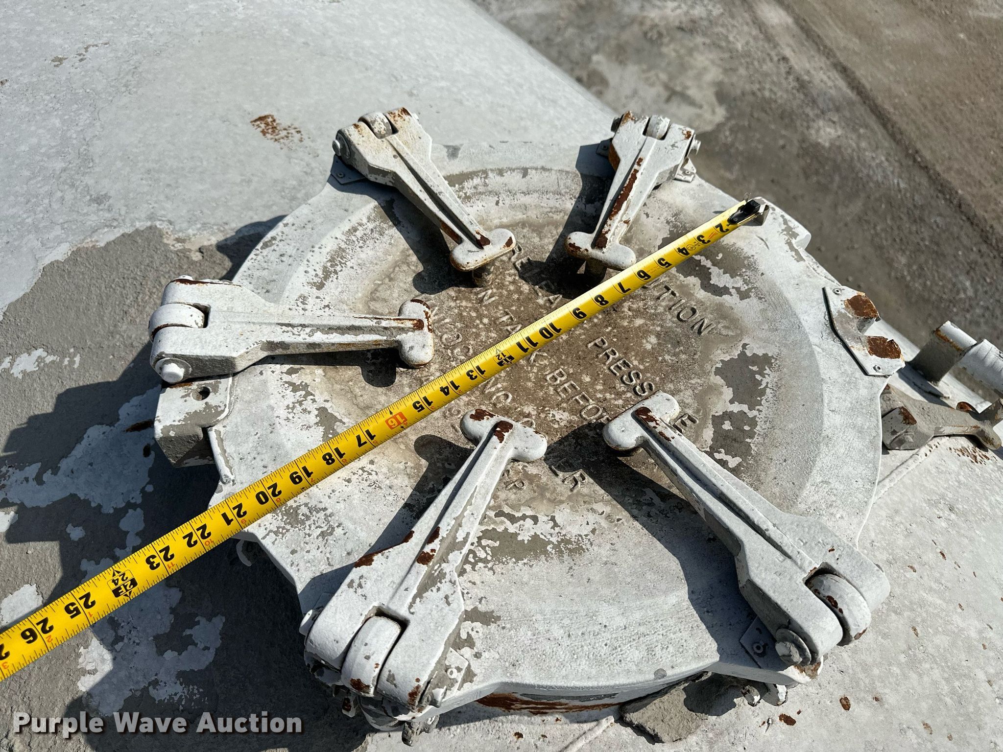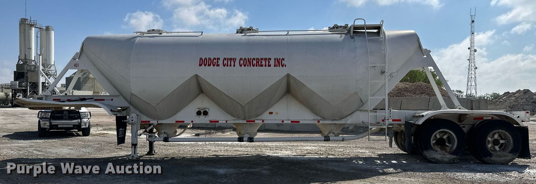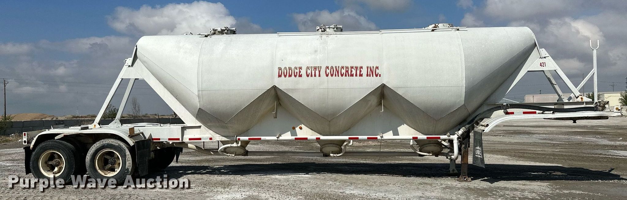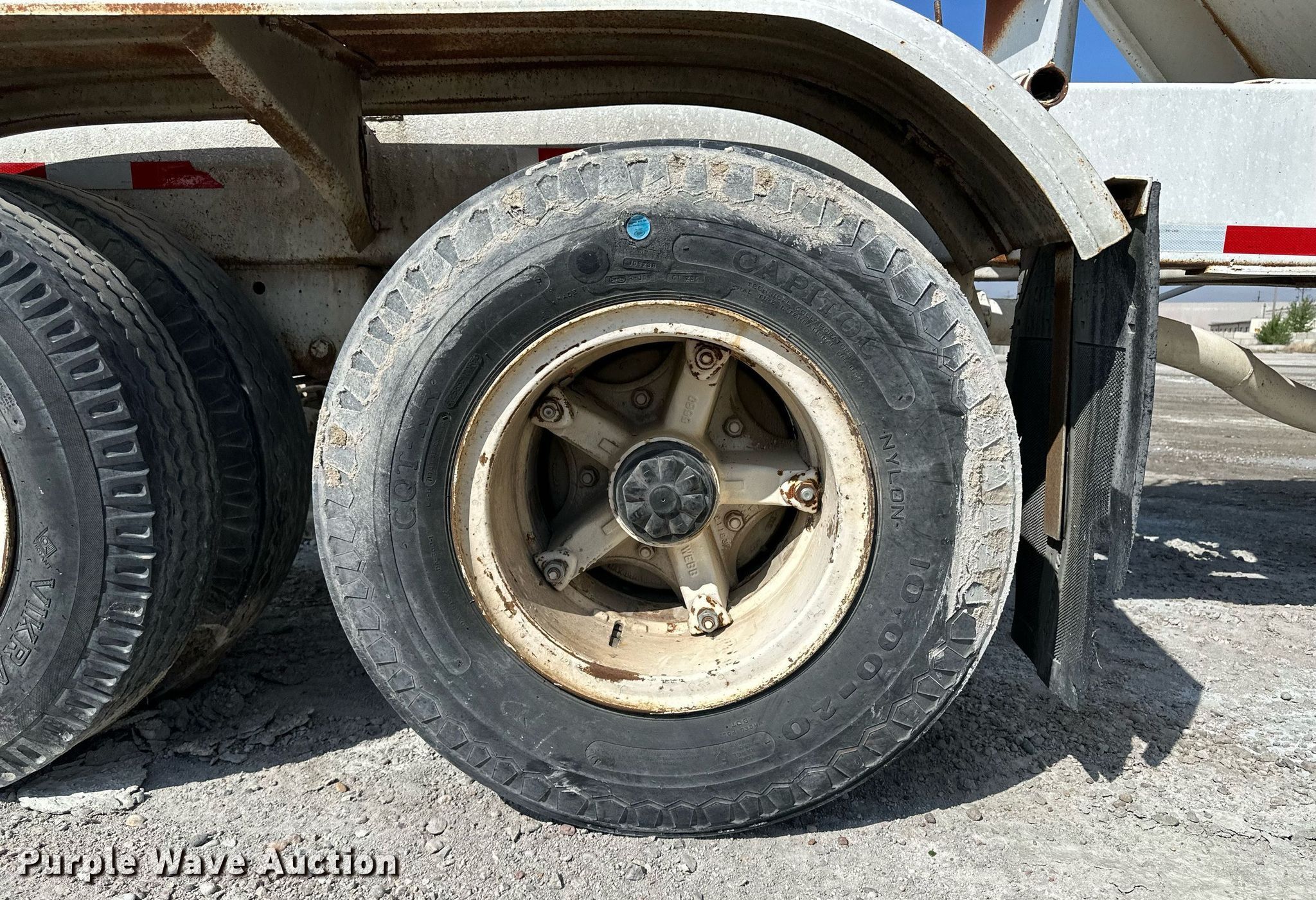 1979 Fruehauf tank trailer. VIN: 0MV814329. Dimensions Overall: 40' L x 96" W. Features Tank type: Steel, Capacity: 985 cu. ft., Compartments: 3, Outlet valves: 1 Size: 4", No. of manways/manholes: 3 Width: 20". Chassis Landing gear: Dual, Suspension: Air, Brakes: Air, Axles: Tandem. Tires Steel wheels, Size: 10.00-20. Kansas title. Title distribution may be delayed up to 14 days from verification of funds. The Monarch Cement Company (Dodge City Concrete). Garden City, KS 67846