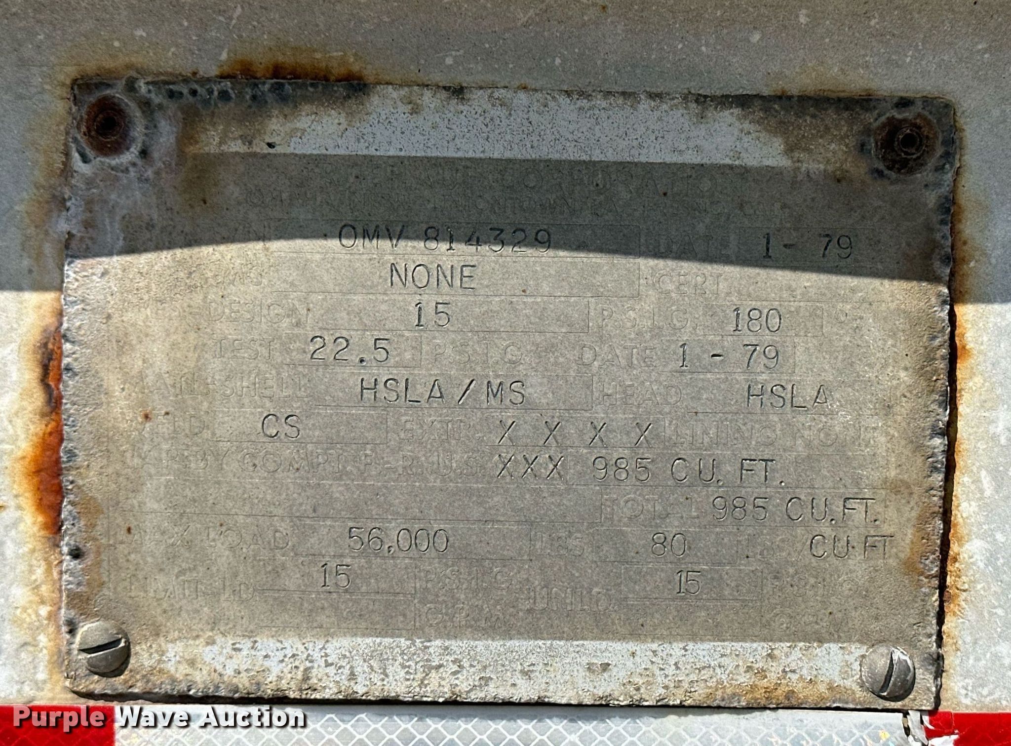 Purple Wave is selling a used Tank Trailer in Kansas. This item is a 1979 Fruehauf tank trailer with the following: VIN: 0MV814329