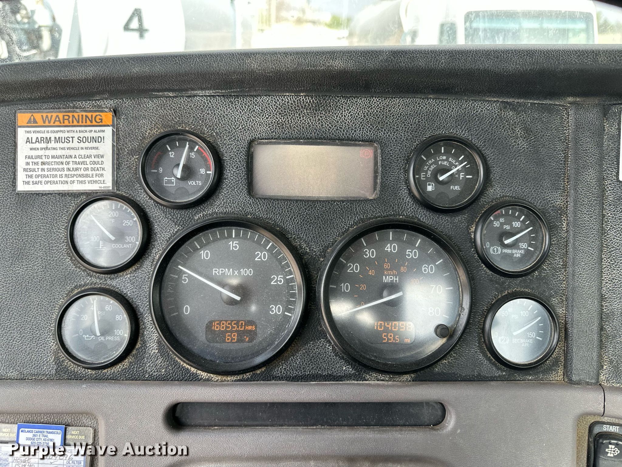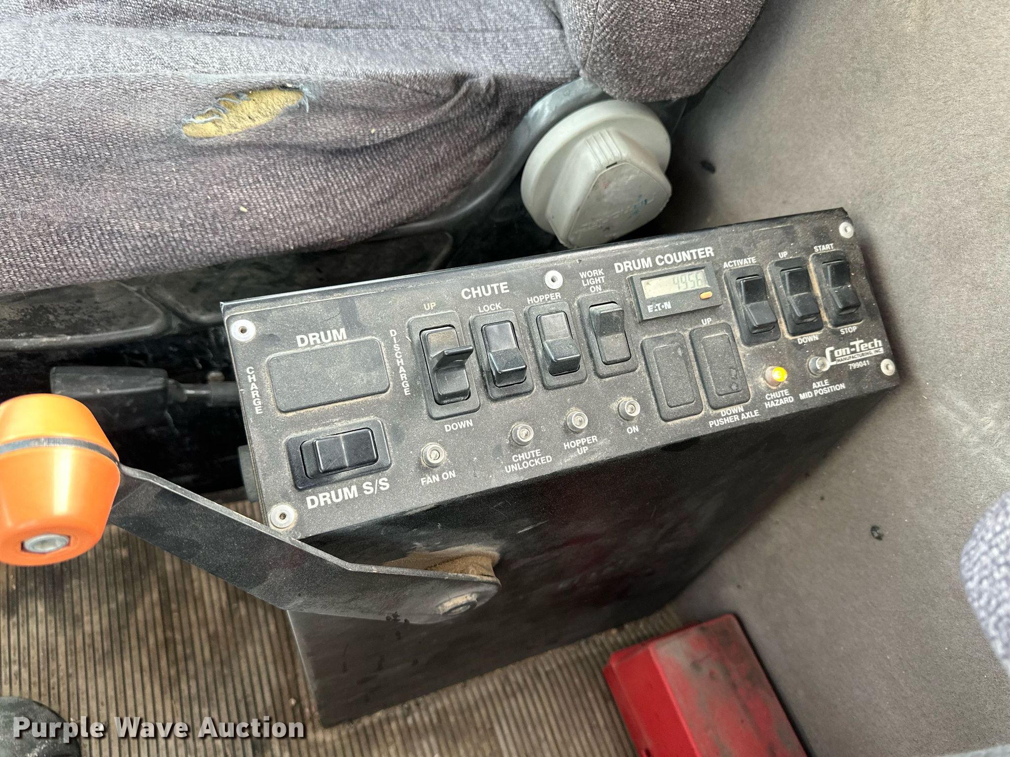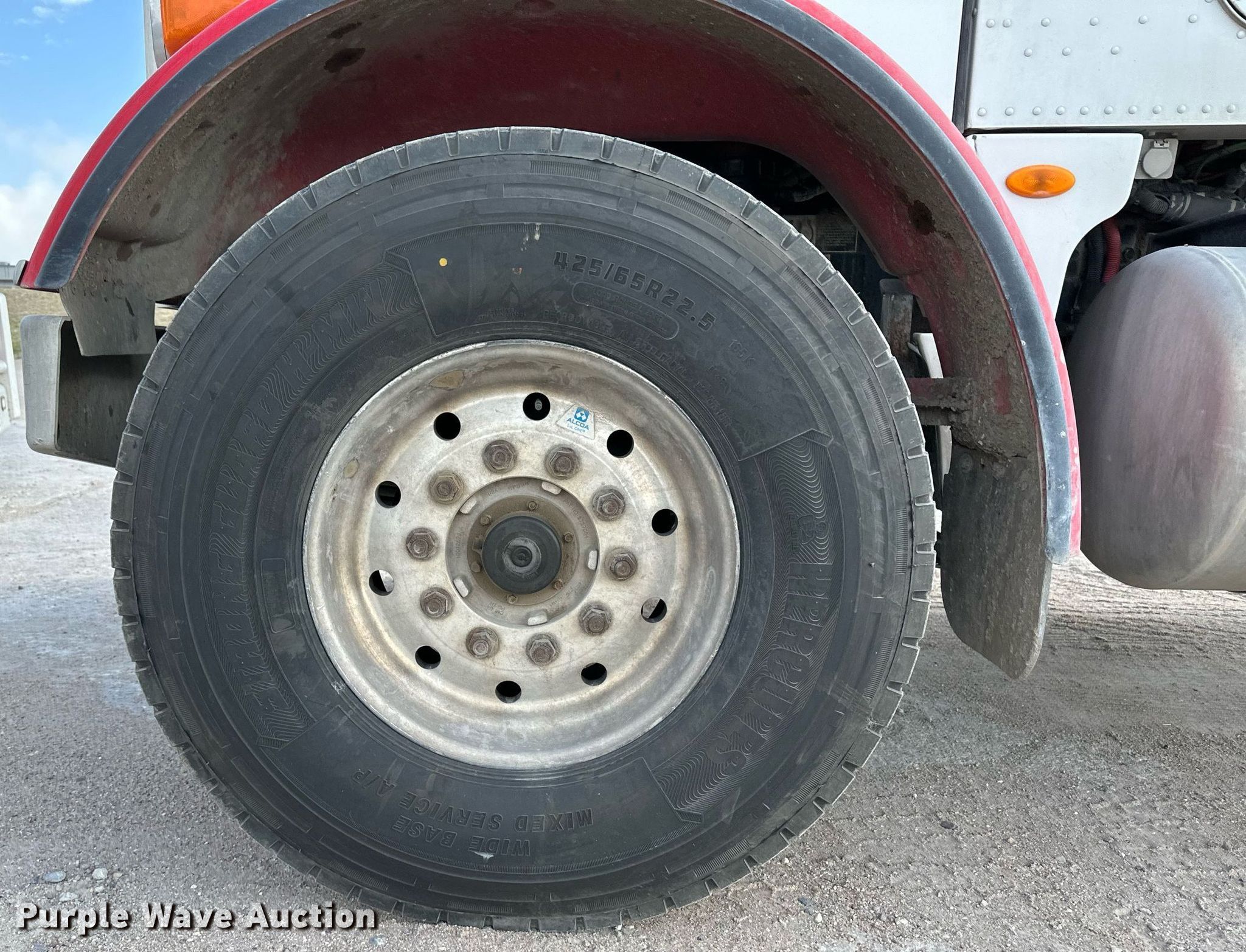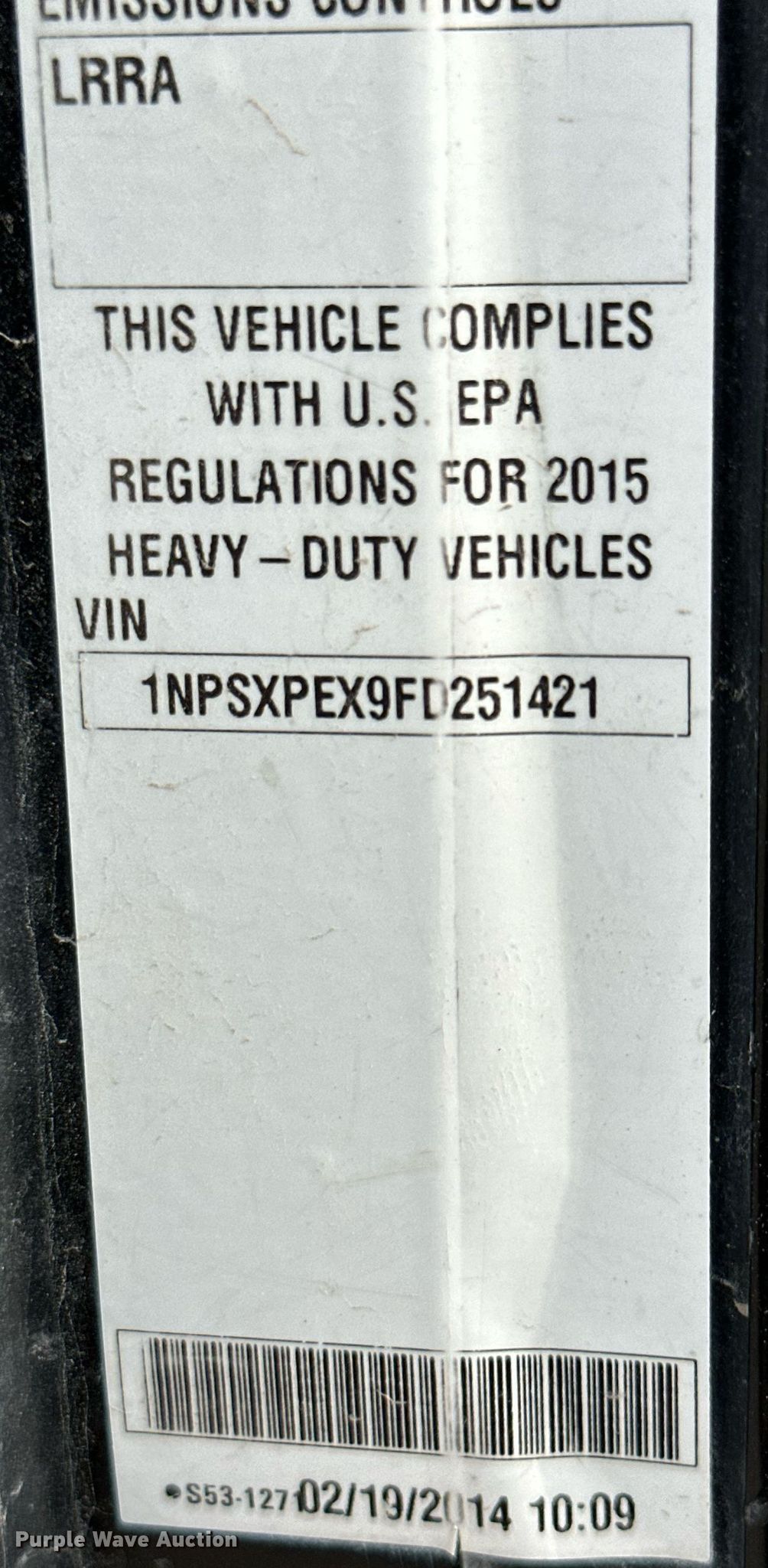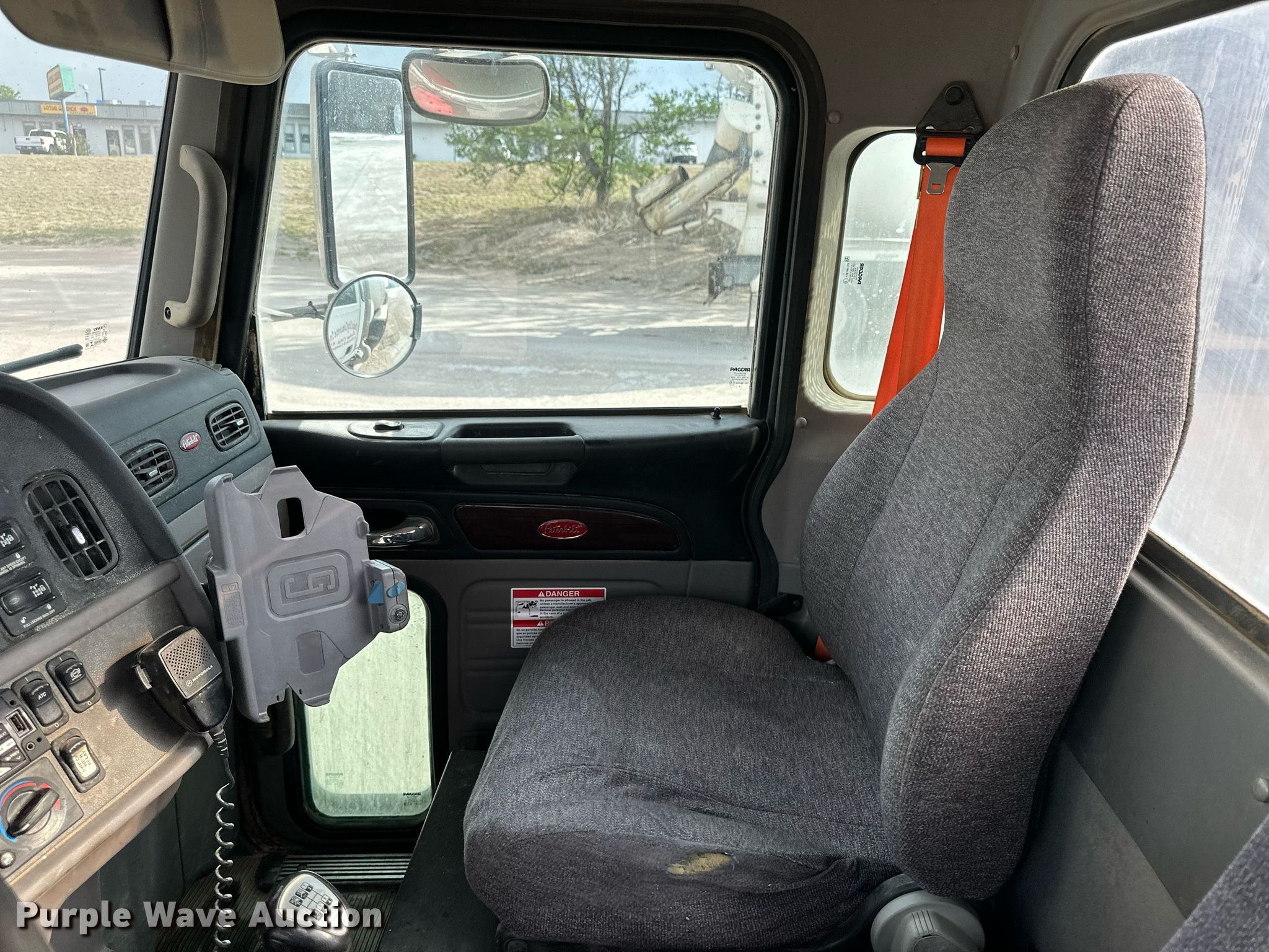 2015 Peterbilt 365 ready mix truck. Miles: 104,098 on odometer, Hours: 16,855 on meter, VIN: 1NPSXPEX9FD251421. Engine Paccar MX-13, Displacement: 12.9L, Cylinders: 6, Fuel type: Diesel. Transmission Manual, Speed: 11. Chassis Axles: 4, Pusher axle Steerable, Tag axle, Differential lock: Inter-axle, Suspension: Spring, Brakes: Air, PTO. Interior AC, Heat, Power windows, Cruise control. Features Mixer Discharge: Rear, In-cab controls, Rear drum controls, Water tank capacity: 150 gallons, Chute Extensions: 3, Chute type: Aluminum.. Tires Front: 425/65R22.5, Rear: 11R22.5, Lift axle: 255/70R22.5. Kansas title. Title distribution may be delayed up to 14 days from verification of funds. The Monarch Cement Company (Dodge City Concrete). Dodge City, KS 67801