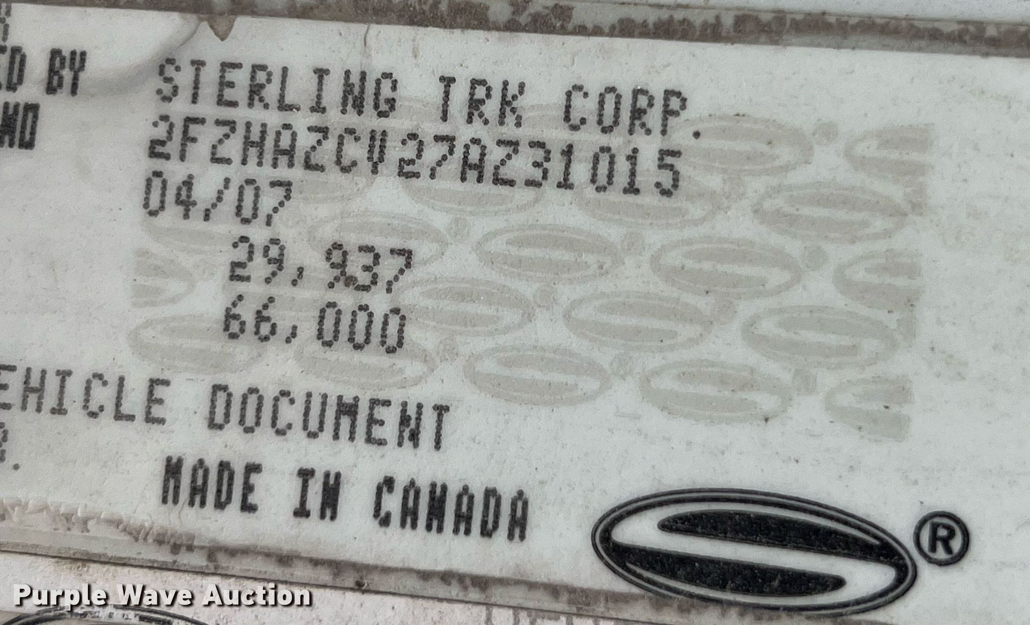 Purple Wave is selling a used Ready Mix or Pump Truck in Kansas. This item is a 2007 Sterling L9500 ready mix truck with the following: Miles: 115,233 on odometer, VIN: 2FZHAZCV27AZ31015