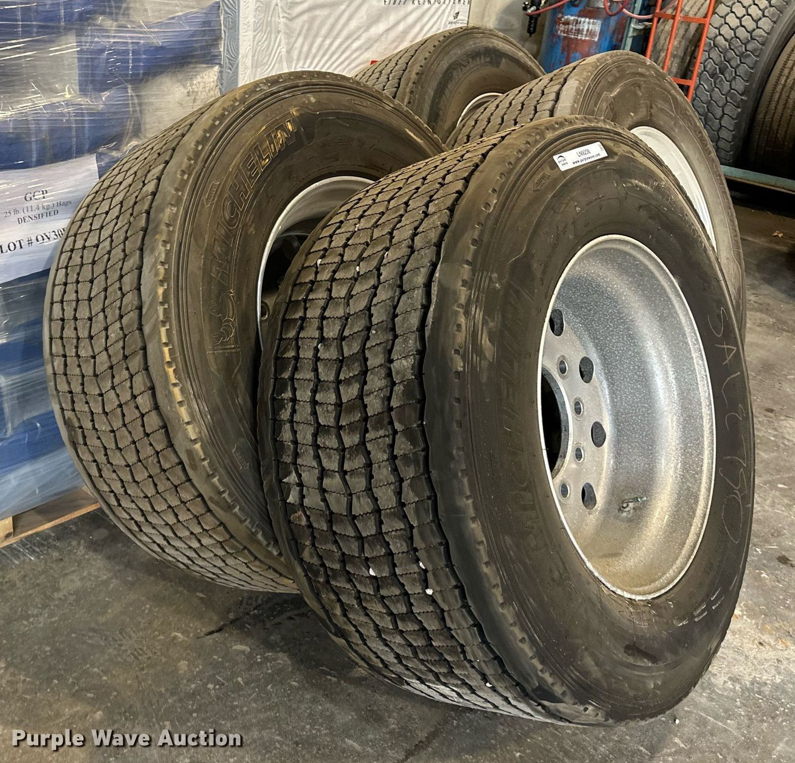 Purple Wave is selling a used Fleet Tires in Kansas. This item is a (4) Michelin 445/50R22.5 tires and wheels with the following: (4) Michelin 445/50R22.5 tires and wheels. The Monarch Cement Company (Kansas Sand & Concrete) - Open inspection June 20. Topeka, KS 66616