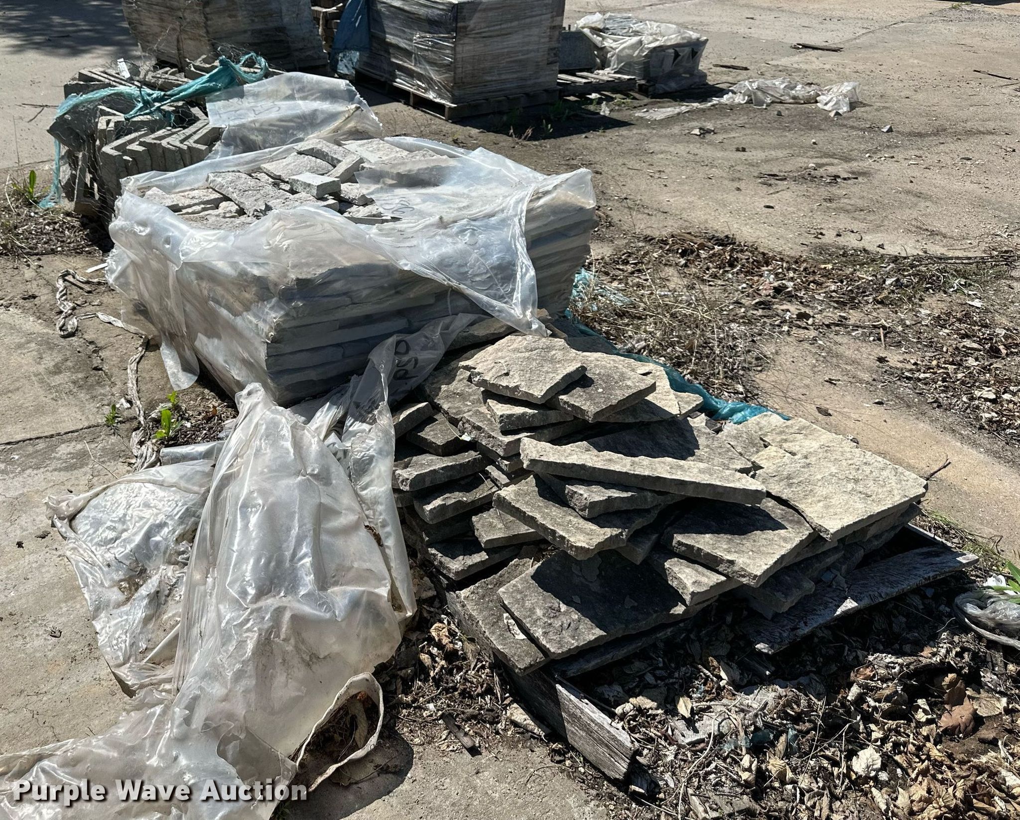 Purple Wave is selling a used Building Materials in Kansas. This item is a Machine split rubble bricks with the following: (180) corners, (272) flats, Color: Plaza gray