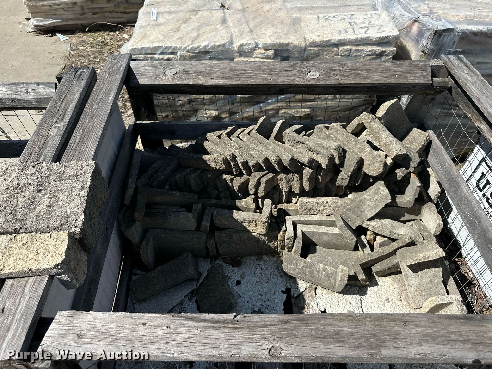 Purple Wave is selling a used Building Materials in Kansas. This item is a Machine split rubble bricks with the following: (166) corners, (400) flats, Color: Chestnut Shell