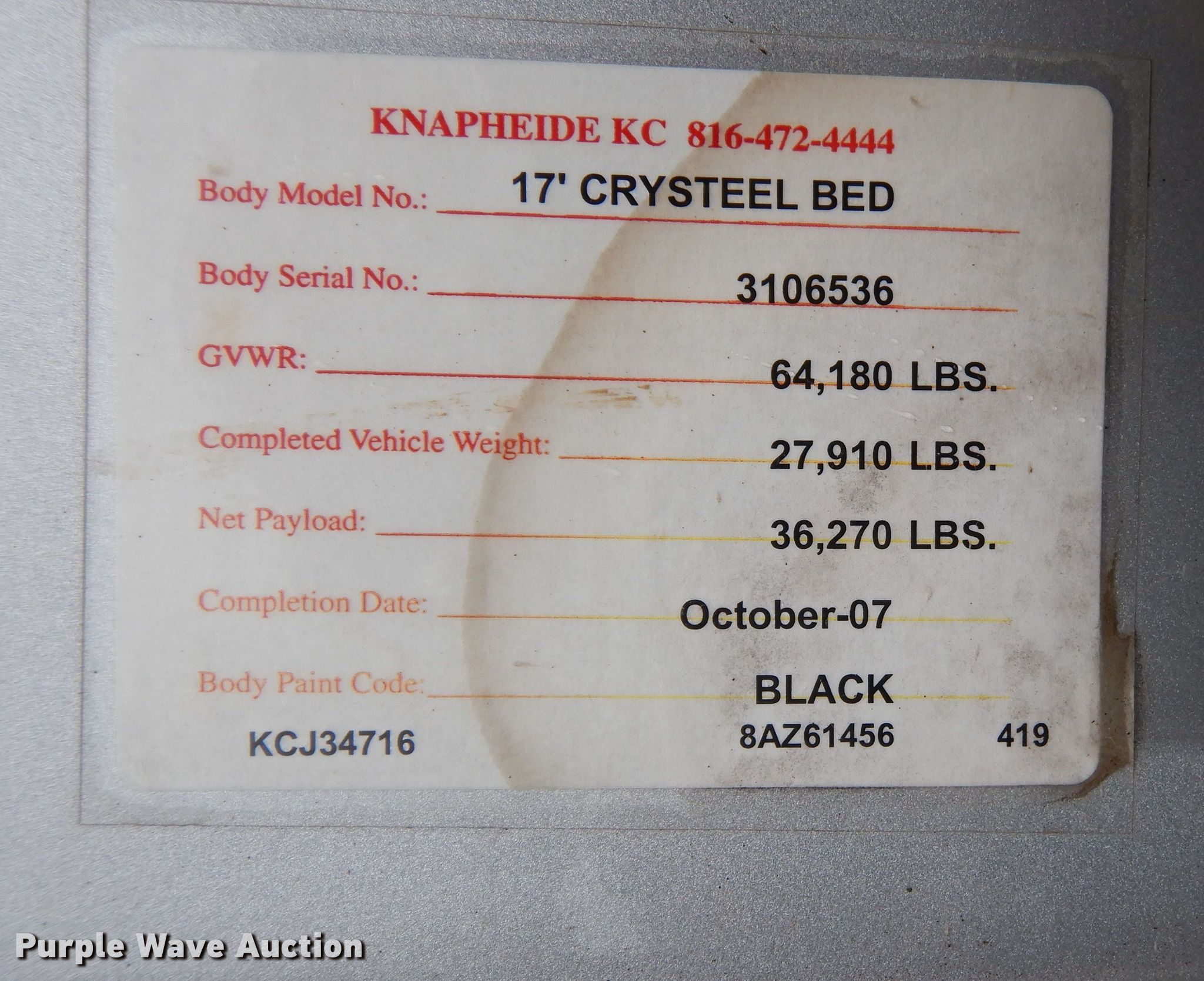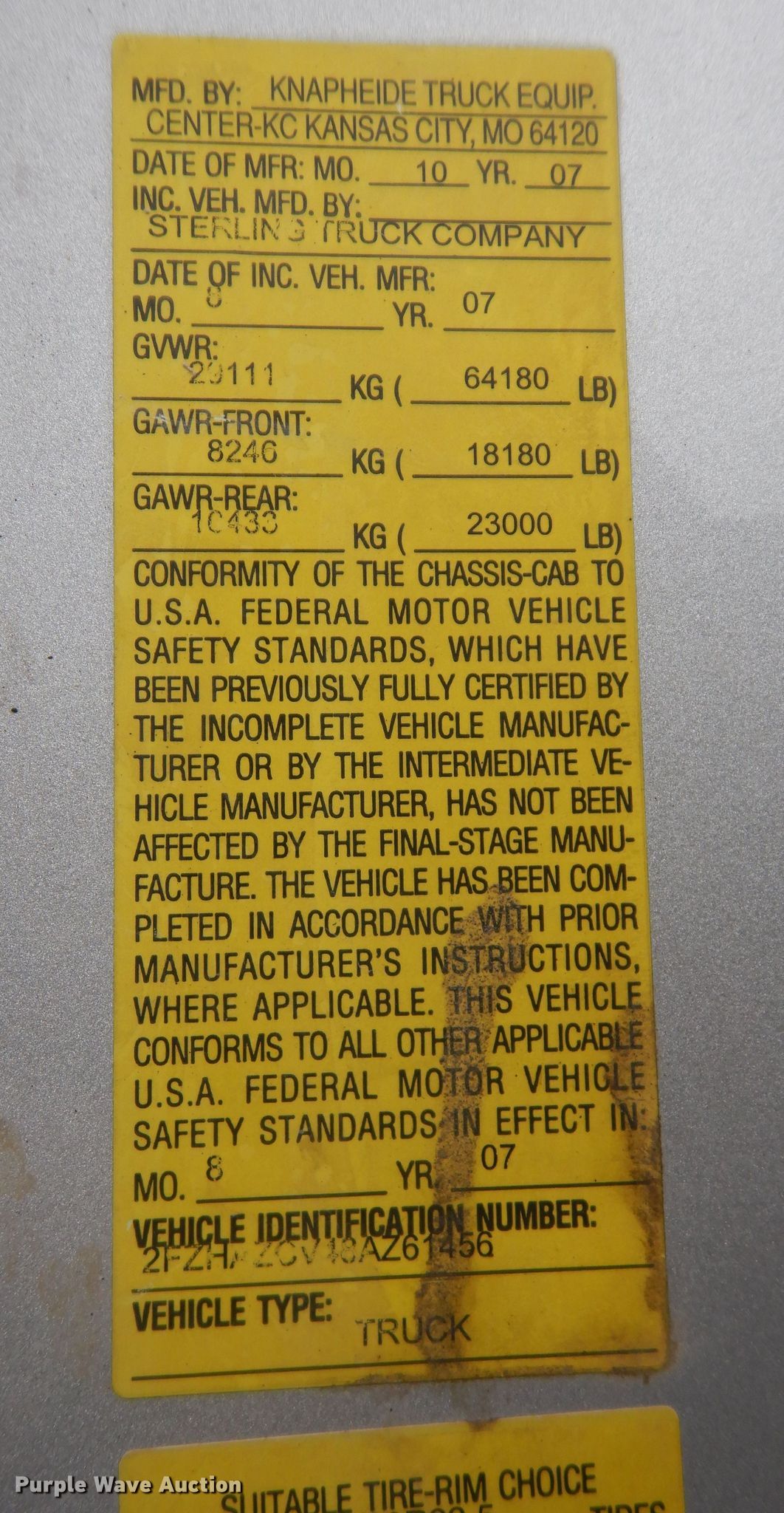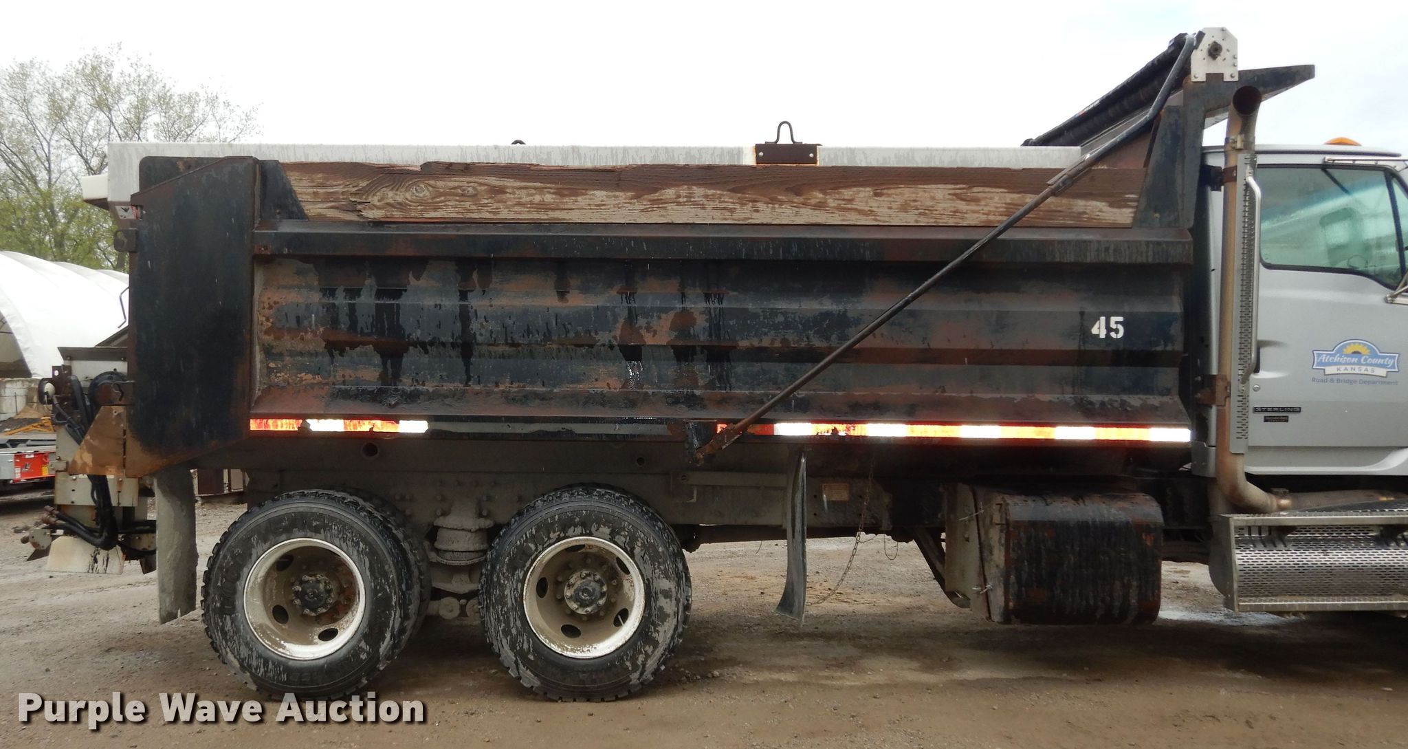 Purple Wave is selling a used Construction Dump Truck in Kansas. This item is a 2008 Sterling LT9500 dump truck with the following: Miles: 203,637 on odometer, Hours: 8,996 on meter, VIN: 2FZHAZCV48AZ61456, Unit #: 45