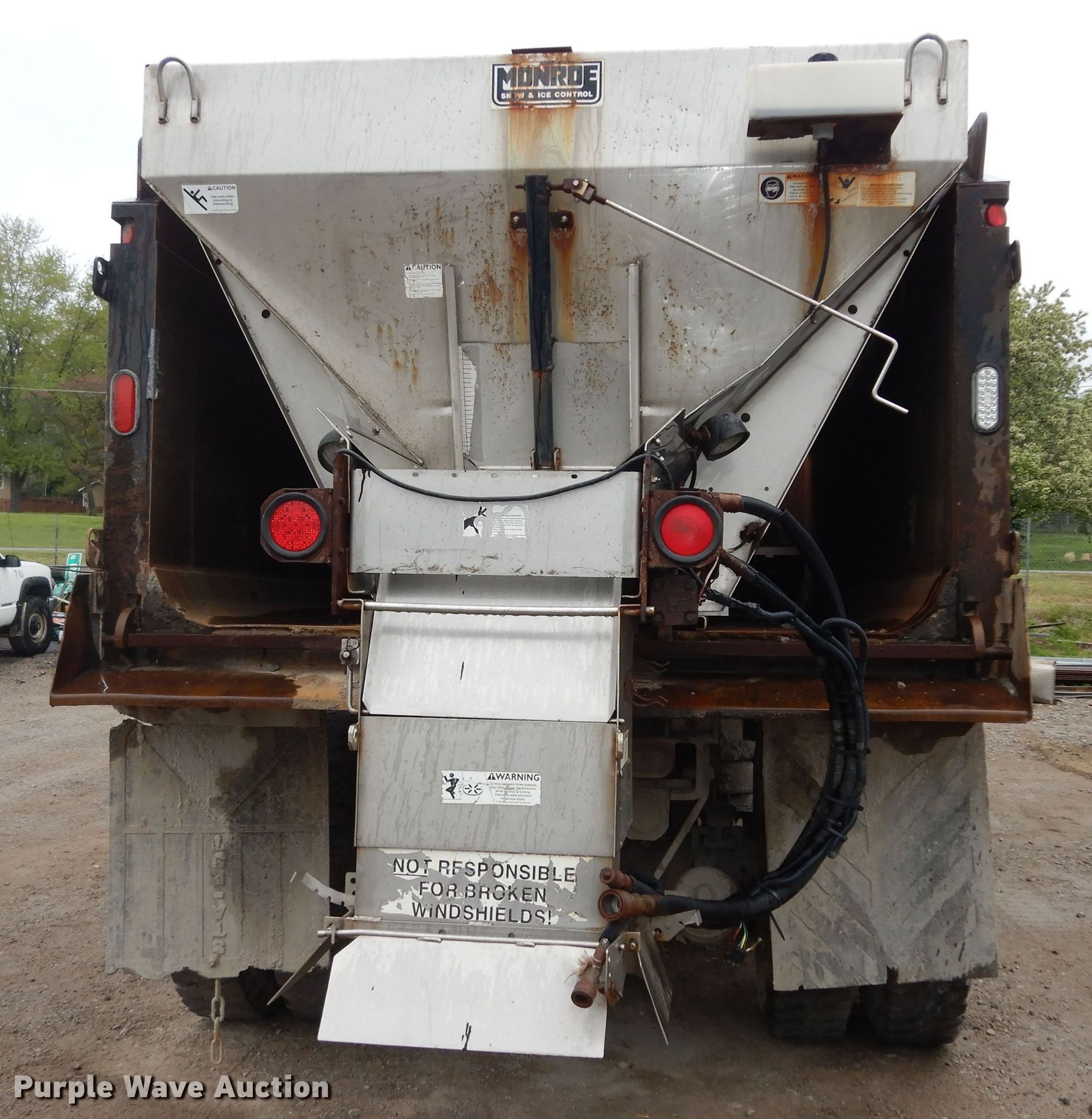 2008 Sterling LT9500 dump truck. Miles: 203,637 on odometer, Hours: 8,996 on meter, VIN: 2FZHAZCV48AZ61456, Unit #: 45. Engine Mercedes Benz , Displacement: 12.0L, Cylinders: 6, Fuel type: Diesel. Transmission Eaton fuller Roadranger RT/RTO-8 LL, Manual, Speed: 10. Chassis Axles: Tandem, Suspension: Spring over walking beam, Brakes: Air, Front mount PTO, GVWR: 64,180 lbs FAWR: 18,180 lbs, RAWR: 23,000 lbs, Wheelbase: 236". Interior AC, Heat, Heated mirrors, Power windows, Cruise control. Features Dump bed 17' L x 8' W, Side height: 32", Side board height: 12", Bed type: Steel, Roll tarp, Ram: Single , End gate: Air operated, Spreader Monroe MSV1928456SF2, Plow Monroe MP41R12ISCT10GAHHL, Width: 122". Tires Front: 315/80R22.5, Rear: 11R22.5. Notes Dash warning indicator: ABS, End gate removed but included, Possible hydraulic issues, Bed lift issues. Kansas title. Atchison, KS 66002