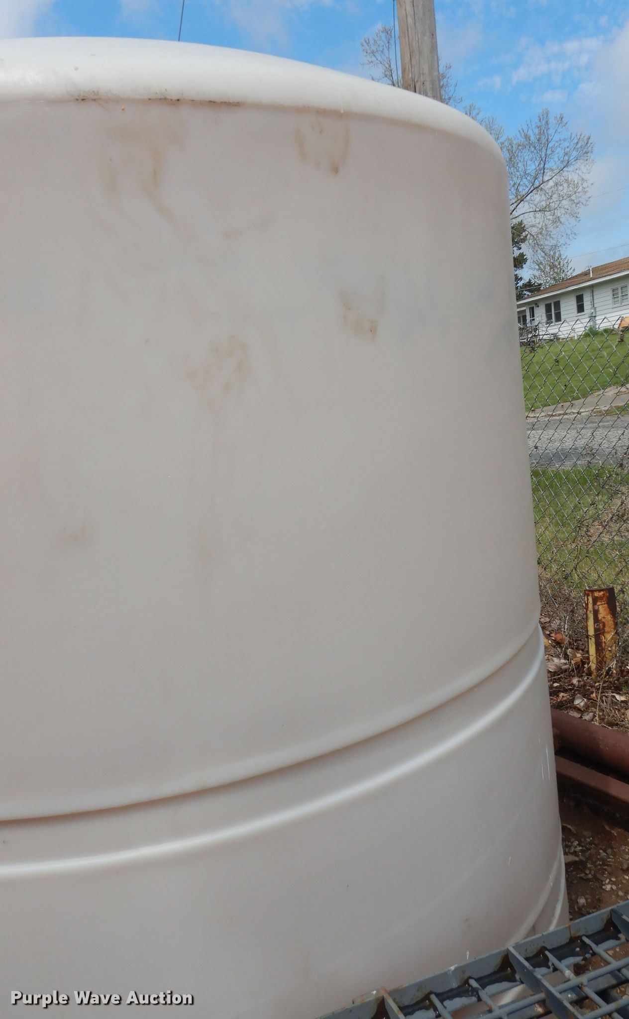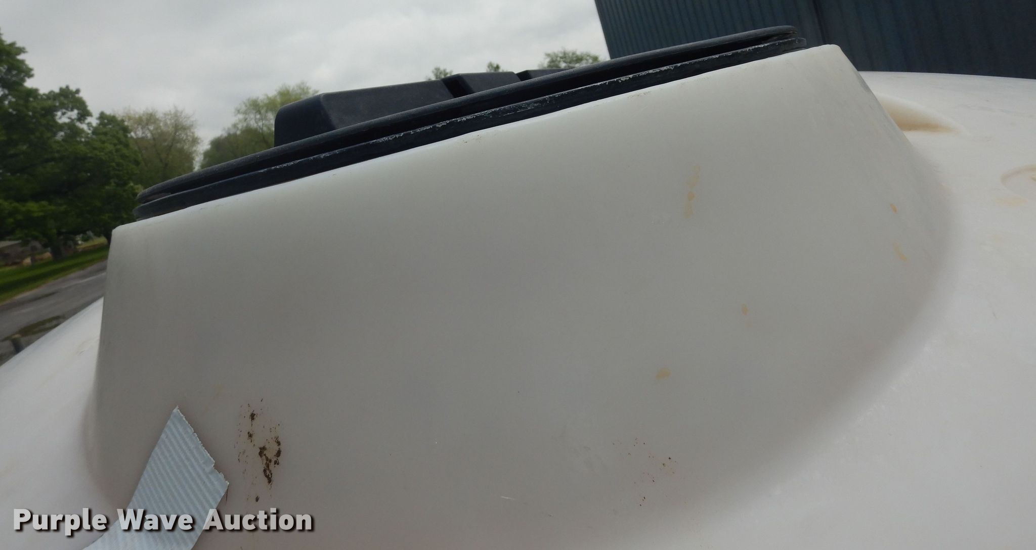 This 1,000 gallon poly tank will sell to the highest bidder regardless of price.