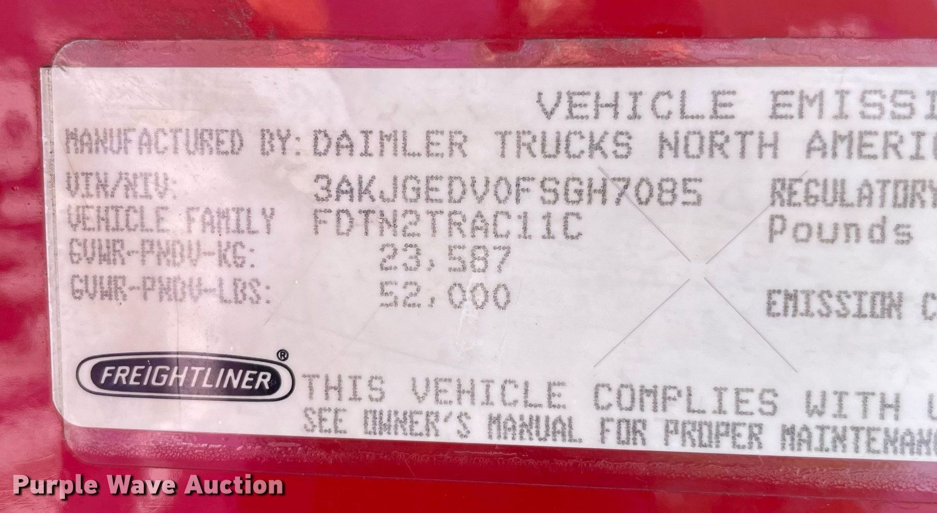Purple Wave is selling a used Truck Tractor in Oklahoma. This item is a 2015 Freightliner Cascadia 125 semi truck with the following: Miles: 549,712 on odometer, VIN: 3AKJGEDV0FSGH7085