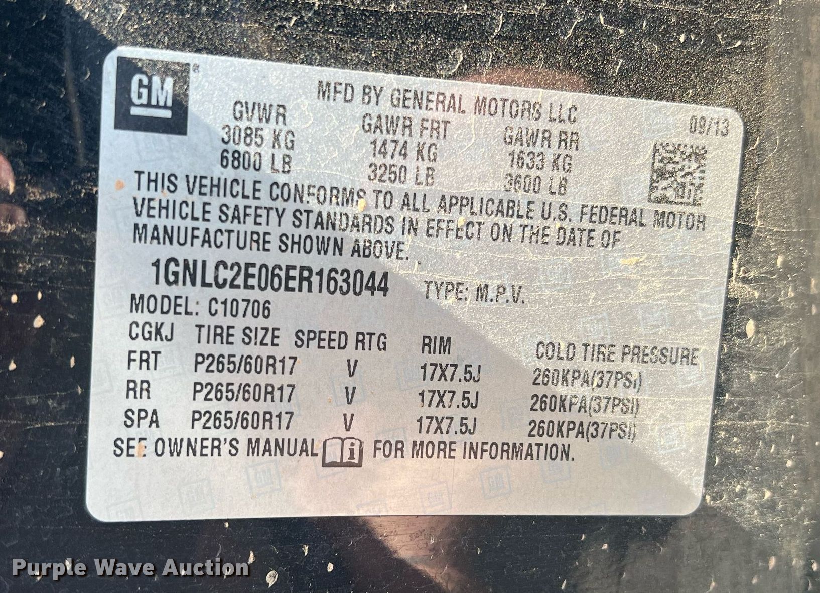 2014 Chevrolet Tahoe Police SUV. Miles: 67,526 on odometer, VIN: 1GNLC2E06ER163044. Engine Displacement: 5.3L V8 OHV, Cylinders: 8, Fuel type: Gas. Transmission Automatic. Interior AC, Heat, Seat: Power driver, Power passenger, Power windows, Power locks, Cruise control. Tires Size: 265/60R17. Notes Spot light will be removed prior to auction. Texas title. Title distribution may be delayed up to 14 days from verification of funds. City Hall. 1709 Avenue H. Levelland, TX 79336