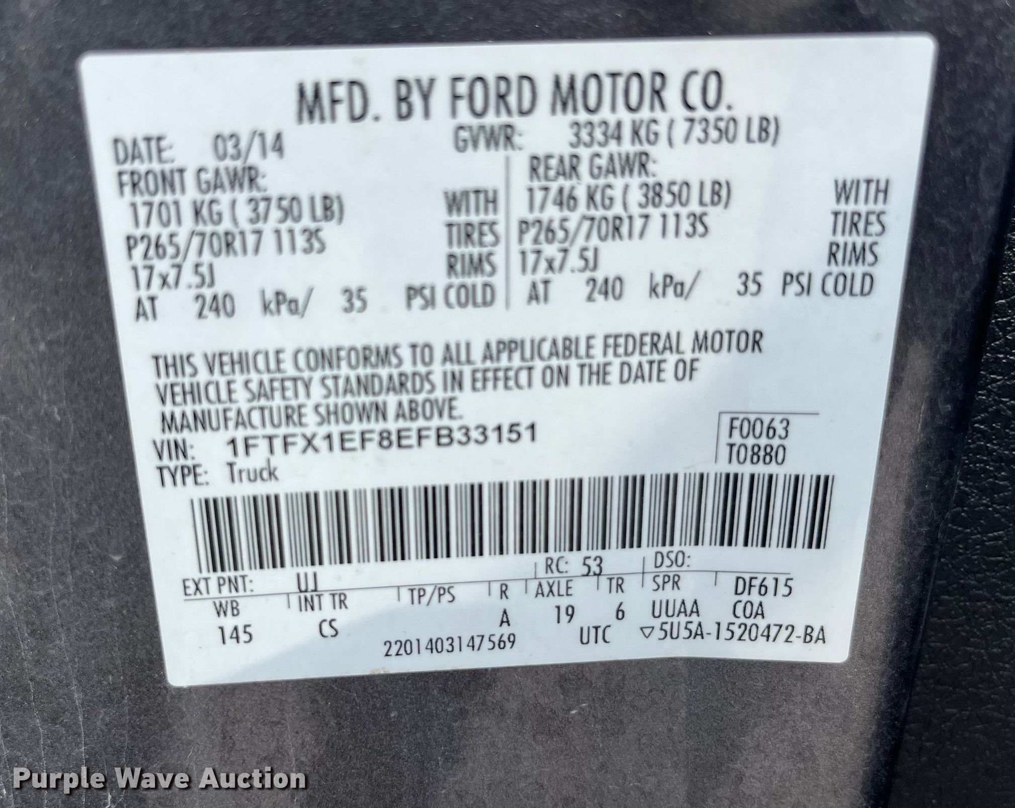 Purple Wave is selling a used 1/2 Ton Pickup or Van in Missouri. This item is a 2014 Ford F150 XL SuperCab pickup truck with the following: Miles: 249,571 on odometer, VIN: 1FTFX1EF8EFB33151