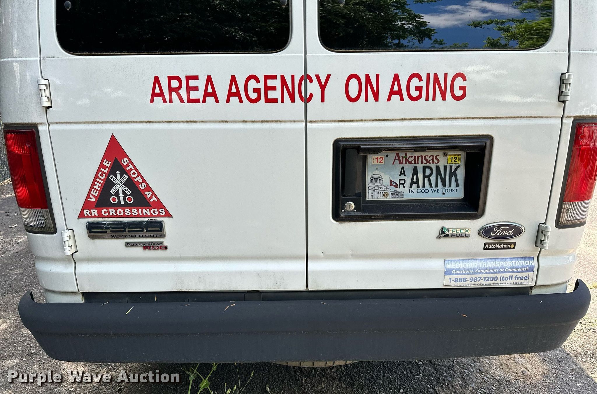 2013 Ford E350 Super Duty XL van. Miles: 194,978 on odometer, VIN: 1FBSS3BL5DDB33609. Engine Displacement: 5.4L V8 SOHC, Cylinders: 8, Fuel type: Gas. Transmission Automatic. Interior AC, Heat, Cruise control. Tires Size: 245/75R16. Notes Dead battery, Transmission issues. Arkansas title. Title distribution may be delayed up to 14 days from verification of funds. Area Agency on Aging of Western Arkansas, Inc.. 801 South Arkansas Avenue. Russellville, AR 72801