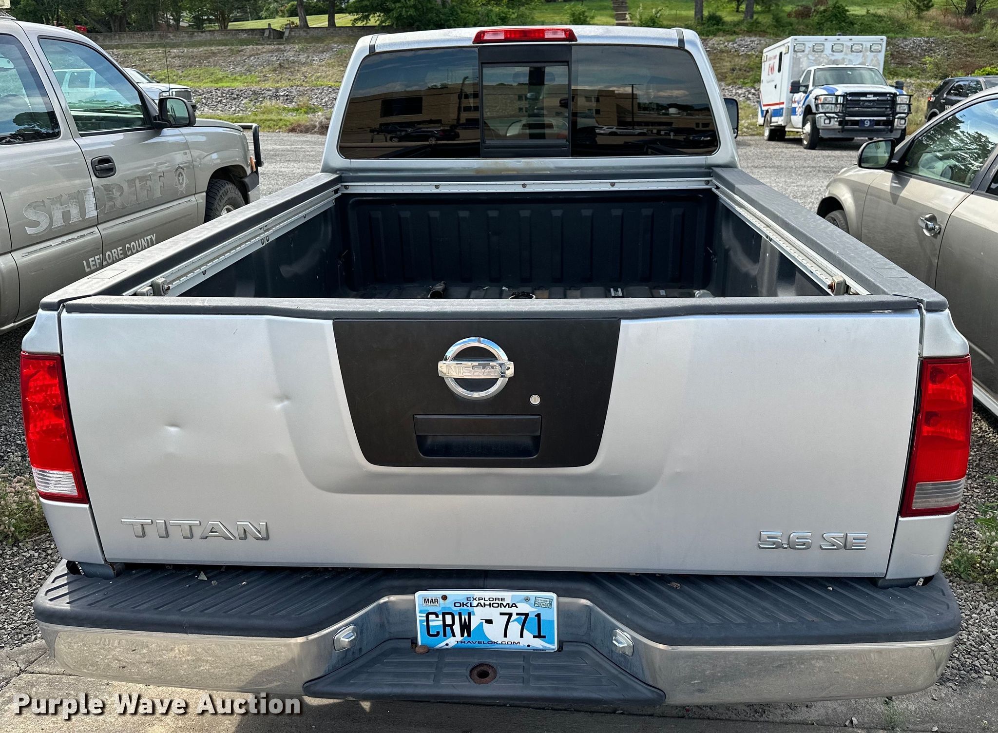 2004 Nissan Titan Ext. Cab pickup truck. Miles: 125,152 on odometer, VIN: 1N6AA06A84N537559. Engine Displacement: 5.6L V8 DOHC, Cylinders: 8, Fuel type: Gas. Transmission Automatic. Interior AC, Heat, Seat: Power driver, Heated mirrors, Power windows, Power locks, Cruise control. Tires Size: 265/70R18. Notes Windshield chipped or cracked, Dead battery, Non-operational unit. Oklahoma rebuilt salvage title. Title distribution may be delayed up to 14 days from verification of funds. District 16 DA Office. 100 S Broadway. Poteau, OK 74953