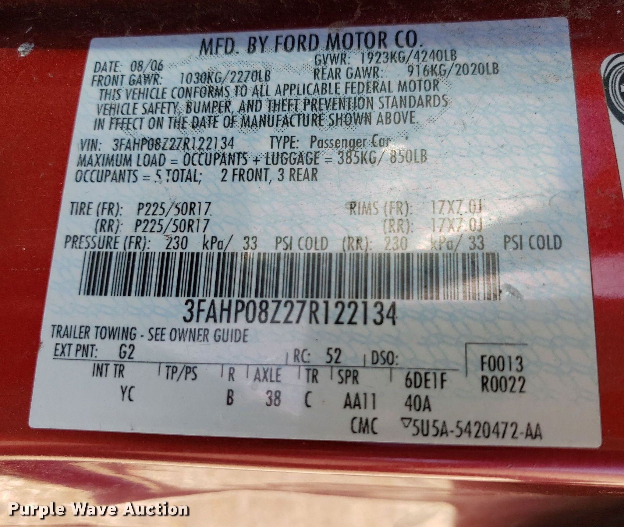 • VIN: 3FAHP08Z27R122134