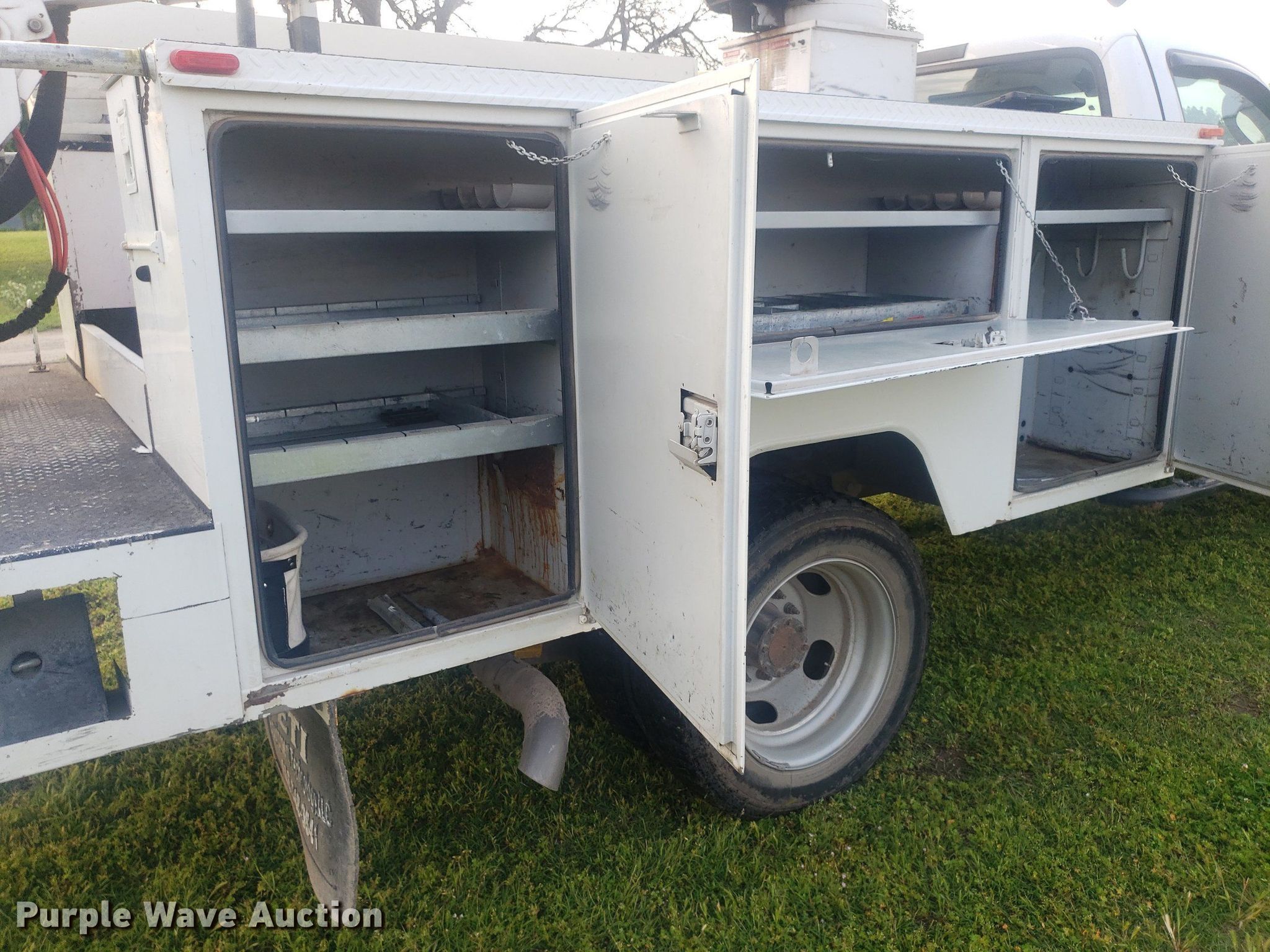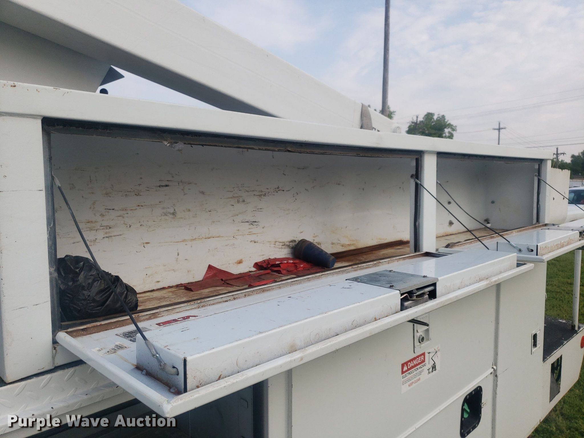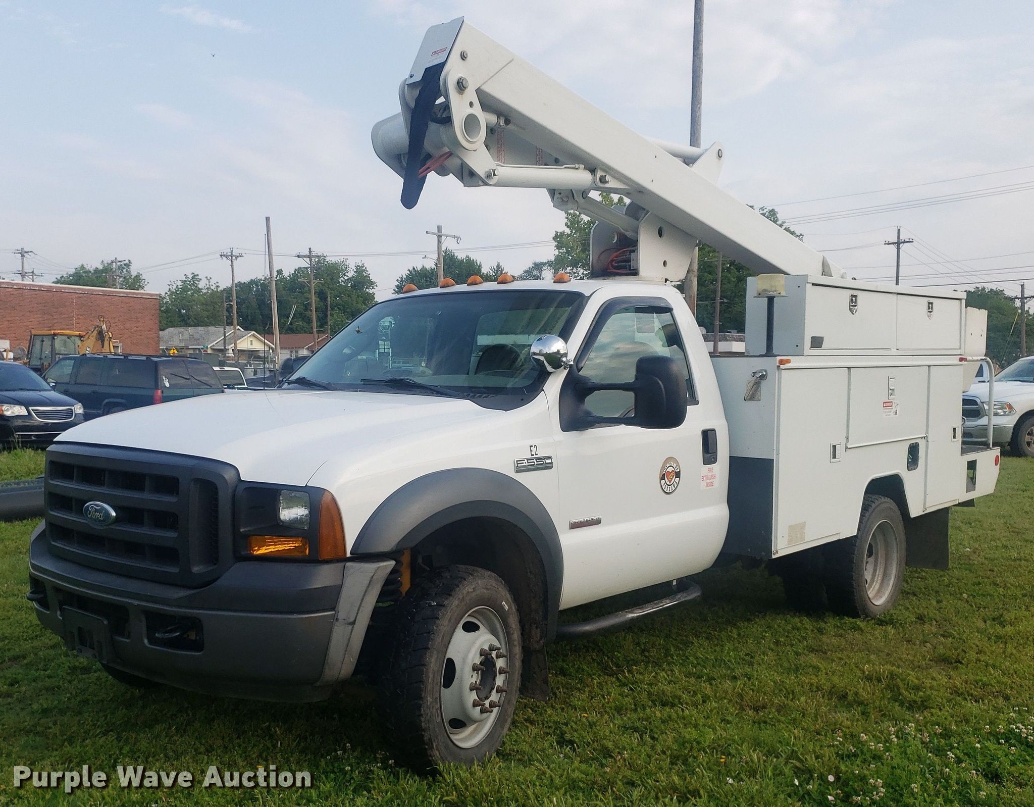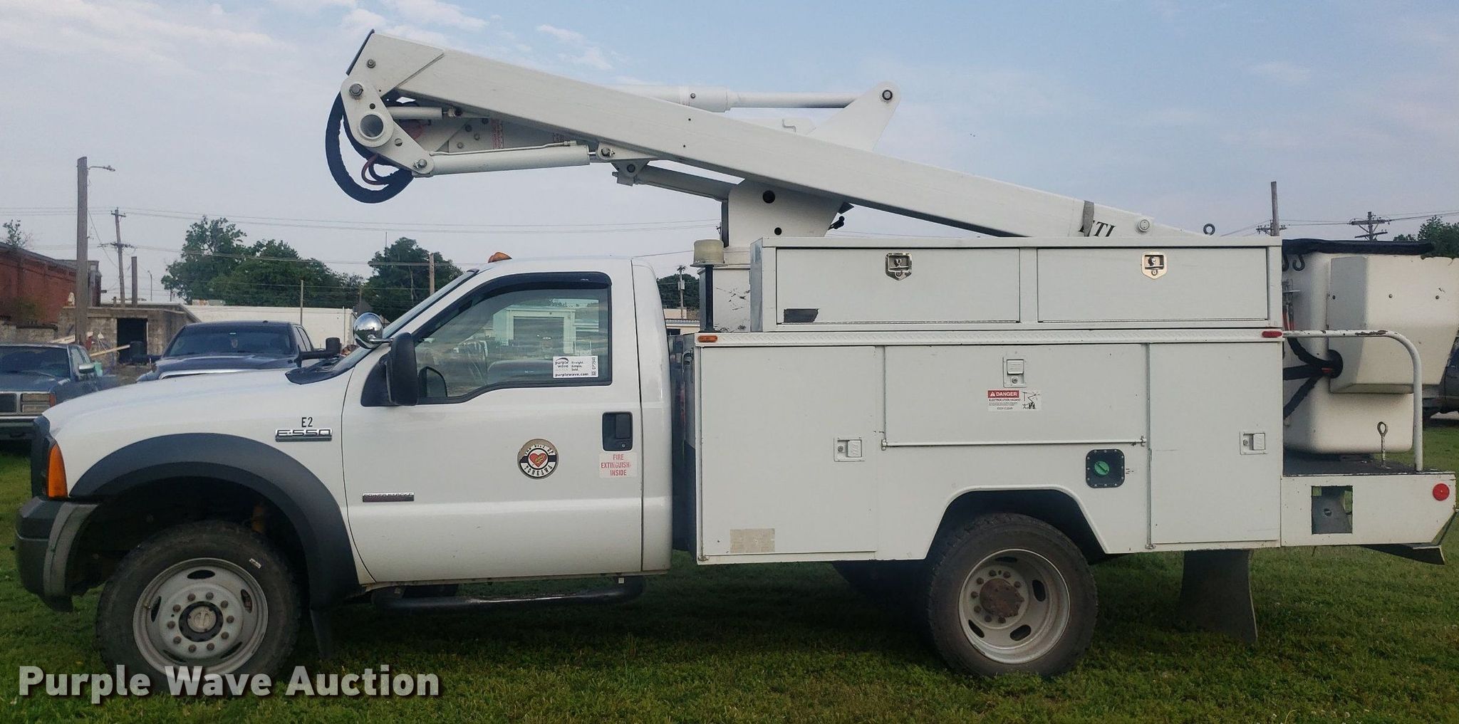 Purple Wave is selling a used Bucket Truck in Oklahoma. This item is a 2007 Ford F550 Super Duty bucket truck with the following: Miles: 59,768 on odometer, Hours: 4,520 on meter, VIN: 1FDAF57P97EB11819