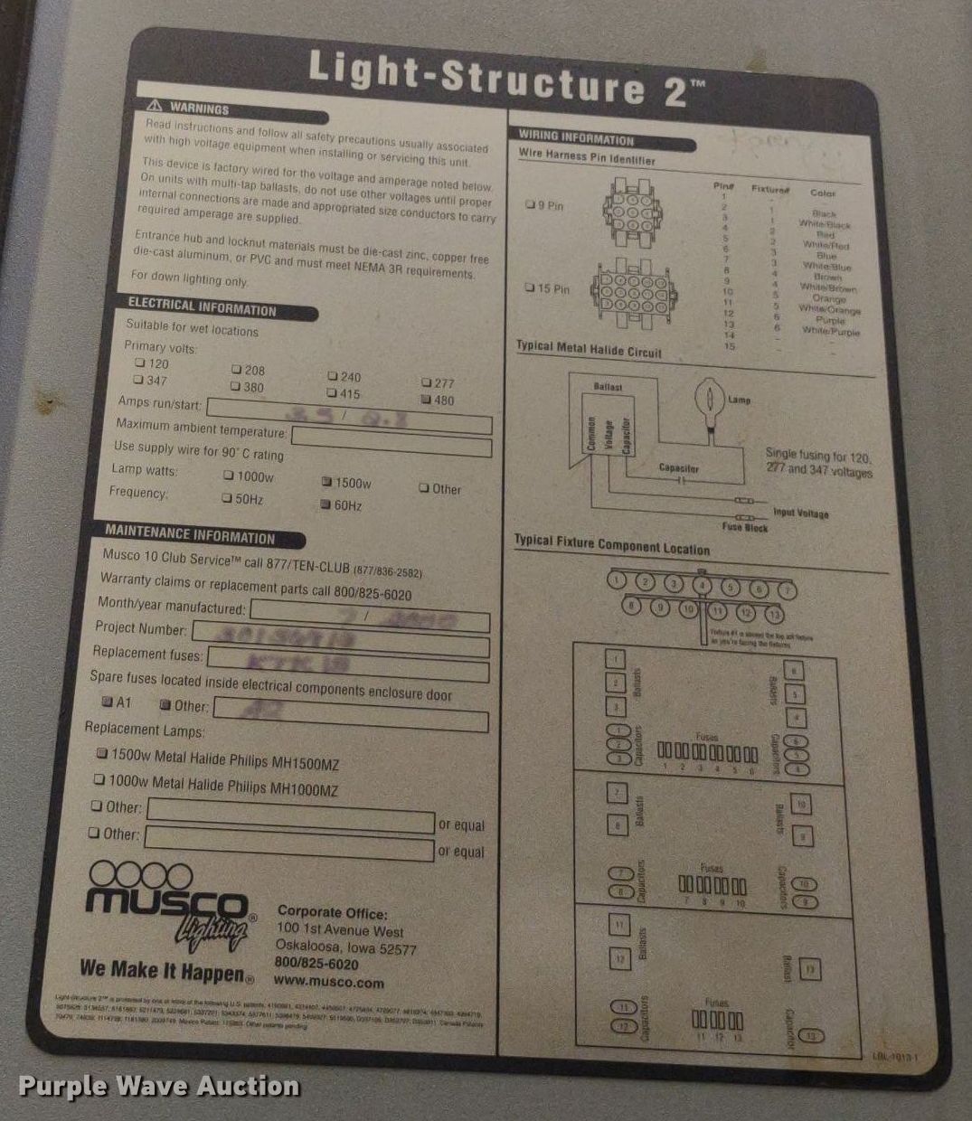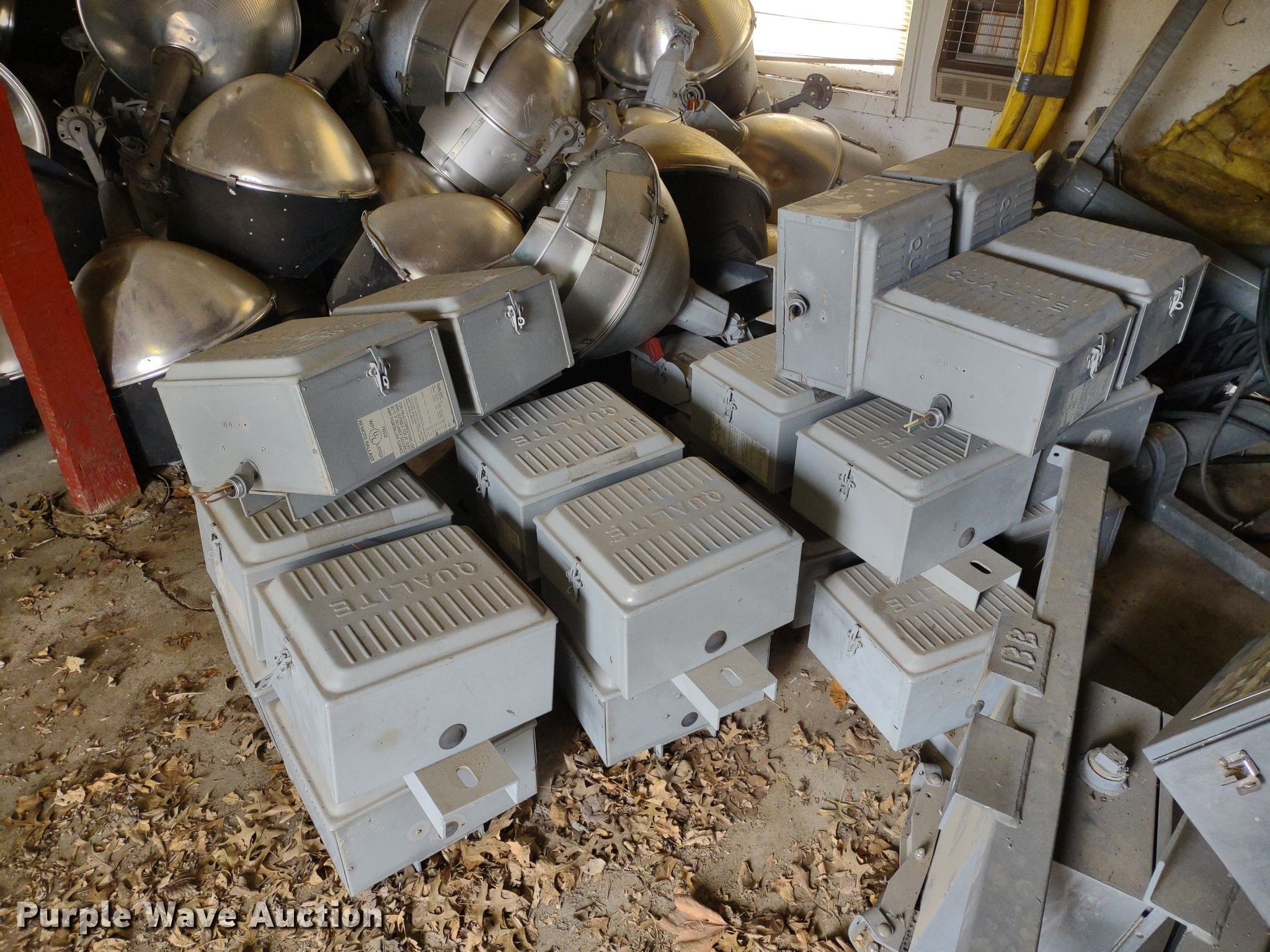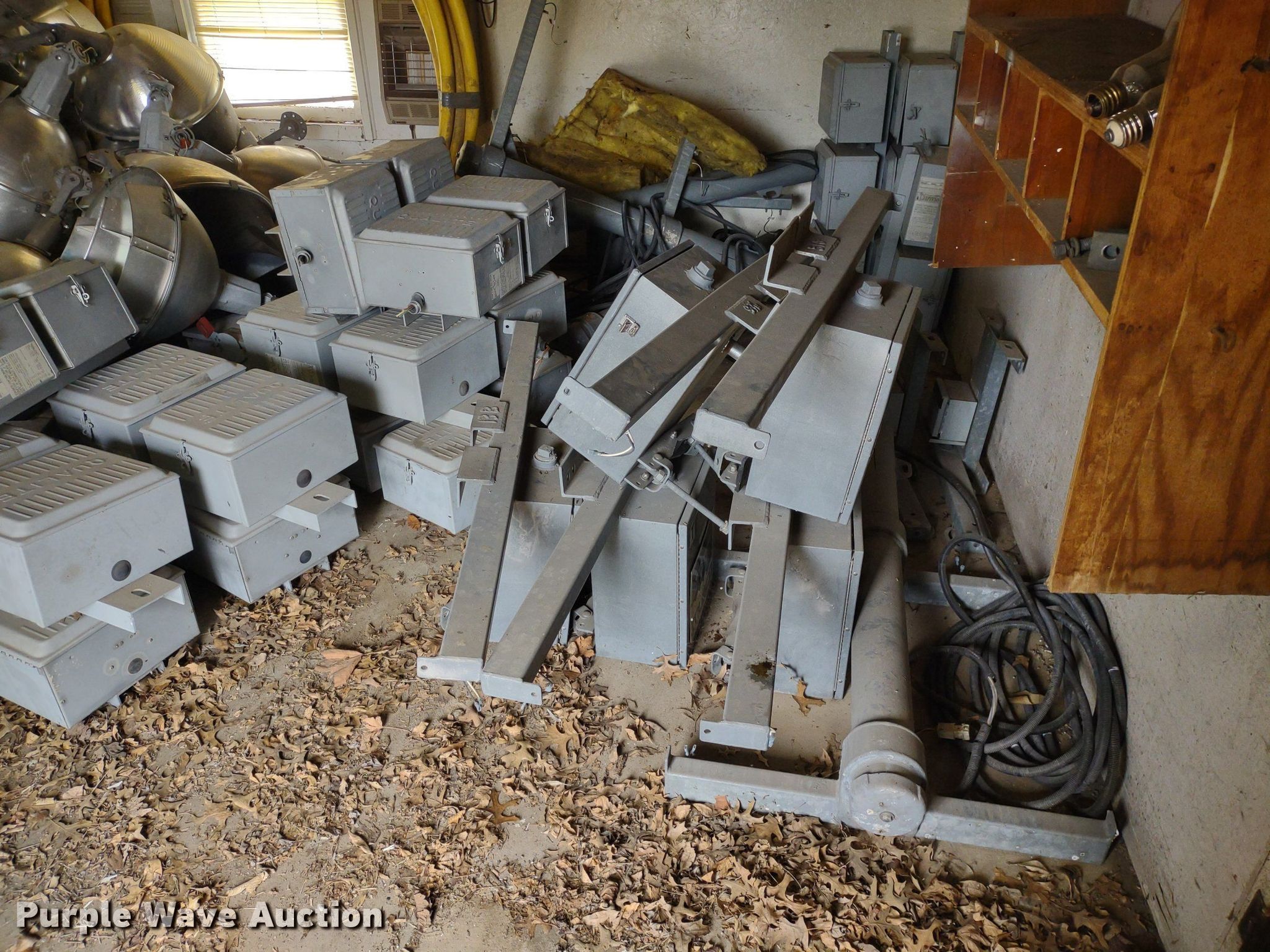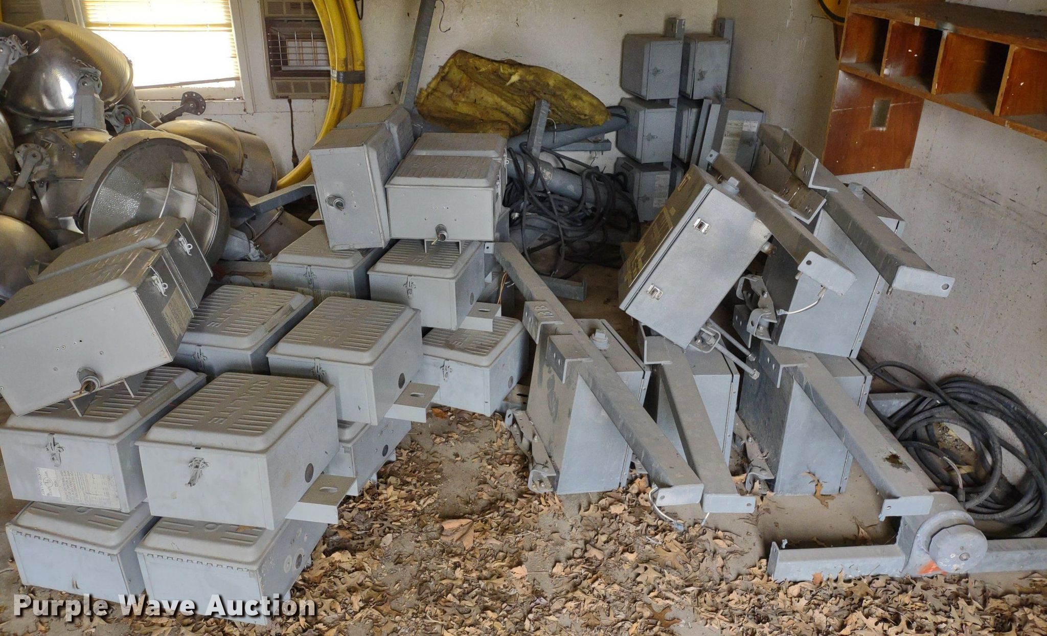 Purple Wave is selling a used Building Materials in Kansas. This item is a Approximately 50 Musco stadium light with the following: Brackets, boxes