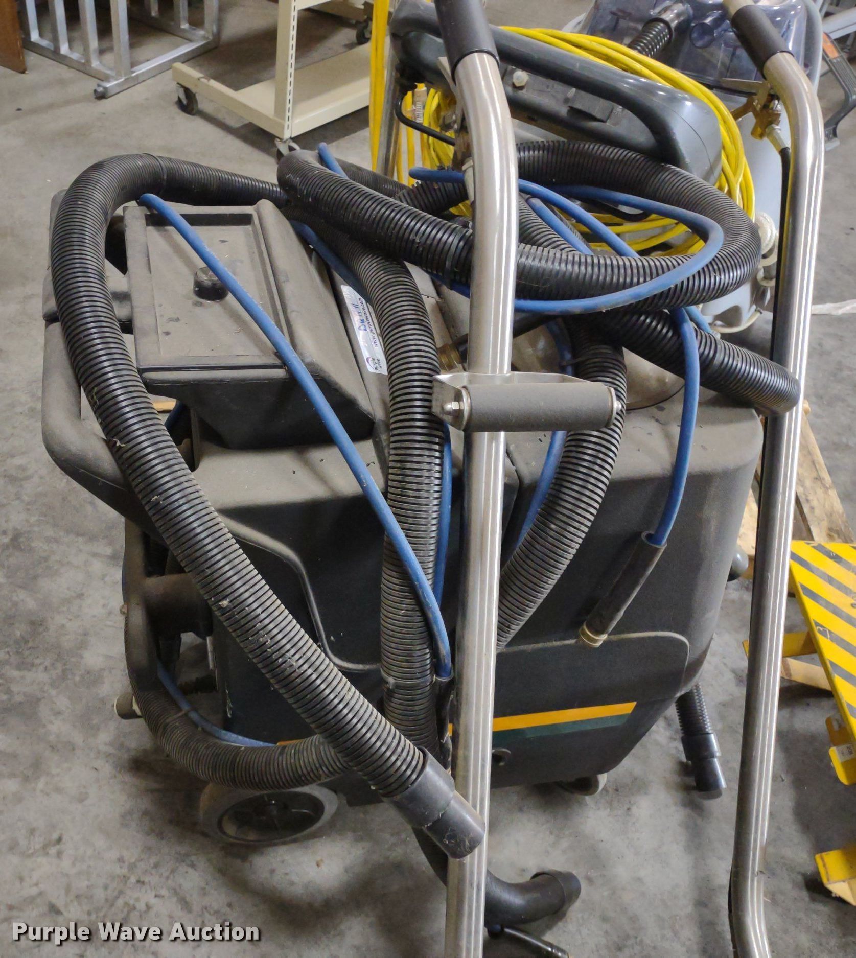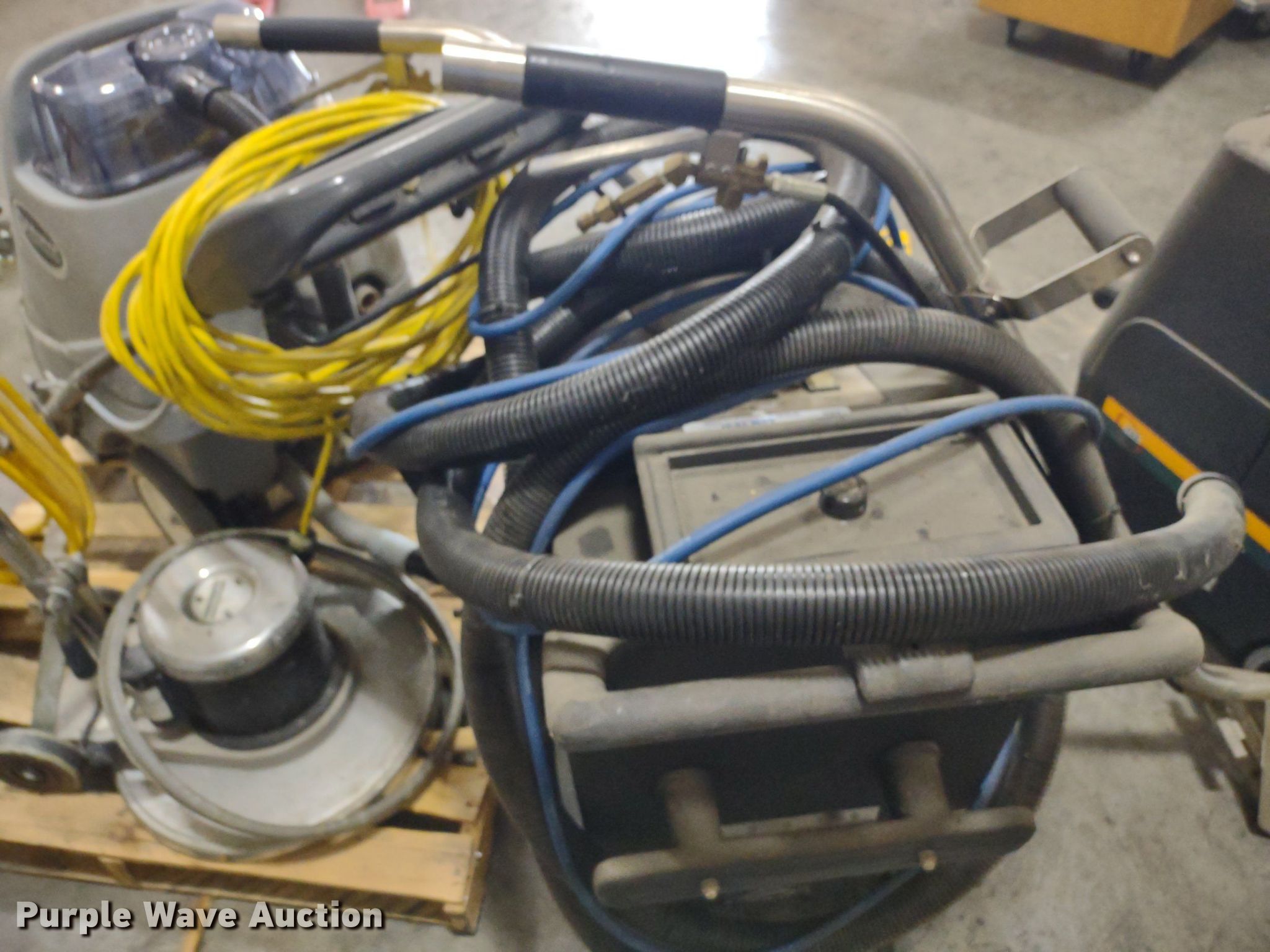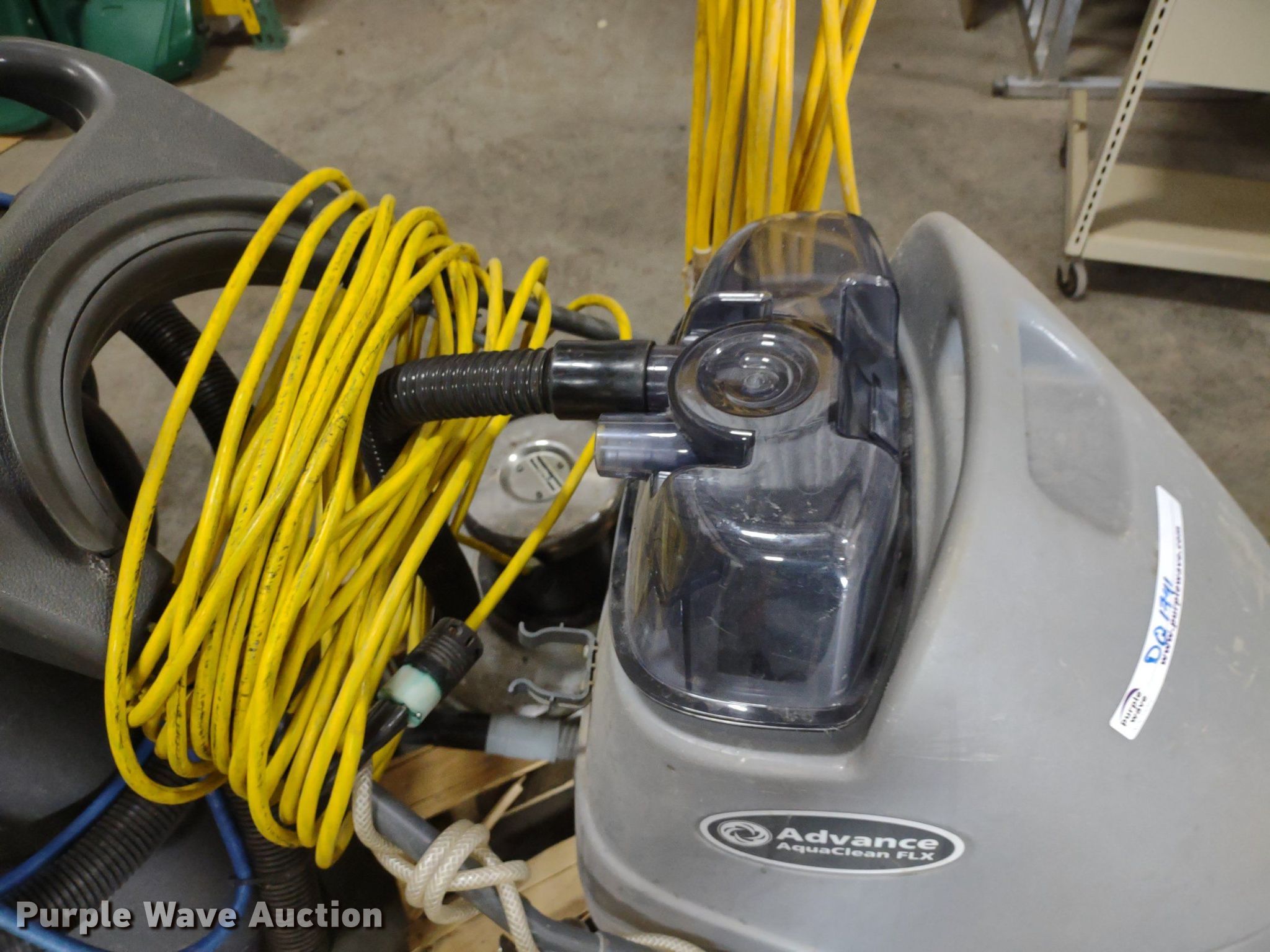 Purple Wave is selling a used All Other Household Items in Kansas. This item is a Floor cleaning equipment with the following: (2) CXC 150 carpet cleaners, Advance AquaClean carpet cleaner, Advance pacesetter buffer, Hubbell generator distribution box