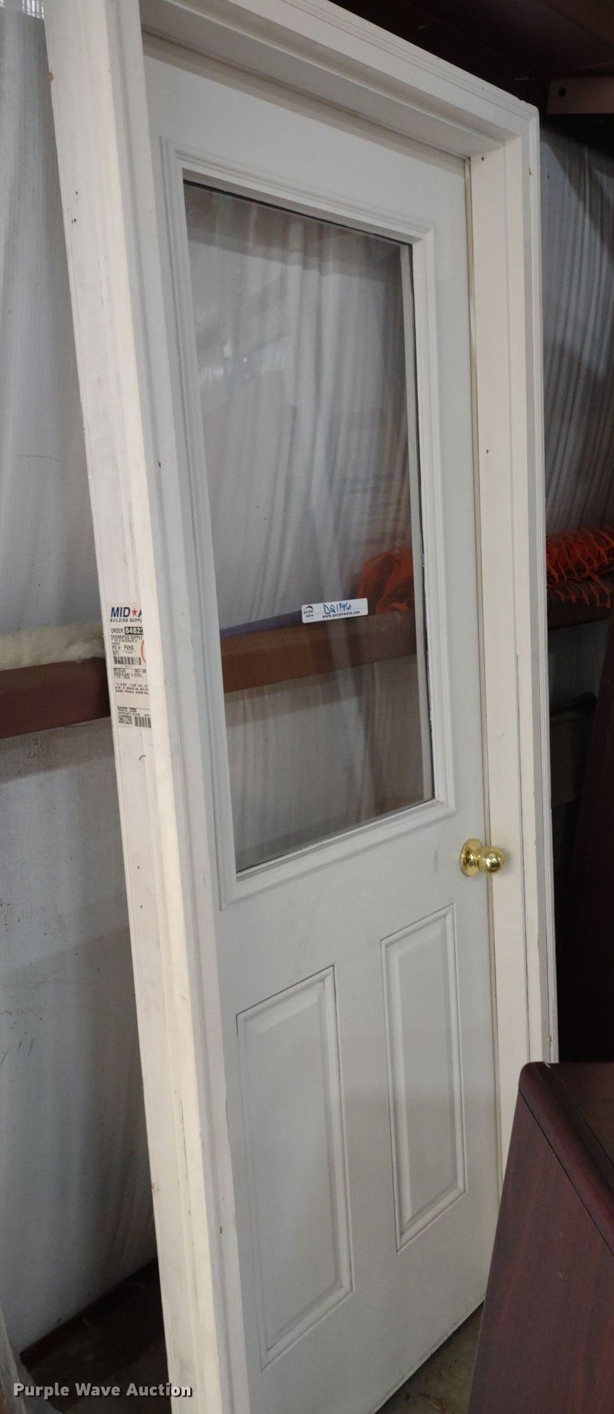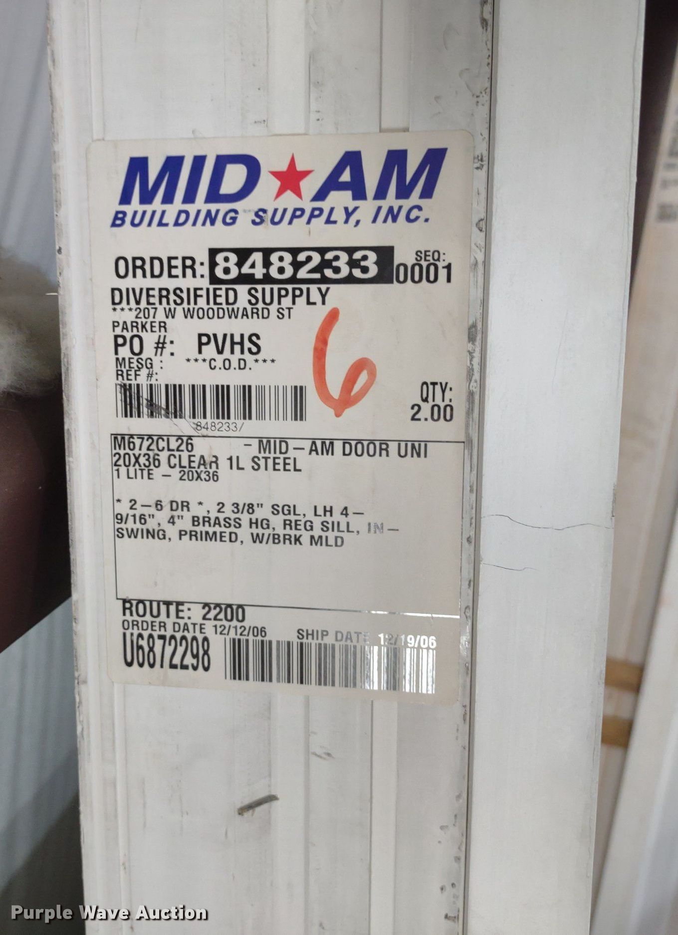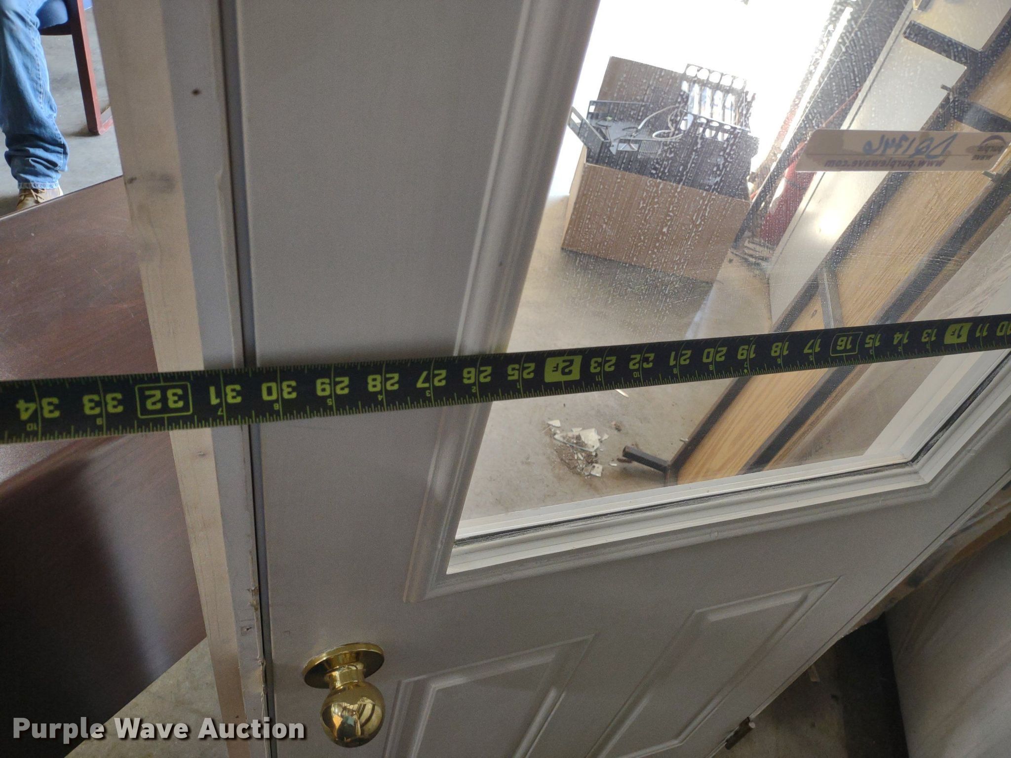 Purple Wave is selling a used Building Materials in Kansas. This item is a Building materials with the following: (2) solid interior doors, (2) exterior doors, Wood cabinet