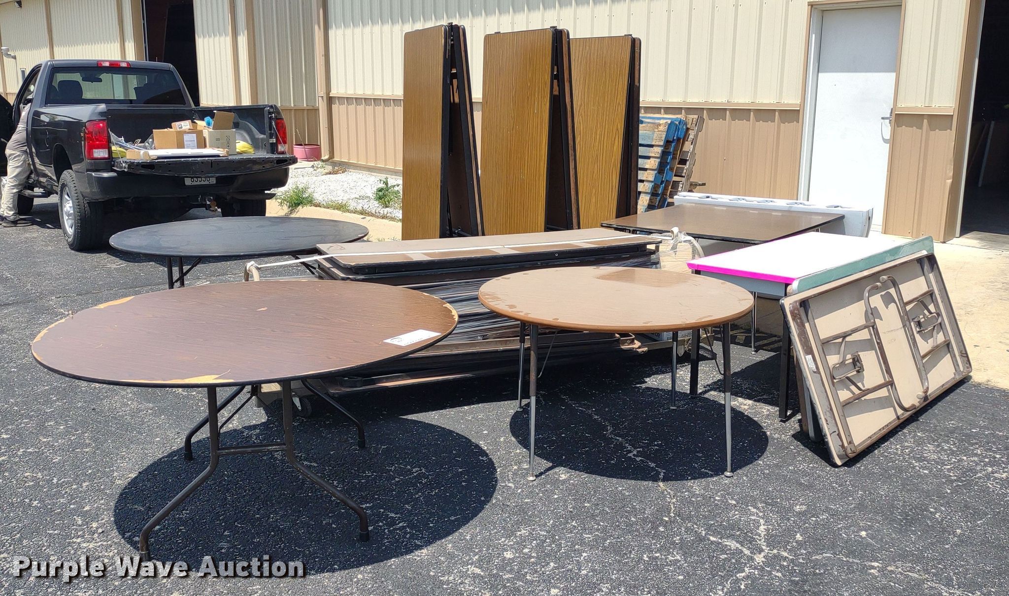 Purple Wave is selling a used Furniture in Kansas. This item is a Approximately 21 tables with the following: Approximately 21 tables. USD 362 La Cygne. 13799 KS Hwy 152. La Cygne, KS 66040