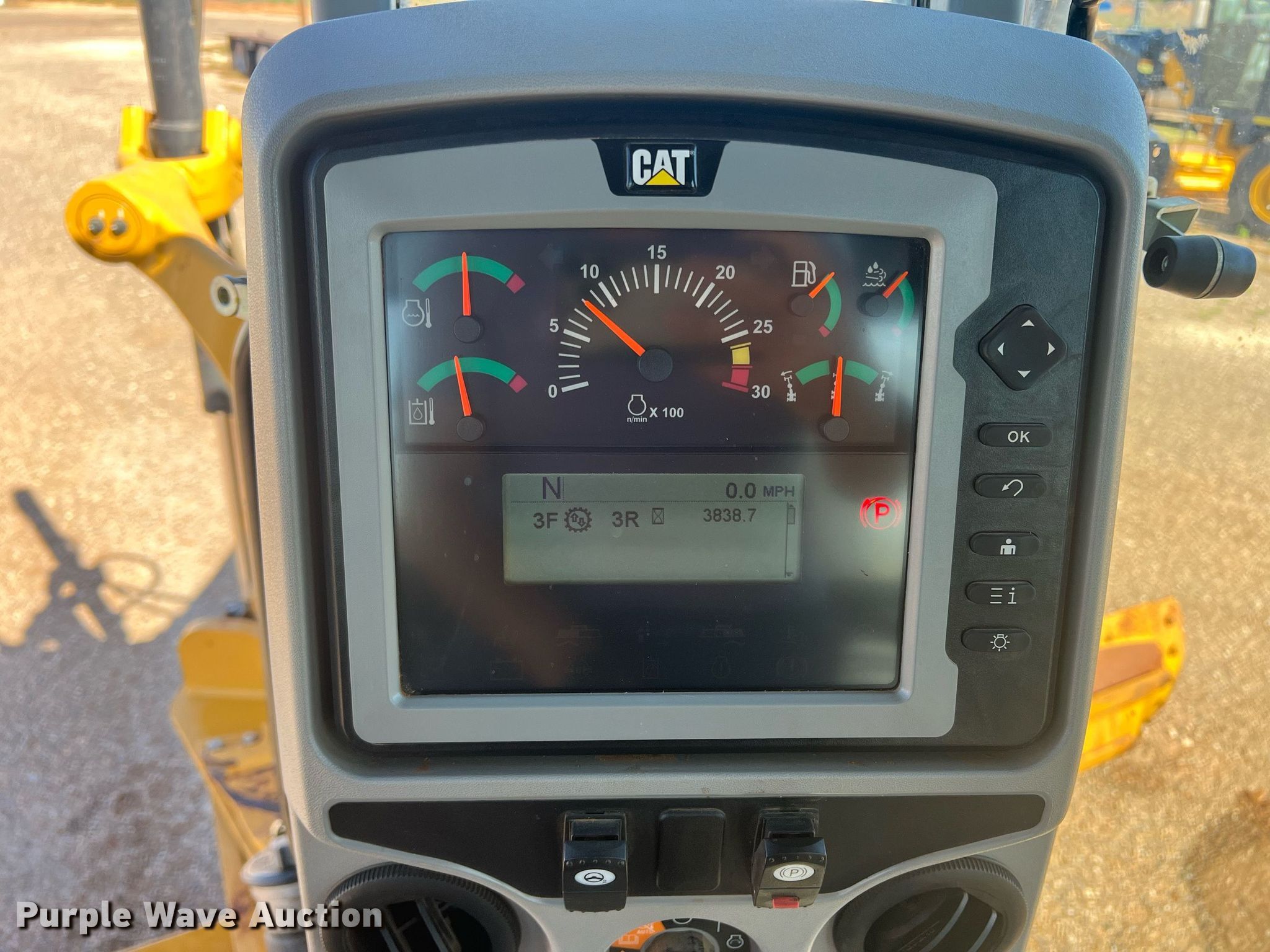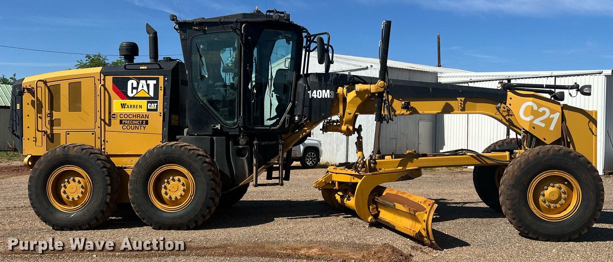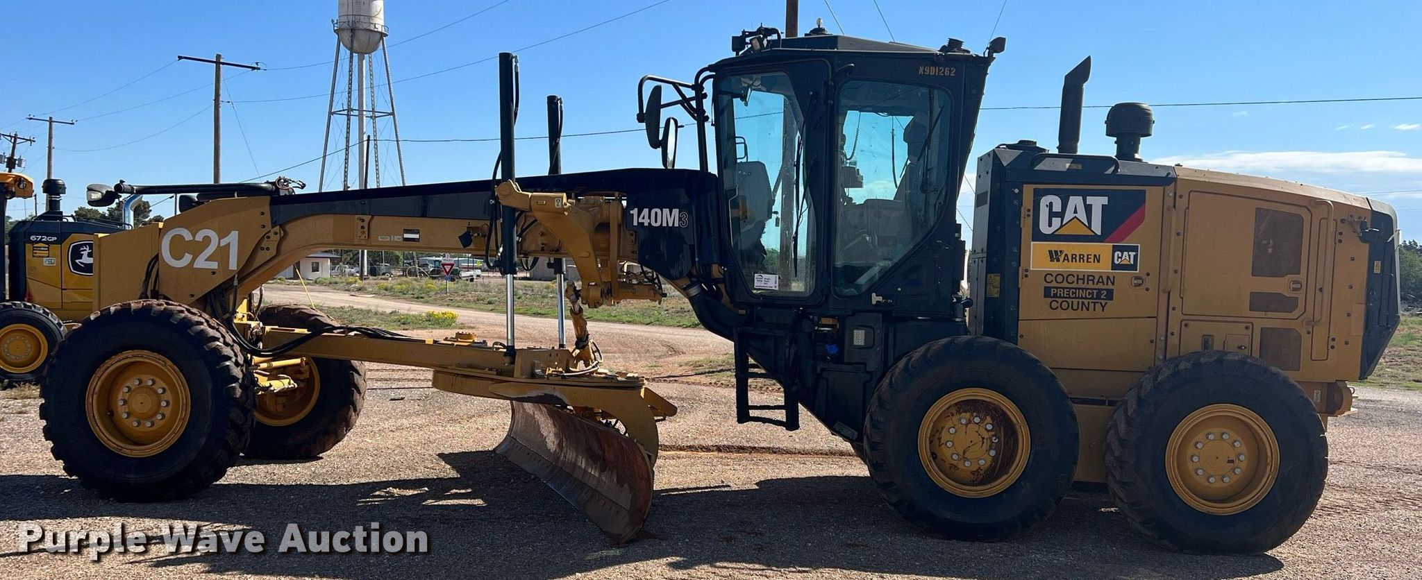 Purple Wave is selling a used Motor Grader in Texas. This item is a 2018 Caterpillar 140M3 motor grader with the following: Hours: 3,838 on meter, Miles or hours may vary, unit still in use, Serial: CAT014MEN9D01262
