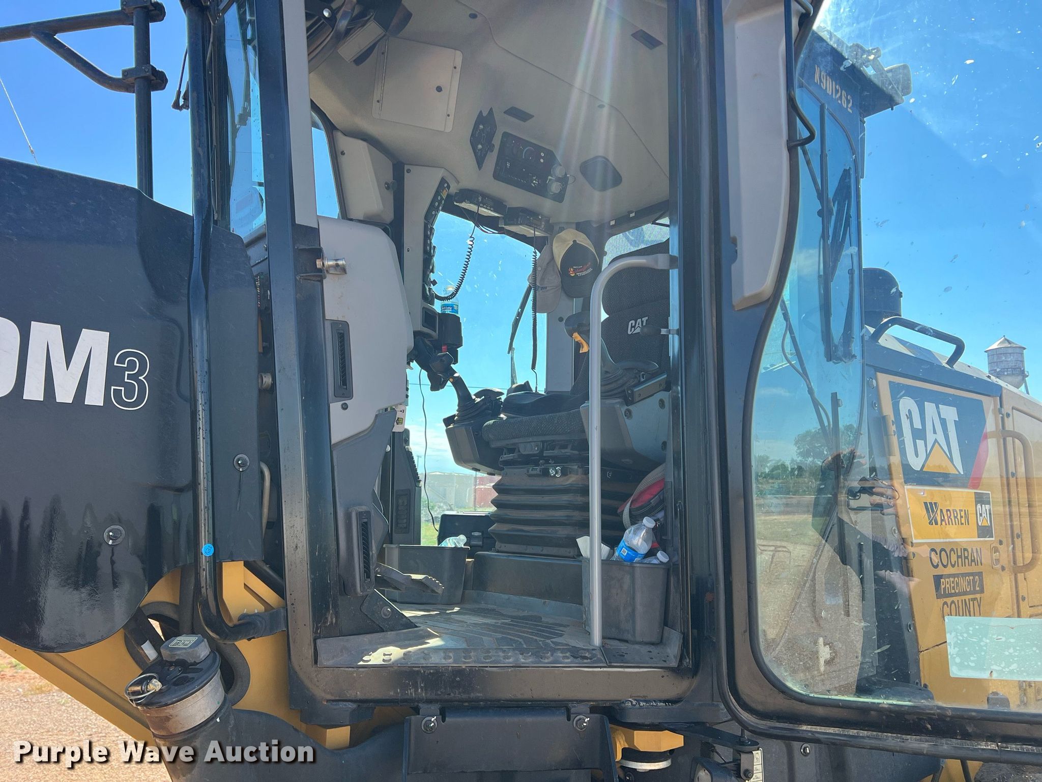 2018 Caterpillar 140M3 motor grader. Hours: 3,838 on meter, Miles or hours may vary, unit still in use, Serial: CAT014MEN9D01262. Engine Caterpillar, Cylinders: 6, Fuel type: Diesel. Transmission Powershift. Chassis Differential lock. Operators station Enclosed cab, AC, Heat, Steering: Joystick. Features Moldboard: Tip control, Side shift, Moldboard total length: 14', Front-mounted push block. Tires Size: 14.00R24. Notes Pull cable not included , Radios not included. Cochran County Precinct 2. 104 S Fillmore St. Whiteface, TX 79379