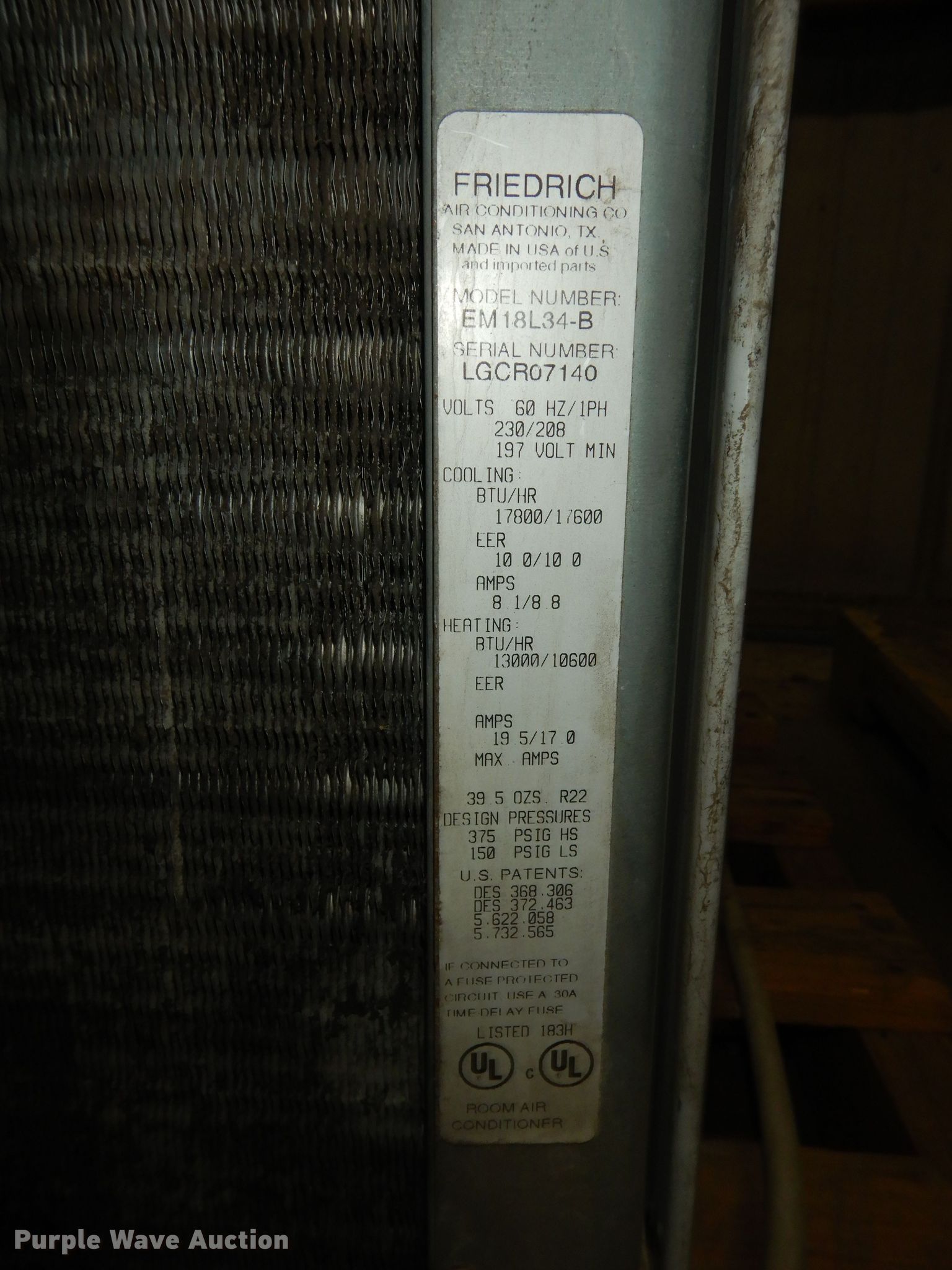 Purple Wave is selling a used Appliances in Kansas. This item is a Friedrich window AC unit with the following: 26" x 29" x 18", Unknown operating condition