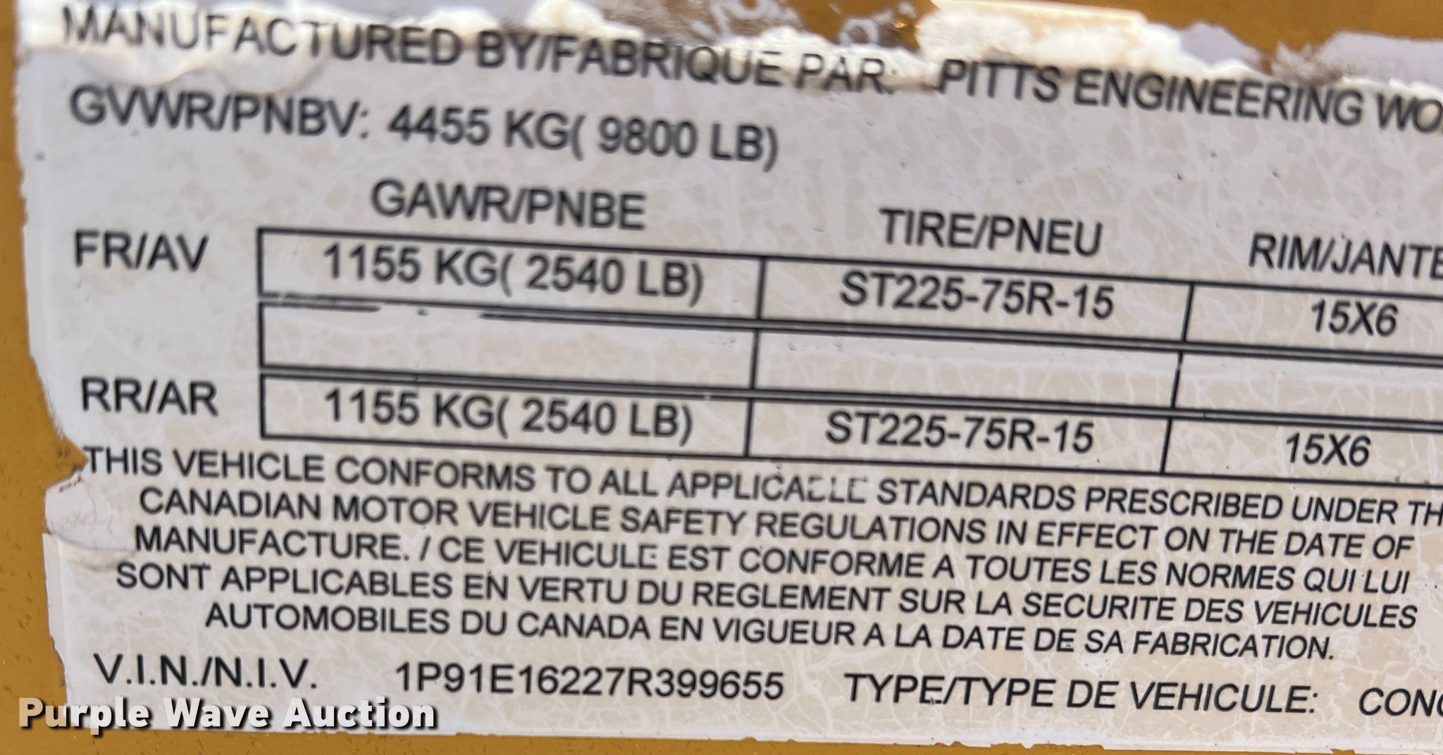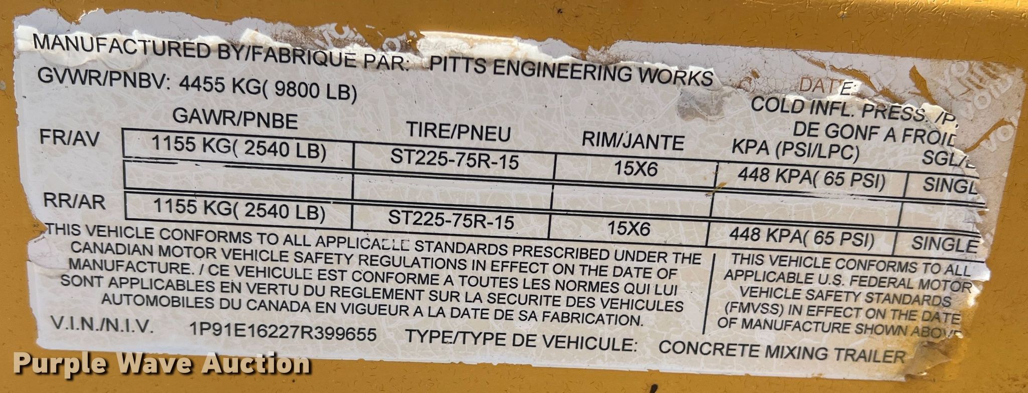 Purple Wave is selling a used Concrete Dispenser in Texas. This item is a 2007 Pitts Concrete Titan concrete mixer trailer with the following: VIN: 1P91E16227R399655