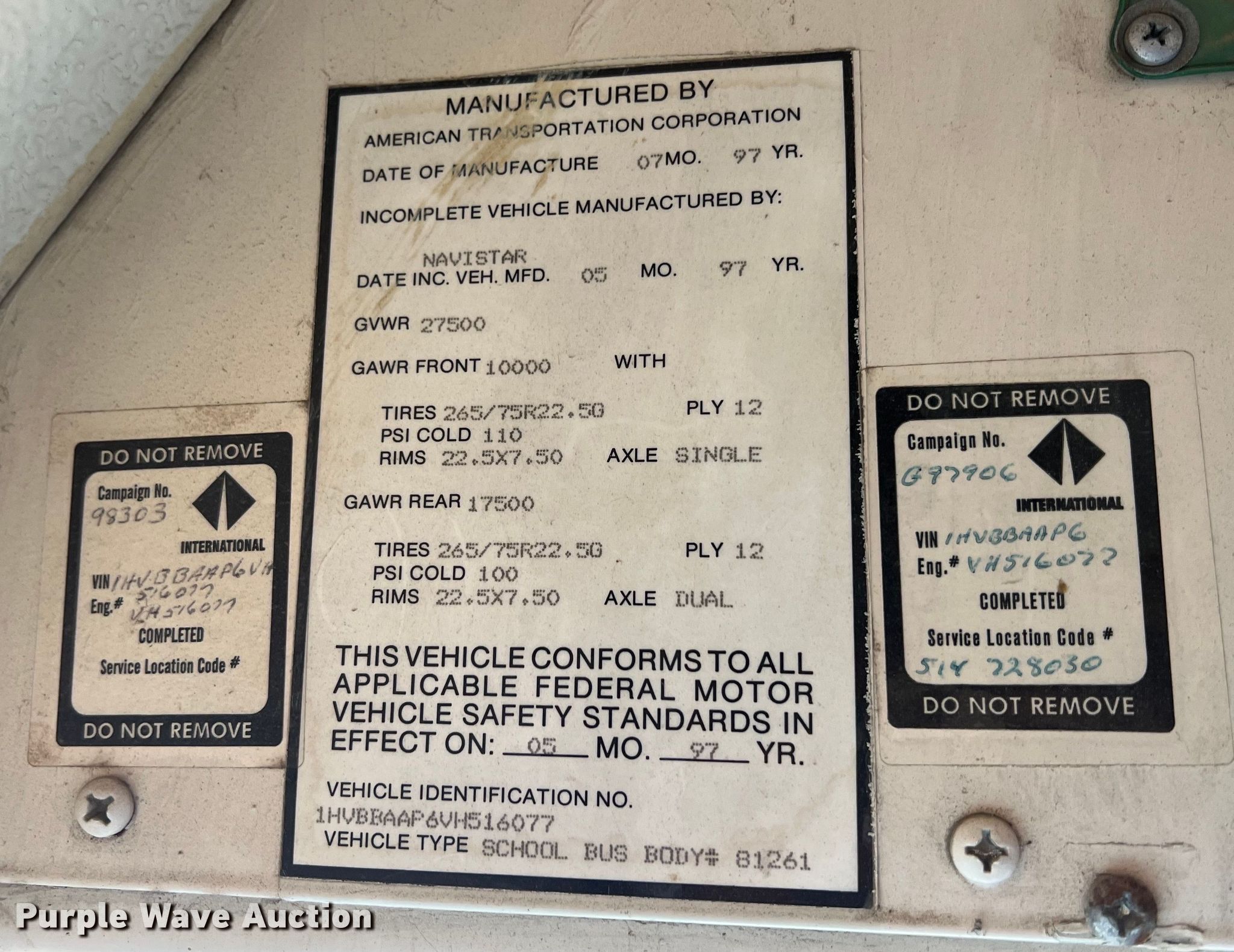 Purple Wave is selling a used Bus in Kansas. This item is a 1997 International 3800 school bus with the following: Miles: 207,845 on odometer, VIN: 1HVBBAAP6VH516077
