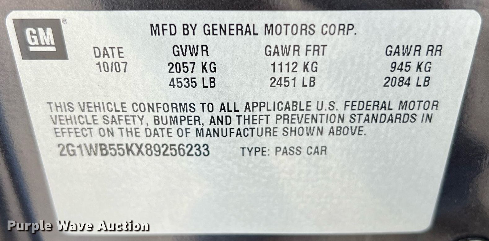 • VIN: 2G1WB55KX89256233