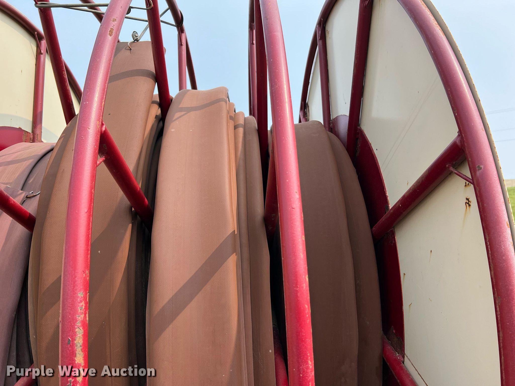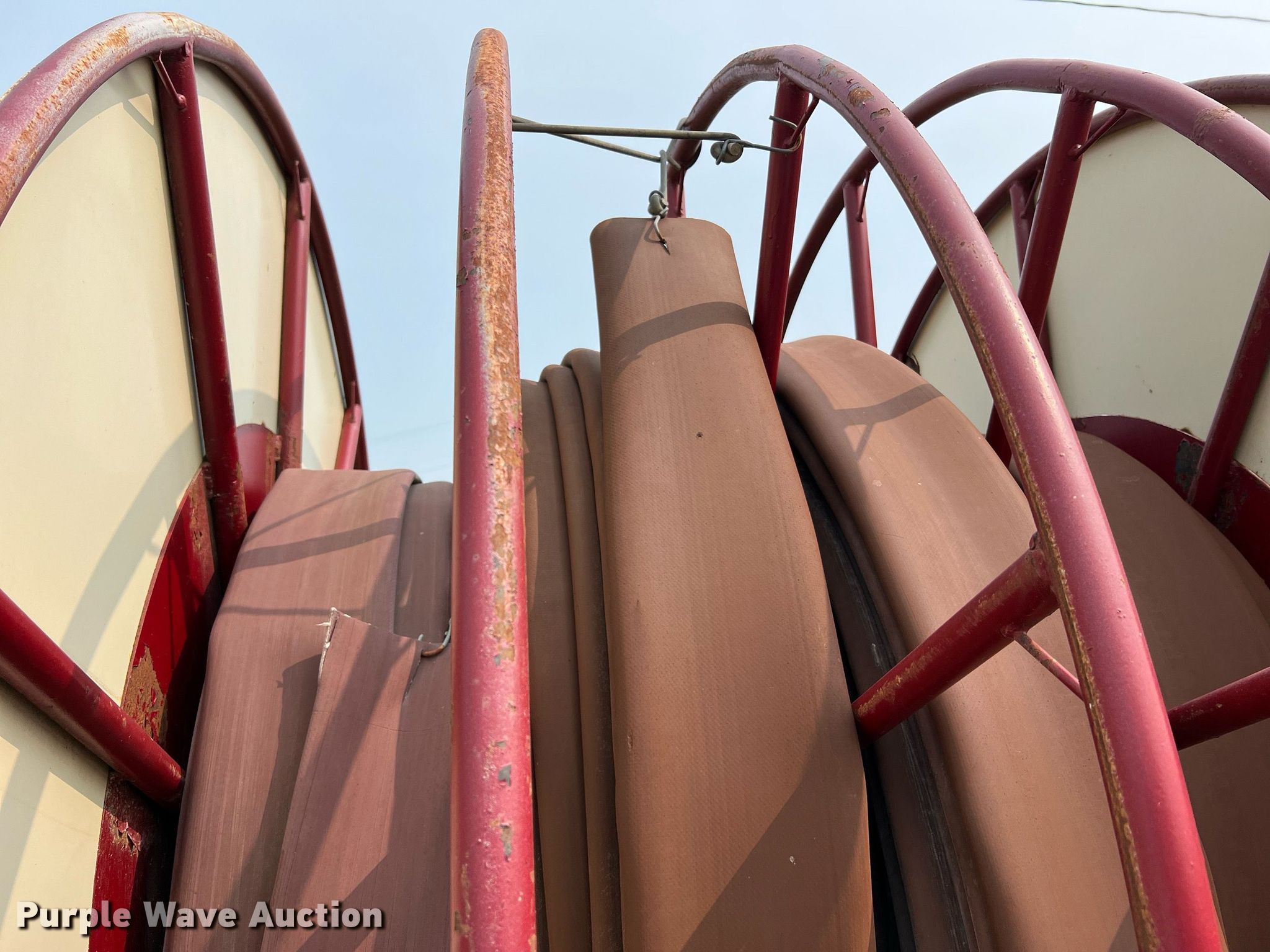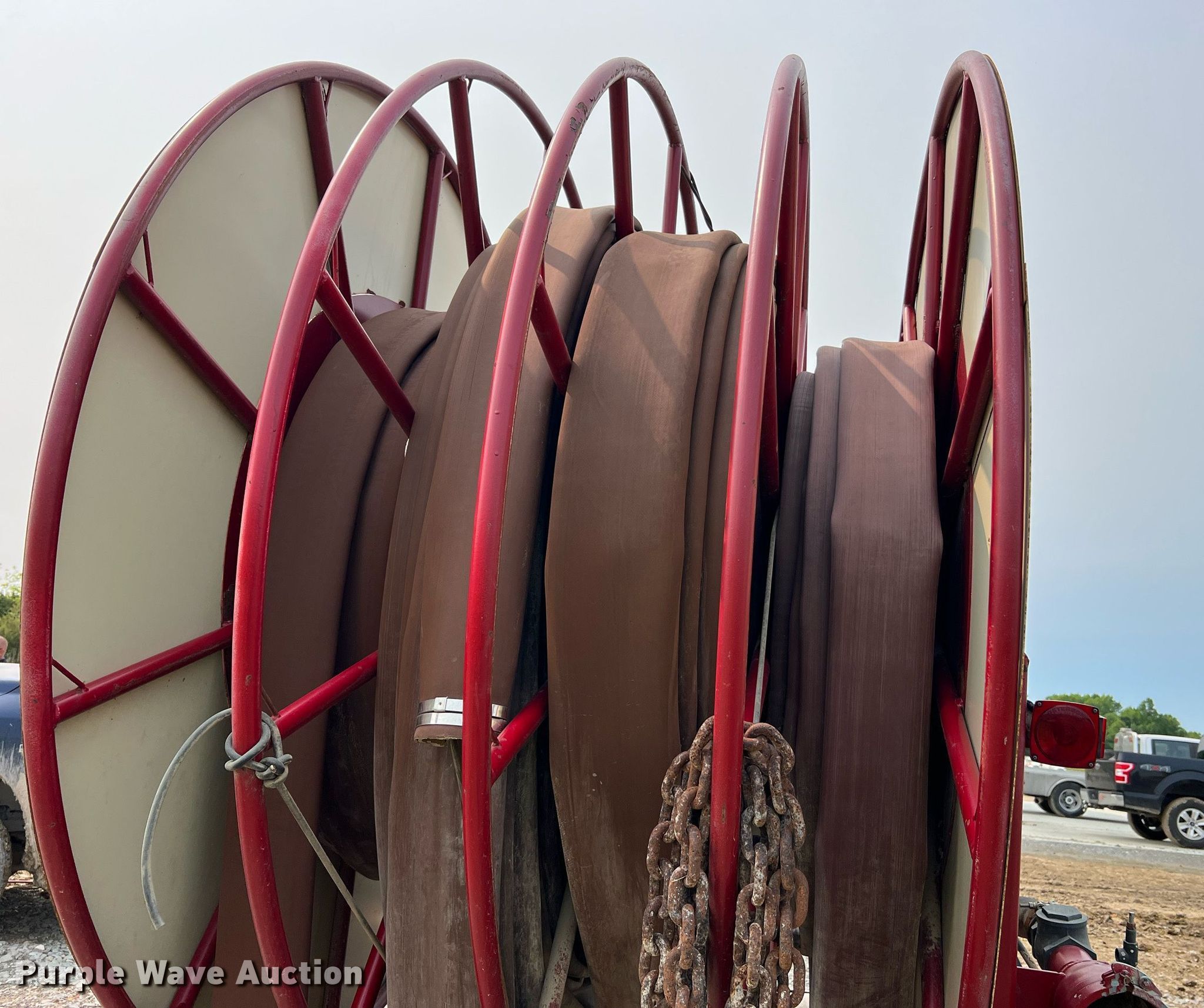 Hydro Engineering HC994 hose reel. Serial: 0332. Features 540 PTO, 5" hose , (3) hose inserts. Tires Size: 12-16.5LT. Transfer of ownership documentation will be a bill of sale. City of Columbia. 5700 Peabody Rd. Columbia, MO 65202