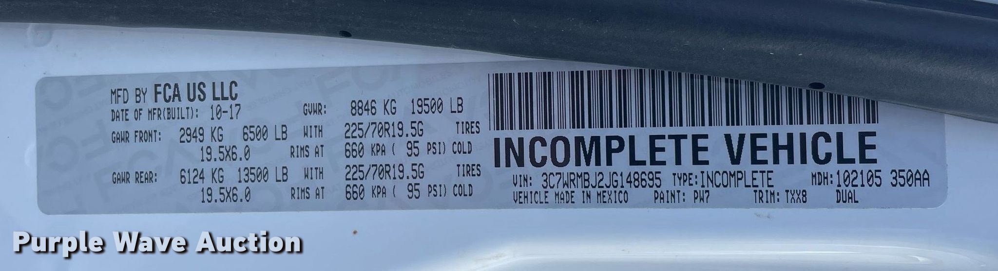 - VIN: 3C7WRMBJ2JG148695