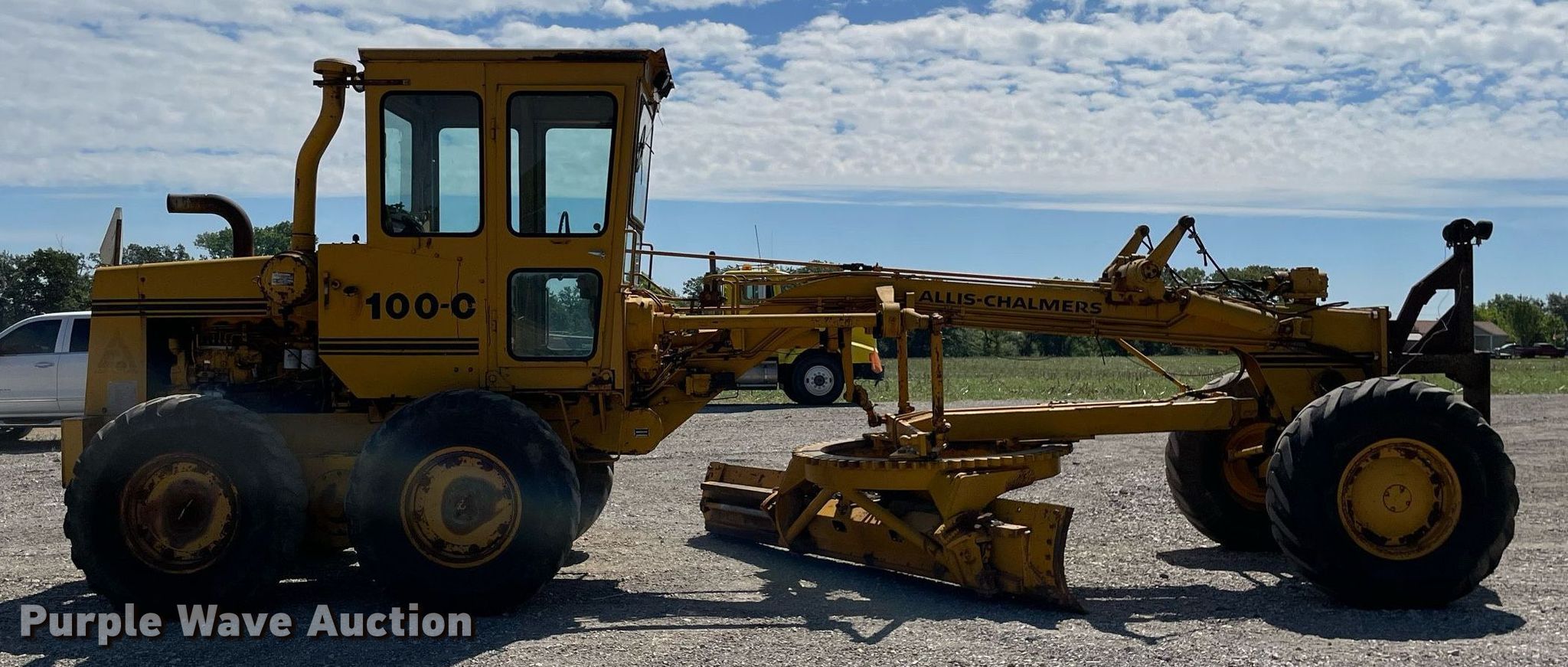 Purple Wave is selling a used Motor Grader in Illinois. This item is a 1973 Allis Chalmers 100C rigid frame motor grader with the following: Hours: 4,825 on meter, Serial: 27Y08169