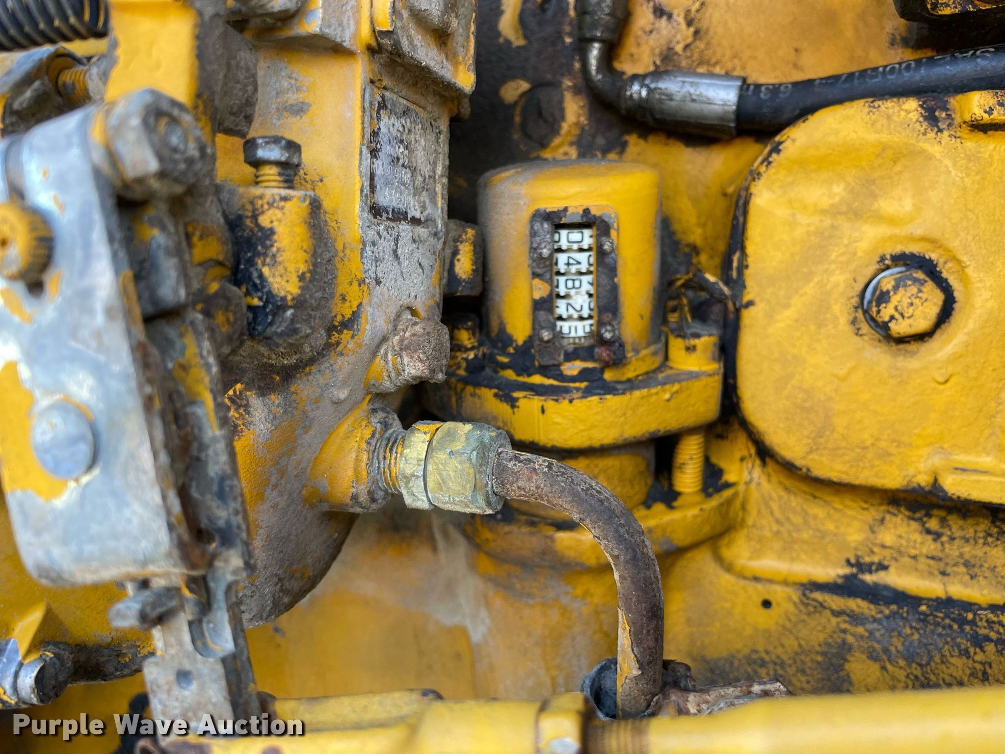 1973 Allis Chalmers 100C rigid frame motor grader. Hours: 4,825 on meter, Serial: 27Y08169. Engine Cylinders: 6, Fuel type: Diesel. Transmission Direct-drive, 6F - 2R. Operators station Enclosed cab, Heat, Hydraulic control valves: 7. Features Moldboard: Side shift, Moldboard total length: 12', Front-mounted push block. Tires Size: 14.00-24. Whicker Tiling & Excavating, Inc.. 1260 Clay Hollow Road. Winchester, IL 62694
