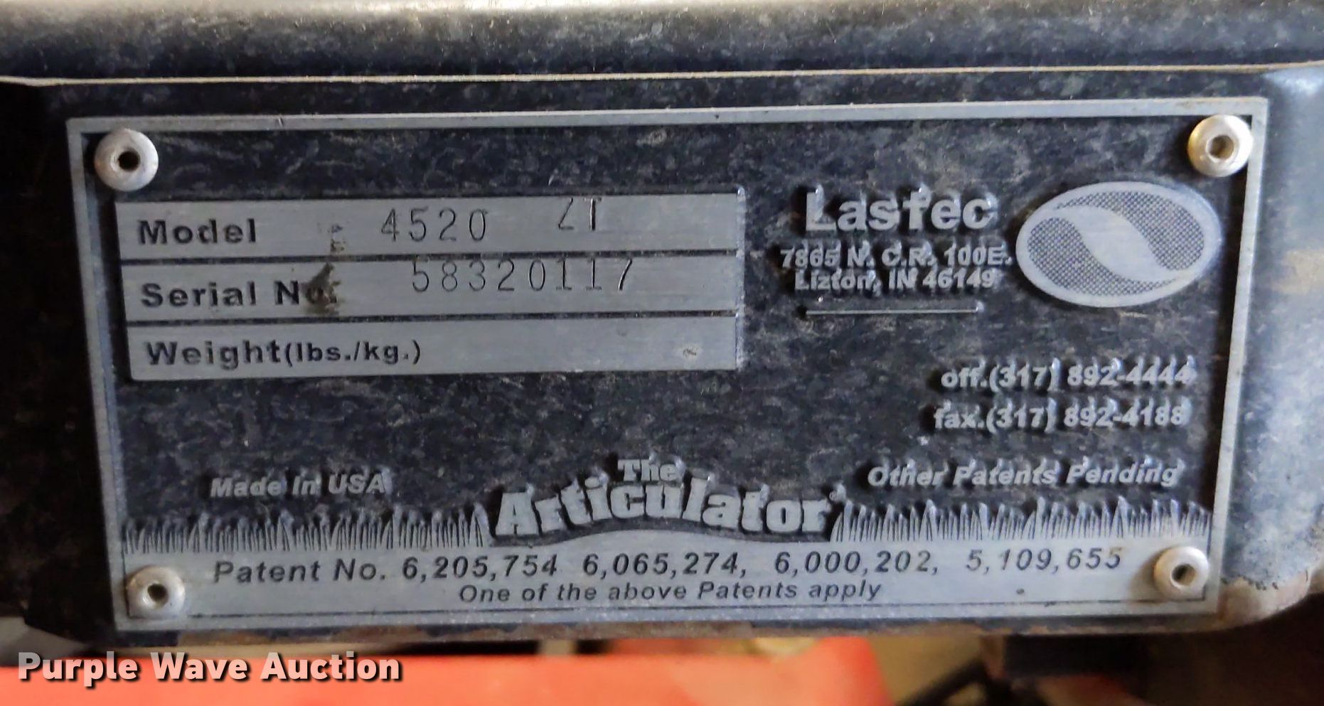 Purple Wave is selling a used Commercial Turf Mower in Kansas. This item is a Lastec 4520 ZT ZTR lawn mower with the following: Hours: 1,116 on meter, Cutting width: 120", Serial: 58320117
