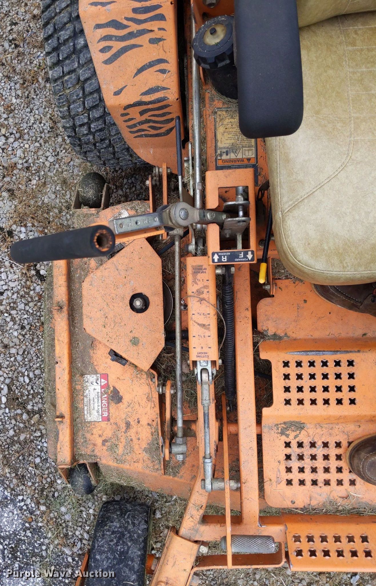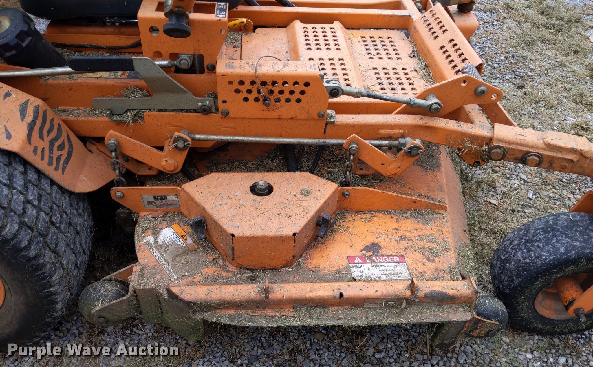 Purple Wave is selling a used Commercial Turf Mower in Missouri. This item is a Scag Turf Tiger ZTR lawn mower with the following: Hours: 914 on meter, Cutting width: 61", Serial: D7701024