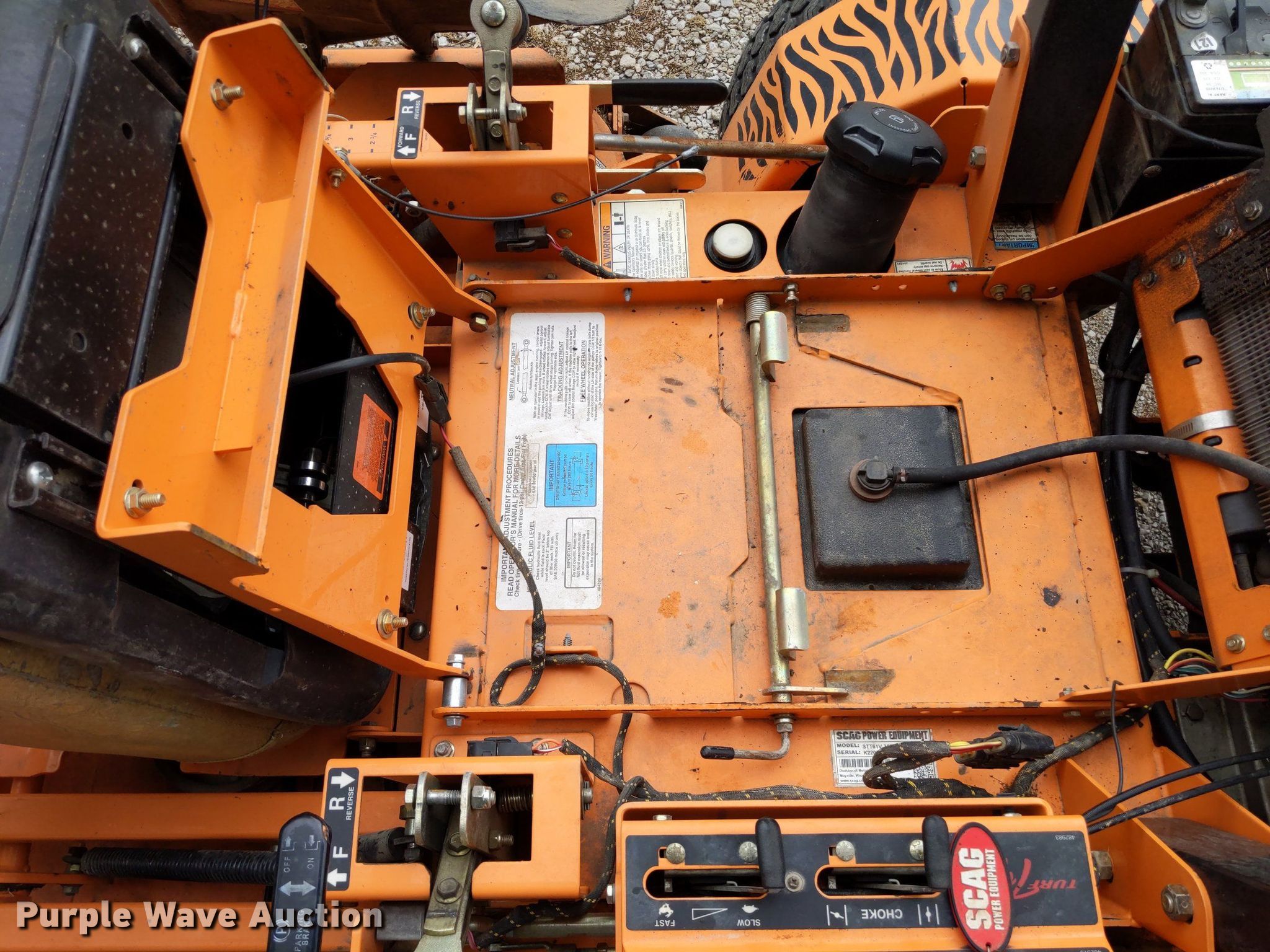 Purple Wave is selling a used Commercial Turf Mower in Missouri. This item is a Scag Turf Tiger ZTR lawn mower with the following: Hours: 1,625 on meter, Cutting width: 61", Serial: K2200255