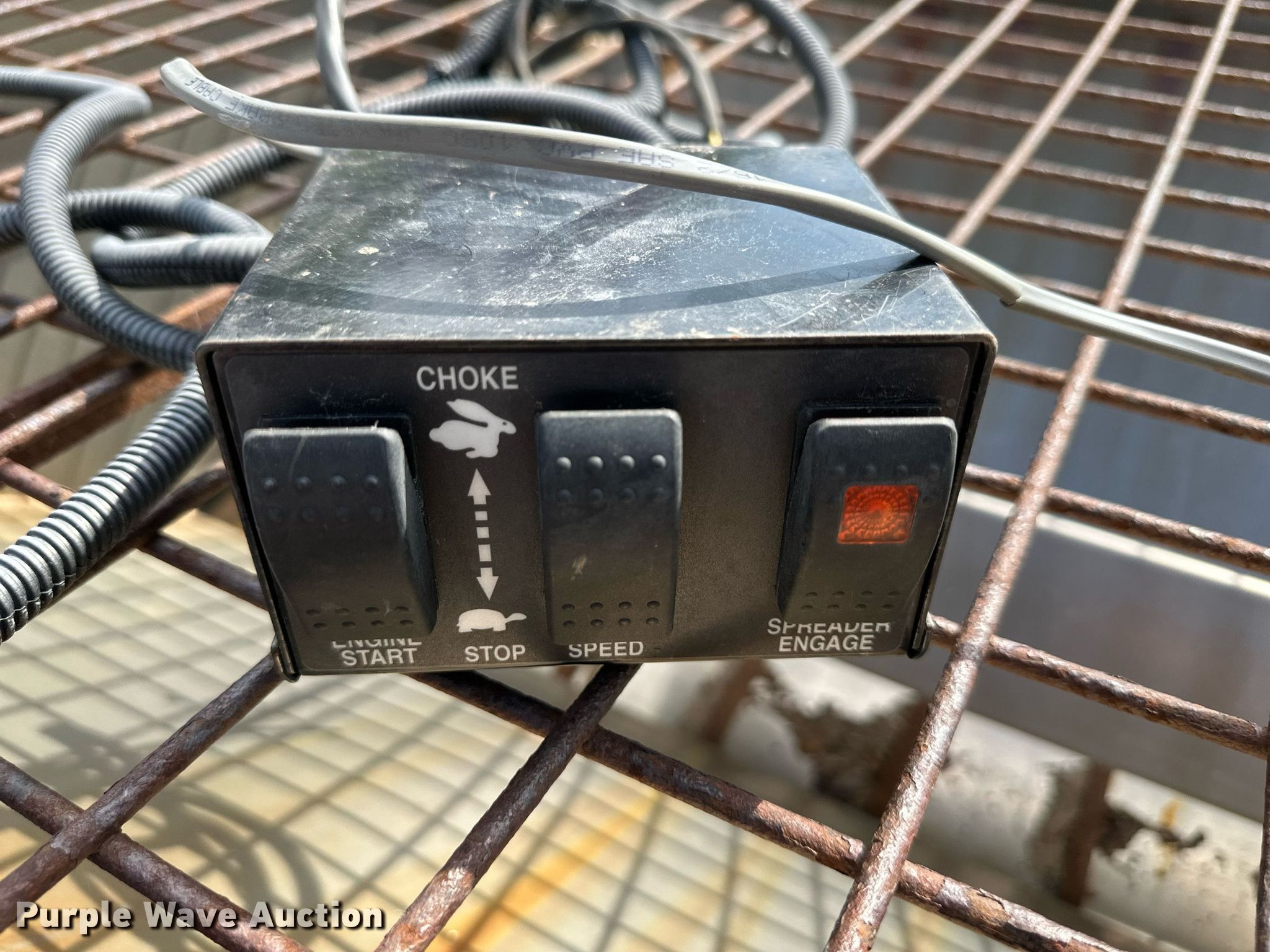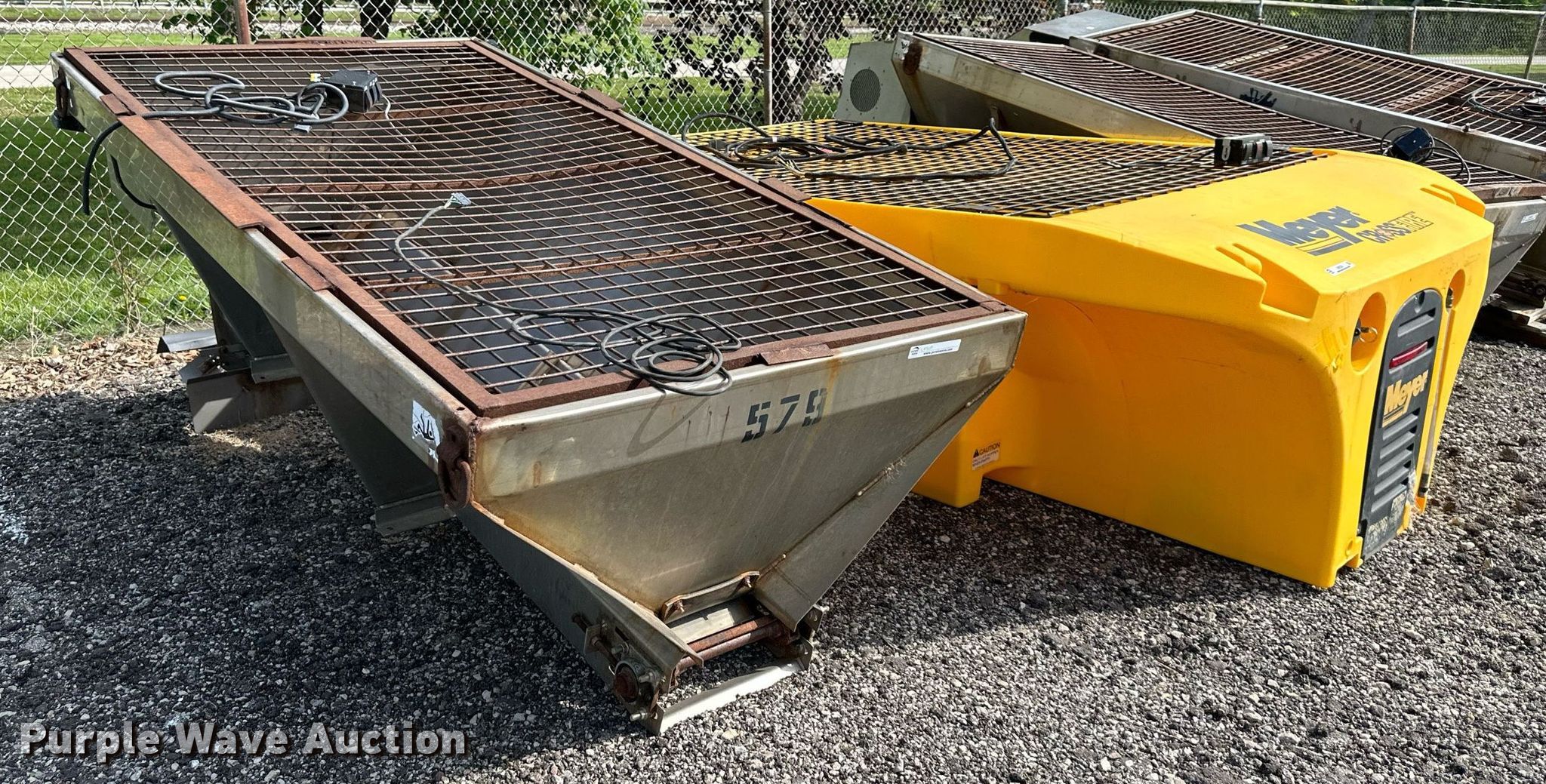(2) salt spreaders. Meyer Cross Fire 116" L x 69" W x 36" H , Electric motor, Monroe 8' L x 49" W x 32" H, Briggs & Stratton gas engine. Bonner Springs, KS 66012