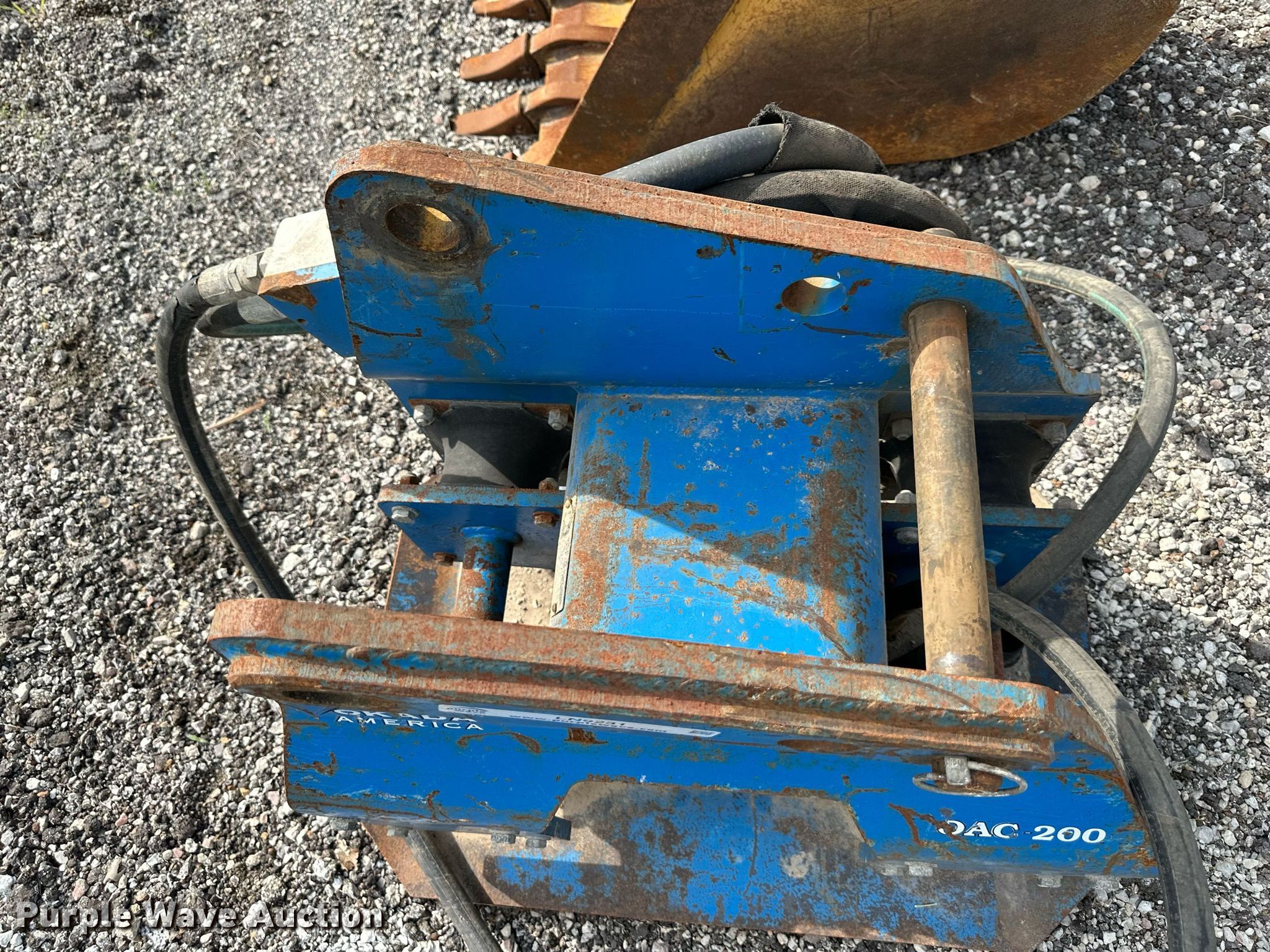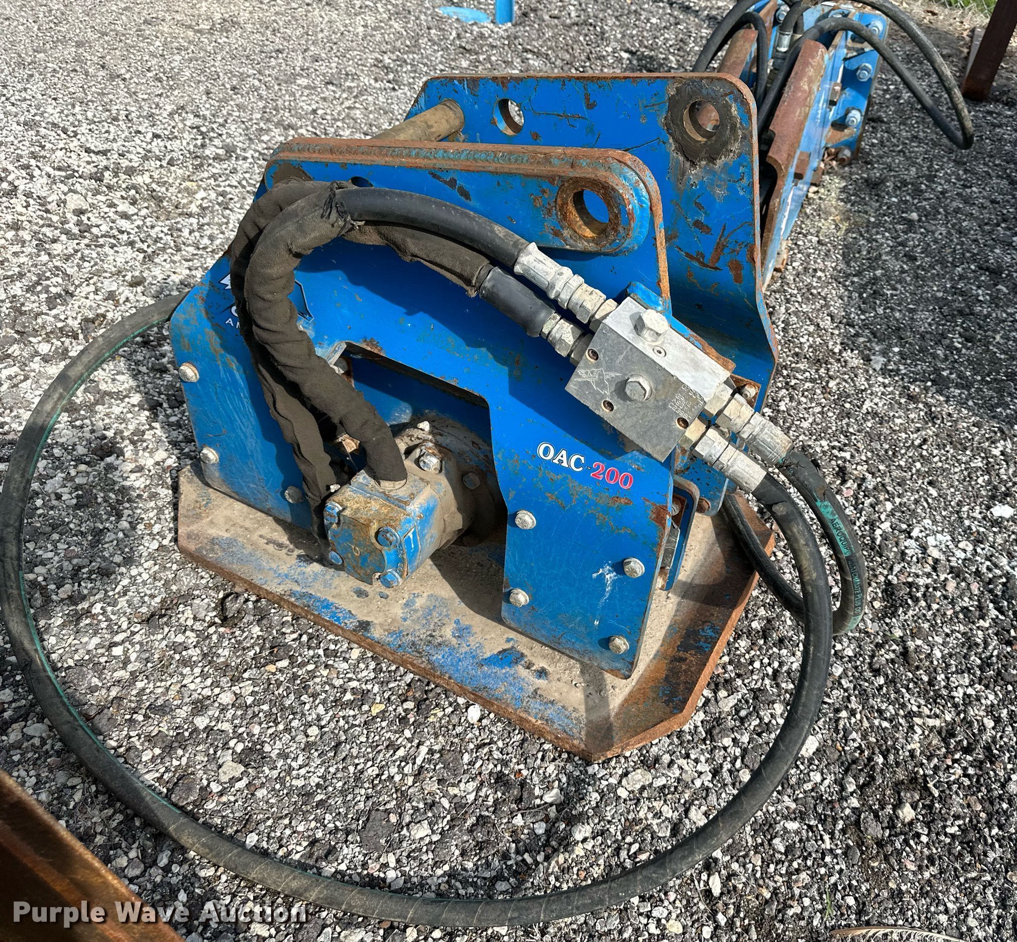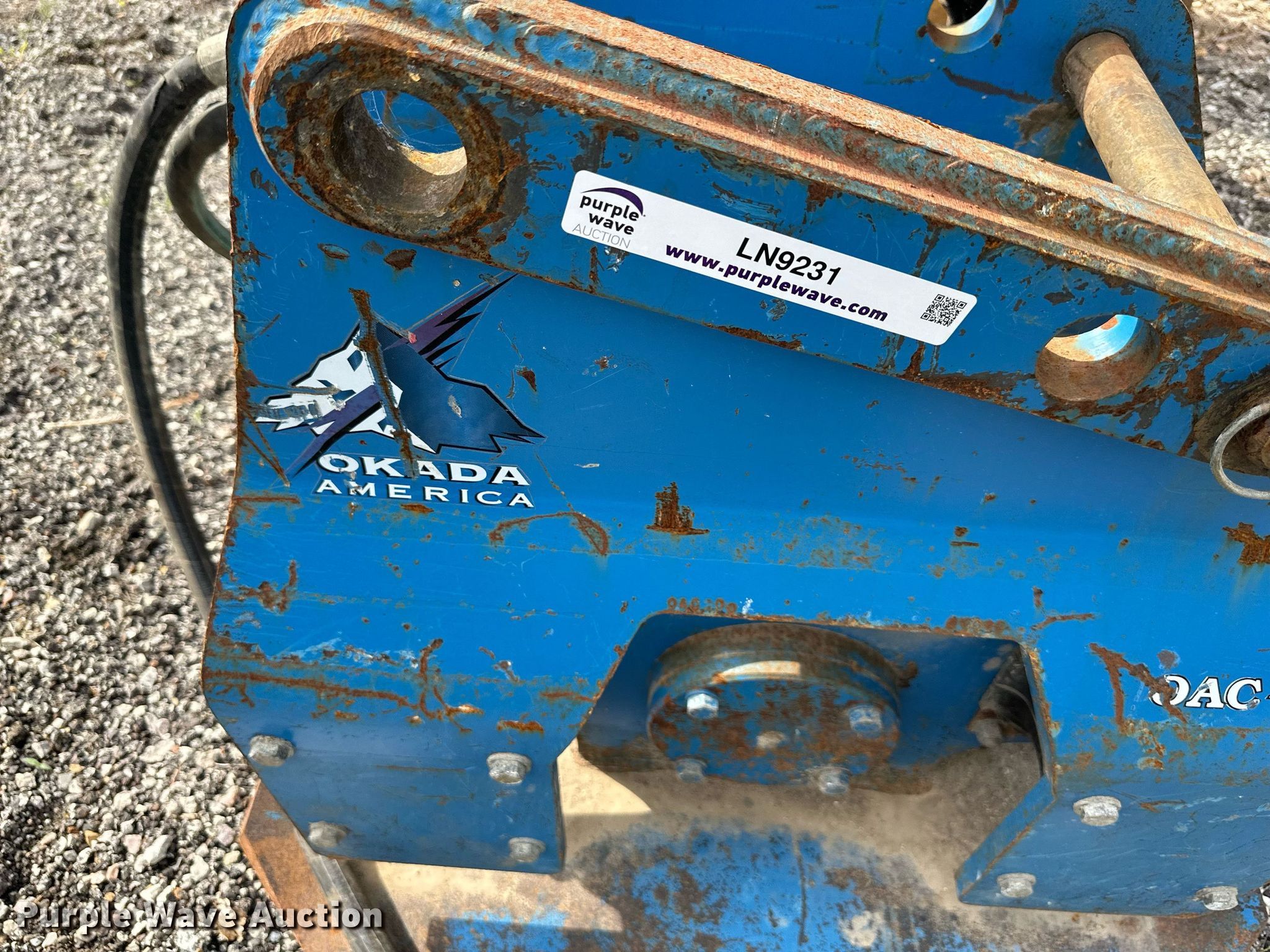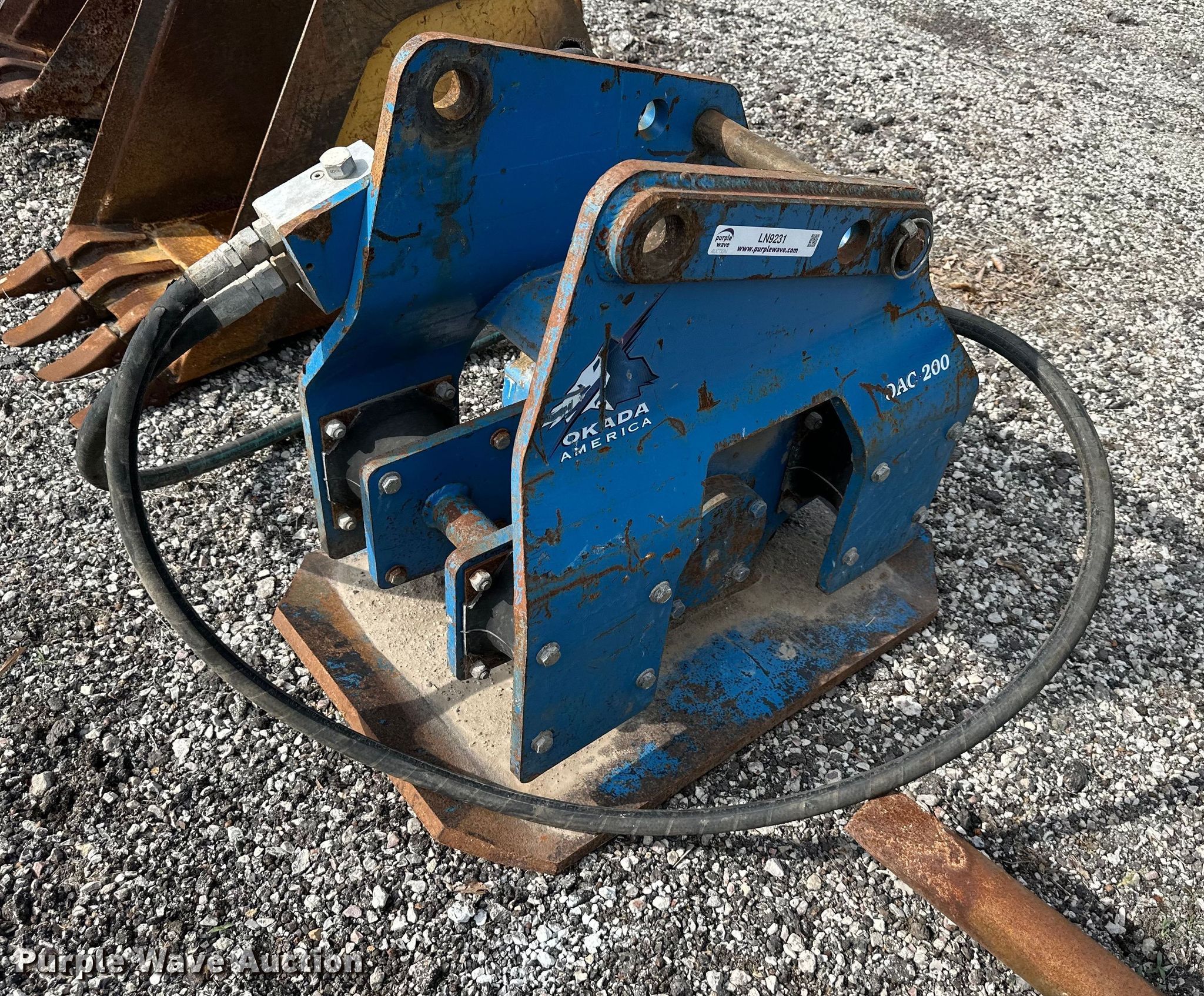 Purple Wave is selling a used Backhoe Attach. in Kansas. This item is a Okada OAC200 backhoe plate compactor with the following: Serial: 0A0200, 34" L x 230" W
