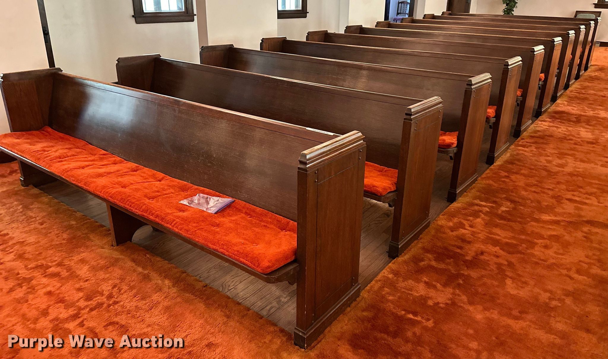 Purple Wave is selling a used Furniture in Kansas. This item is a (10) pews with the following: 108" L x 34" H