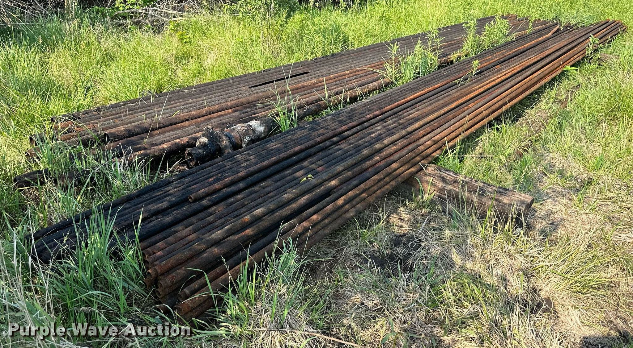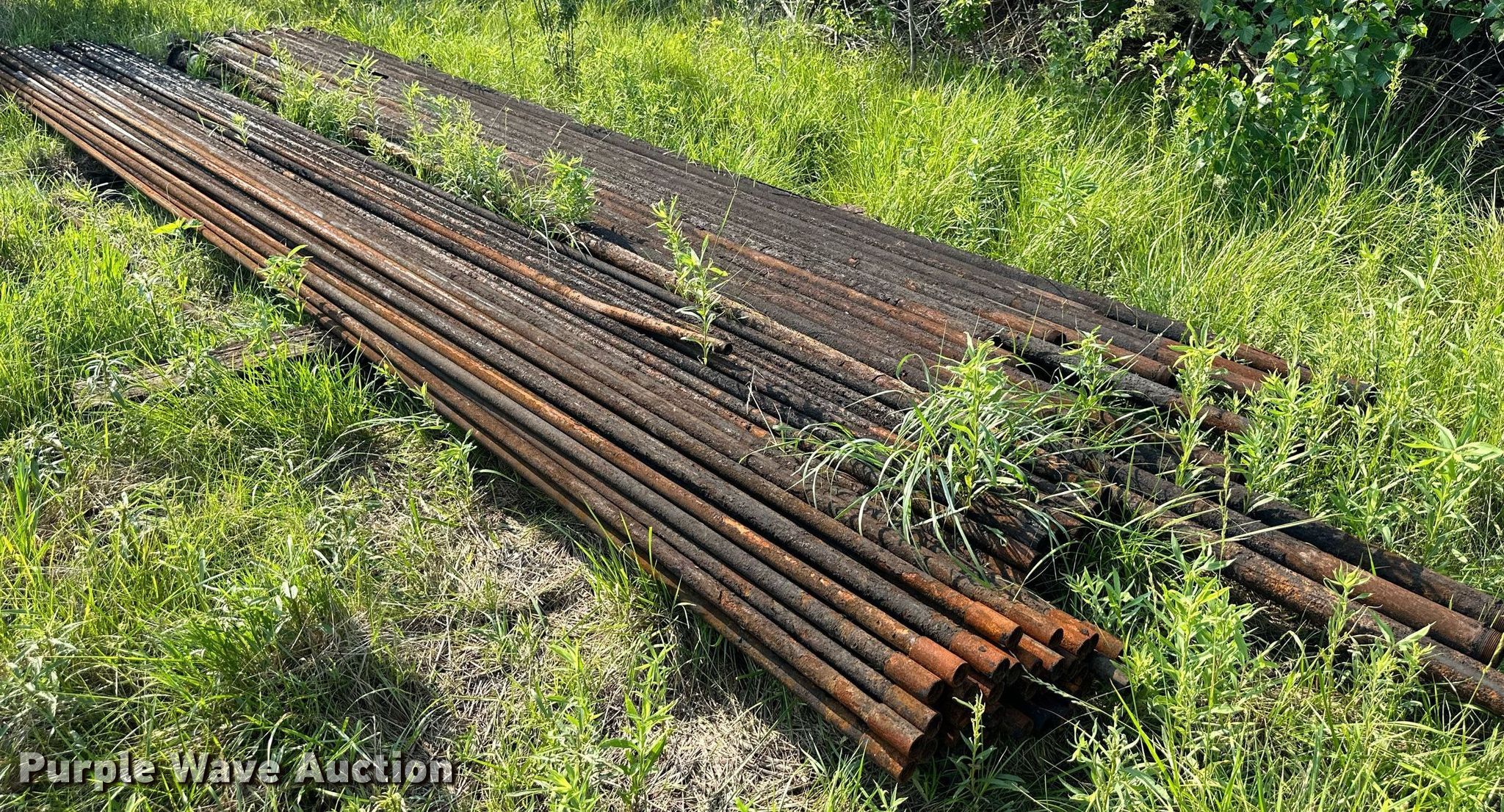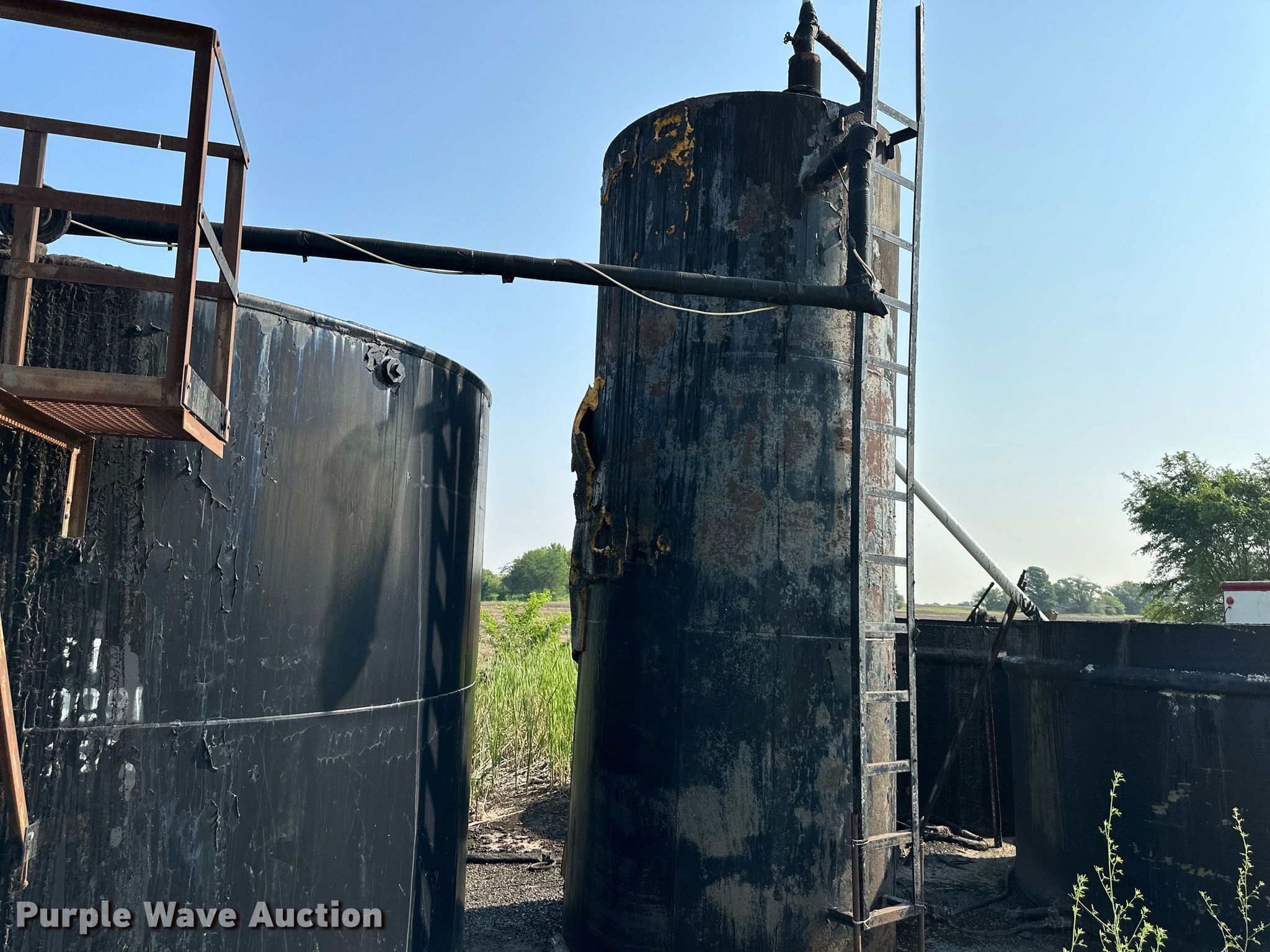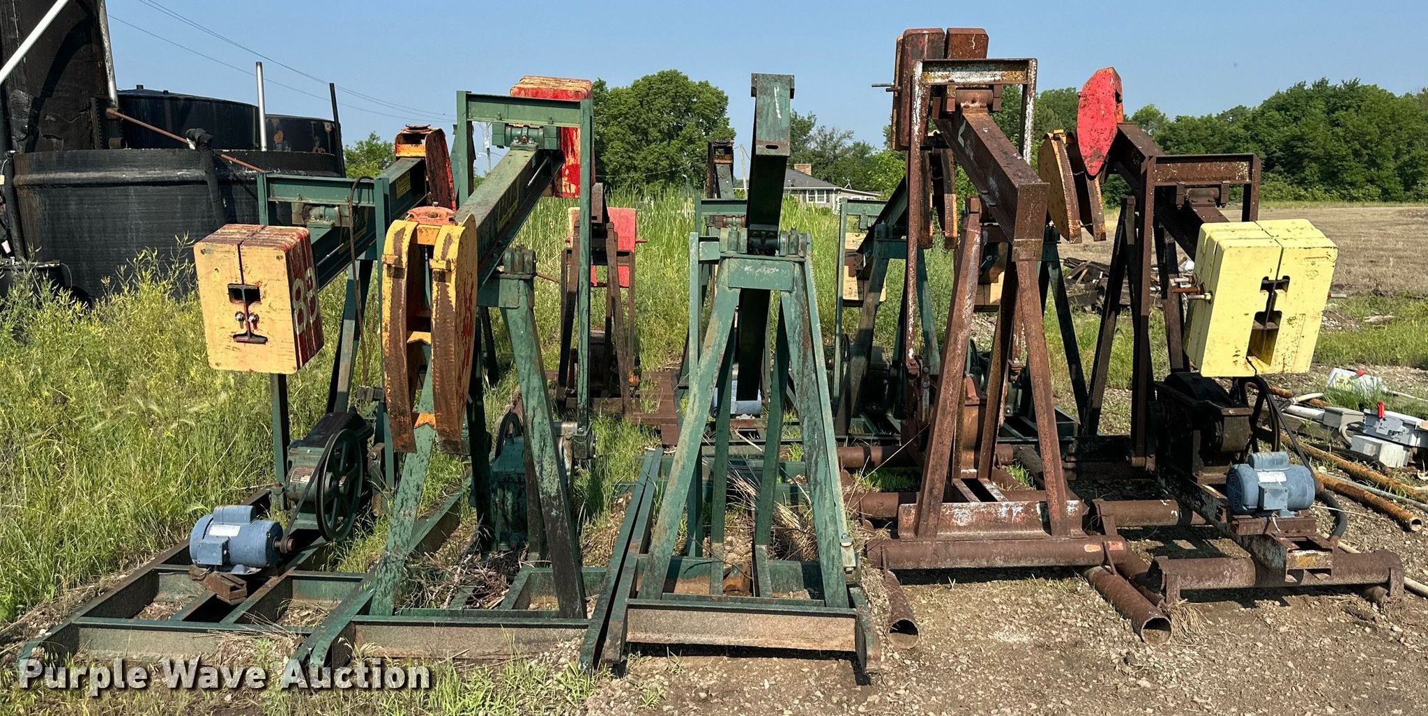Purple Wave is selling a used Other Industrial or Business in Kansas. This item is a Oilfield equipment with the following: Unit #: 2023FP3-01-Burks, Steel gun barrel, Capacity: 60 barrels, (2) steel tanks, Capacity: 100 barrels, (2) Fiberglass brine tanks, Capacity: 80 barrels, (7) Cook pump jacks, (5) electric motors, (3) Churchill pump jacks, One with electric motor, (15) railroad ties, (7) electrical boxes, (190) 25'L x 1" diameter pipes, (6) 20'L x 2 7/8" diameter pipes, (8) 25'L x 2 7/8" diameter pipes, Storage container, Injection pump, Manifold