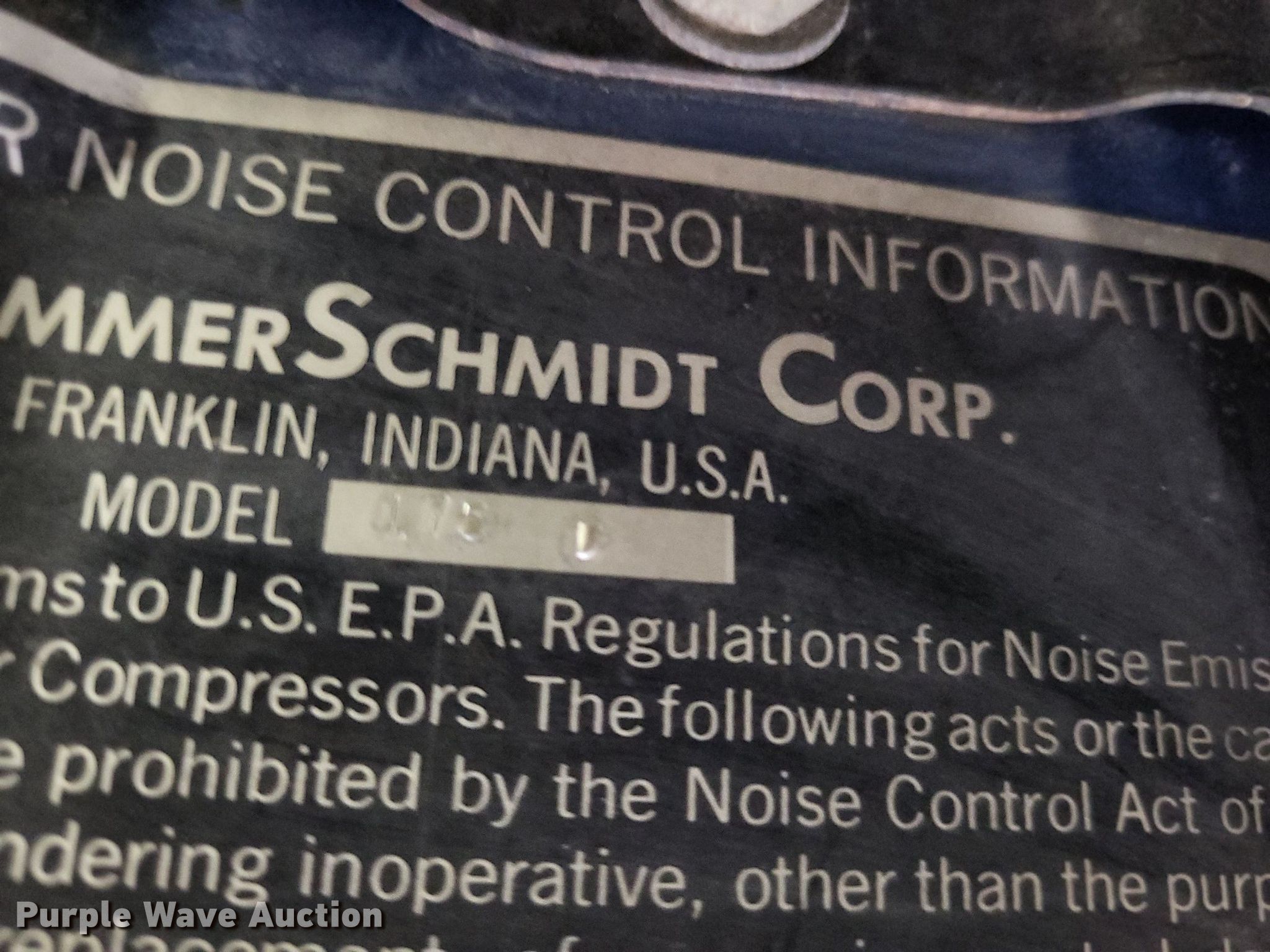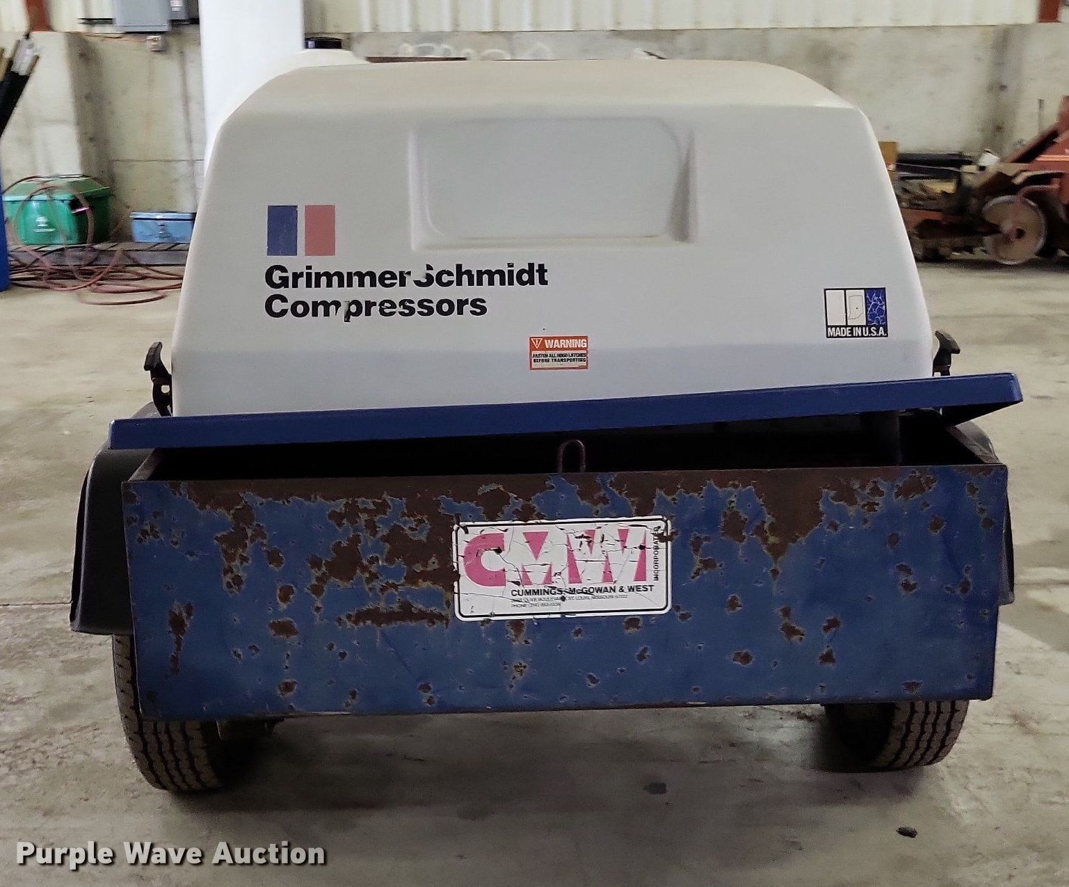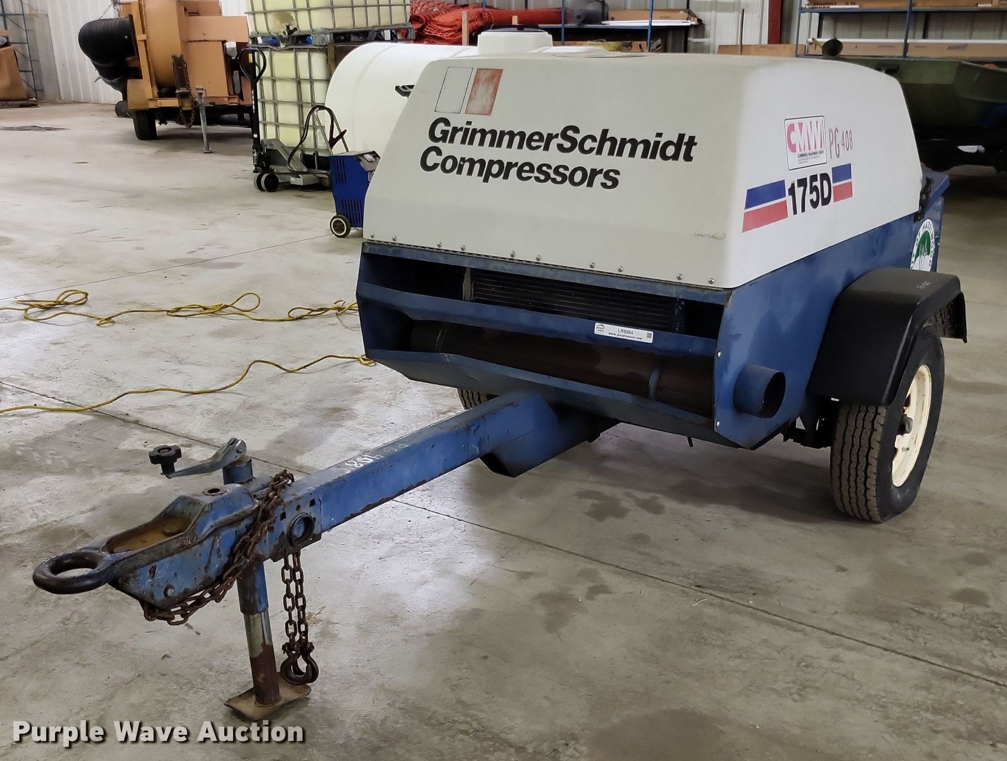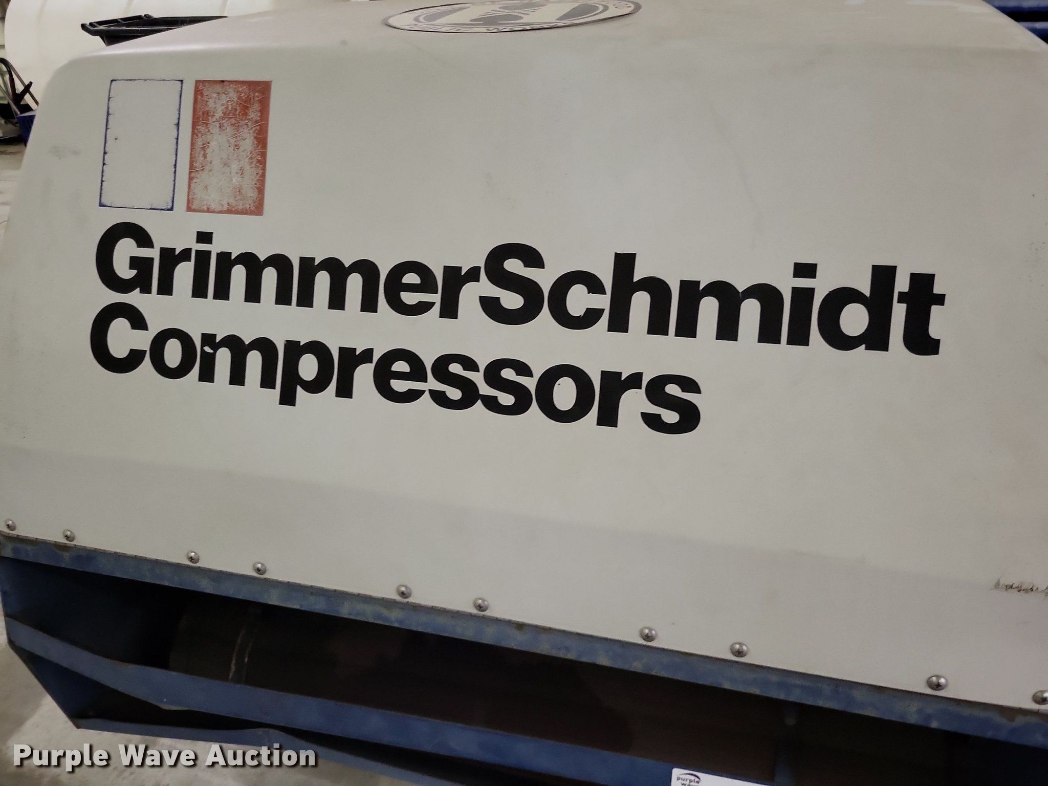 Purple Wave is selling a used Air Compressor in Missouri. This item is a Grimmer Schmidt 175D air compressor with the following: Hours: 875 on meter, Serial: 16657, Unit #: PG408