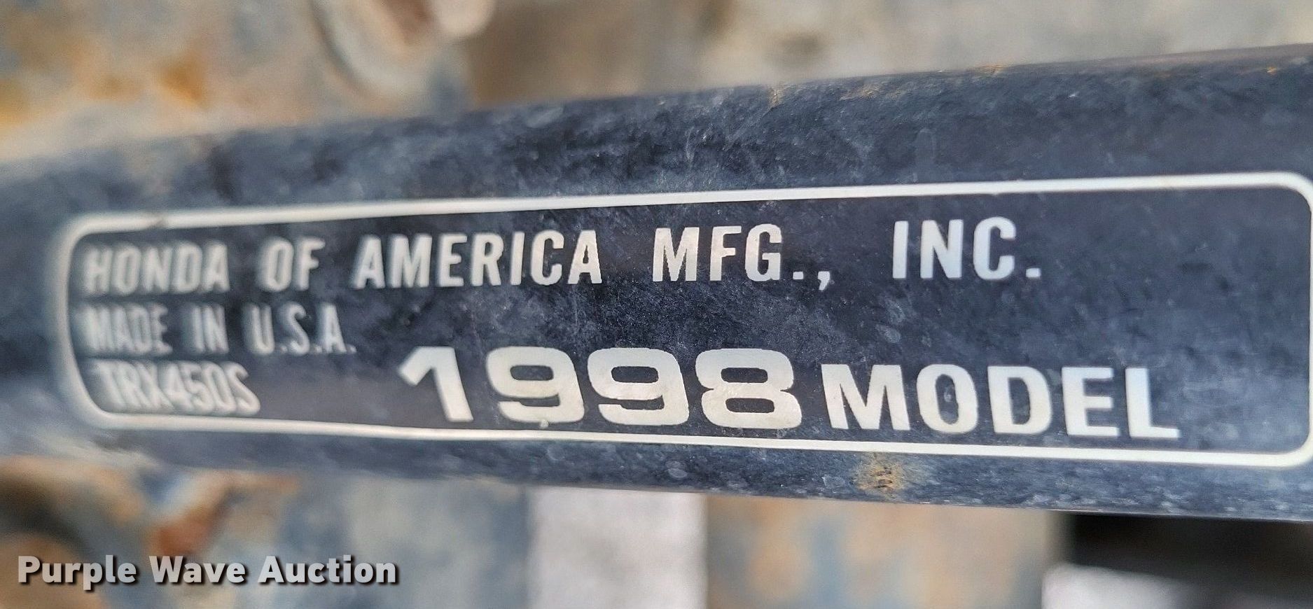 Purple Wave is selling a used ATV in Missouri. This item is a 1998 Honda Foreman S ATV with the following: Miles: 4,729 on odometer, Hours: 2,030 on meter, VIN: 478TE2204WA004507, Unit #: PG594
