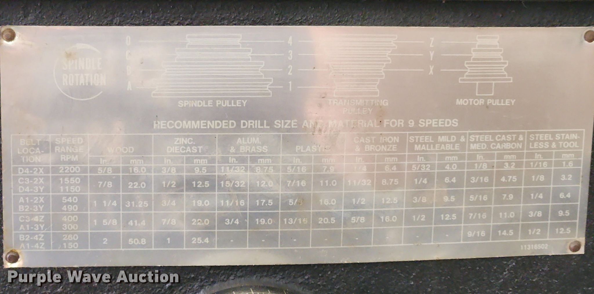Purple Wave is selling a used Tools in Missouri. This item is a Dayton 3Z919B drill press with the following: Serial: 105358, Unit #: HWY48