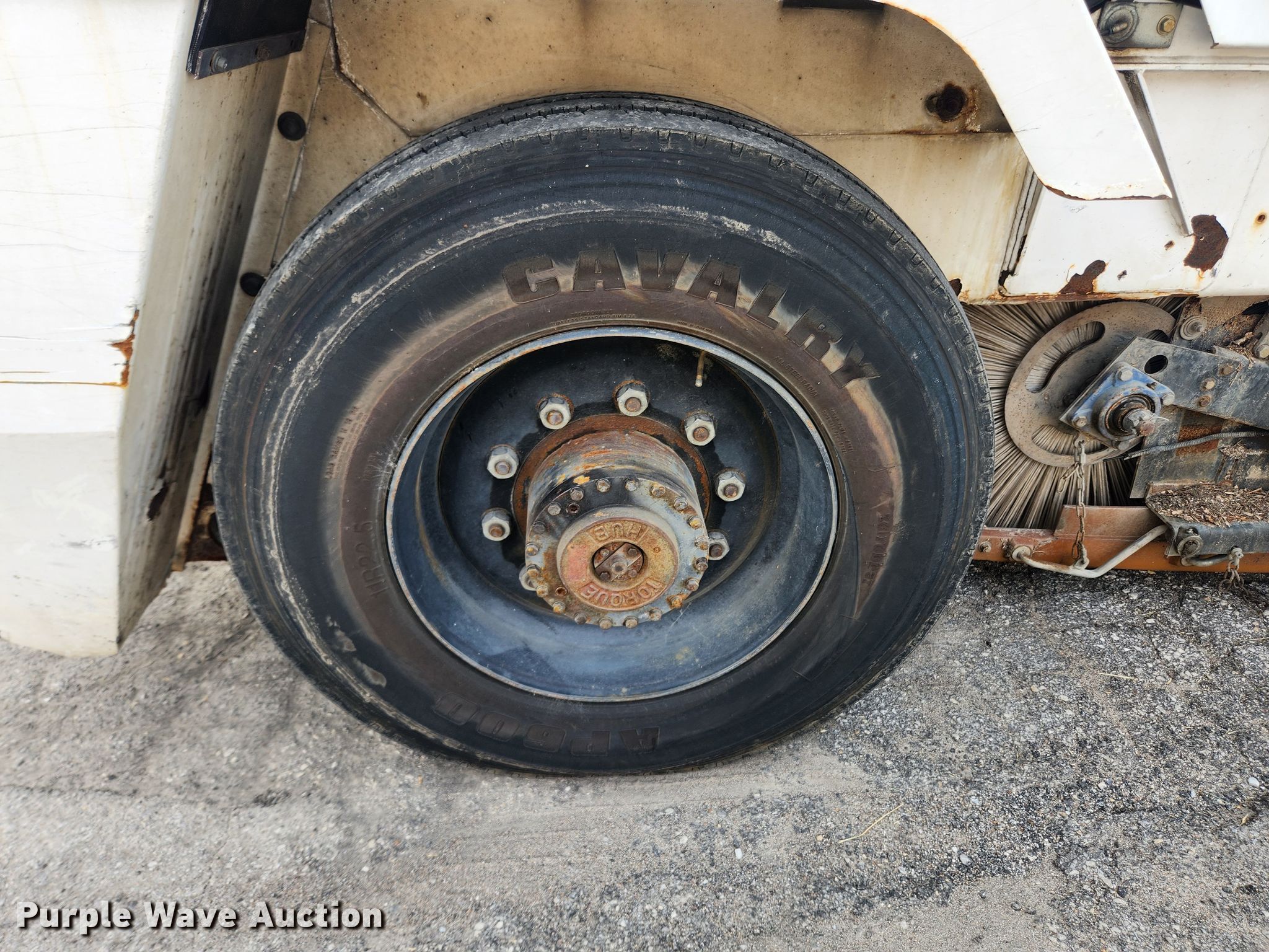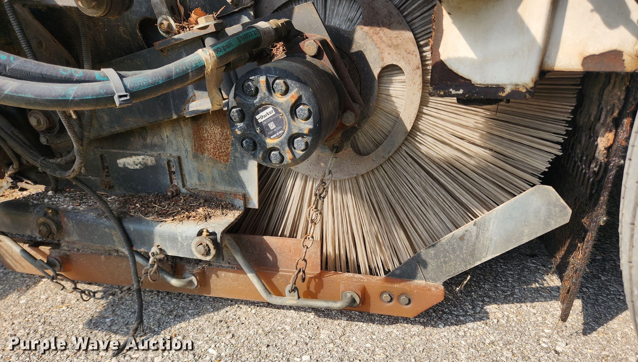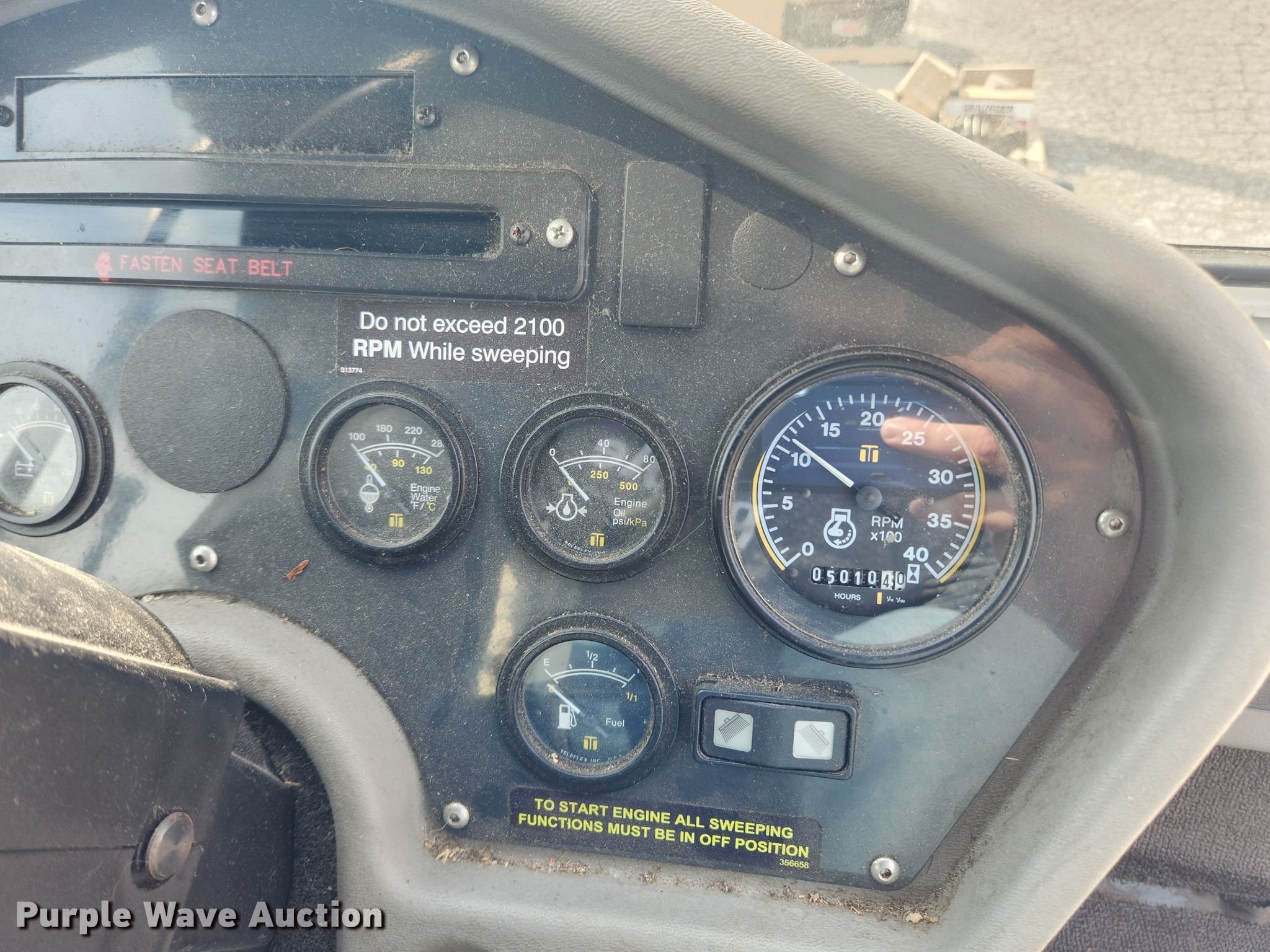 2014 Global M3 street sweeper truck. Miles: 24,861 on odometer, Hours: 5,010 on meter, VIN: 1G9GM3HJ1ES462022. Engine John Deere, Displacement: 4.5L, Cylinders: 4, Fuel type: Diesel. Transmission Automatic. Chassis Brakes: Hydraulic, GVWR: 24,360 lbs. Operators station AC, Heat, Backup camera. Features Broom Width: 60", Water spray system, Sweeper bed Sweeper bed type: Conveyor, Left gutter broom Diameter: 30", Right gutter broom Diameter: 30", (5) gutter brooms, Main broom, Spare parts. Tires Front: 10R17.5, Rear: 11R22.5, Front and rear spare. Notes Non-operational left side hydraulic wheel motor. Transfer of ownership documentation will be a bill of sale. City of Maryland Heights, MO. Maryland Heights, MO 63043
