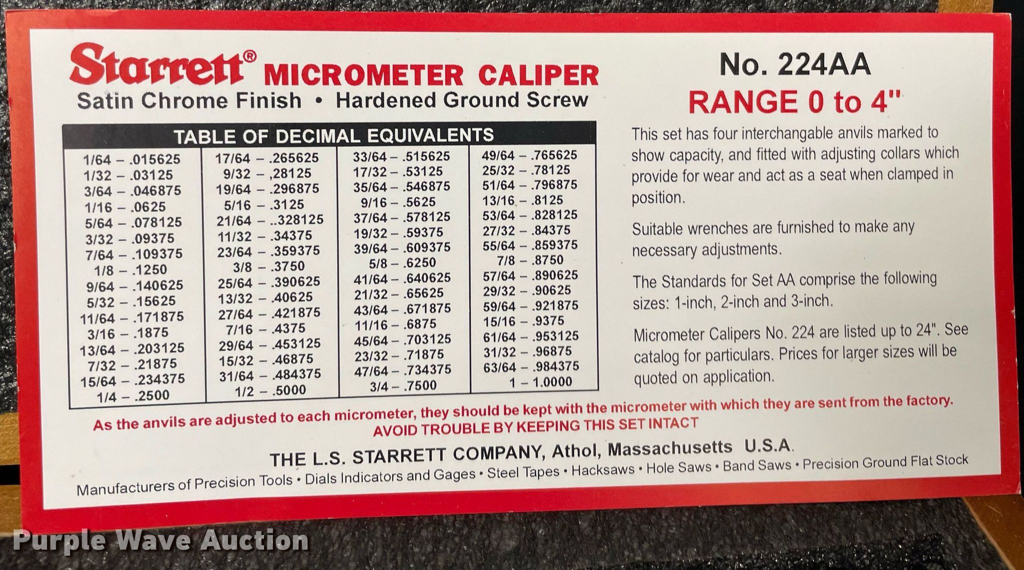 Purple Wave is selling a used Tools in Kansas. This item is a Starrett micrometer caliper with the following: Starrett micrometer caliper. City of Newton. Newton, KS 67114