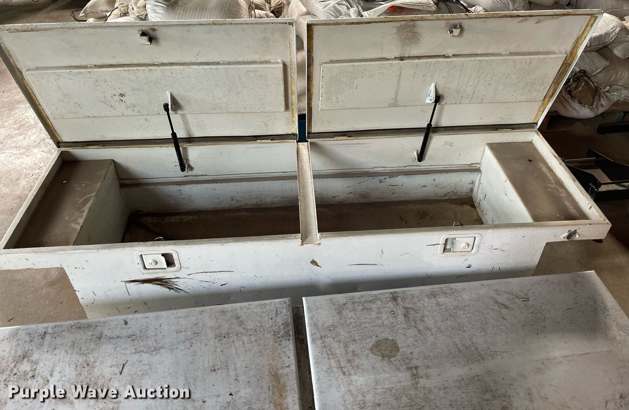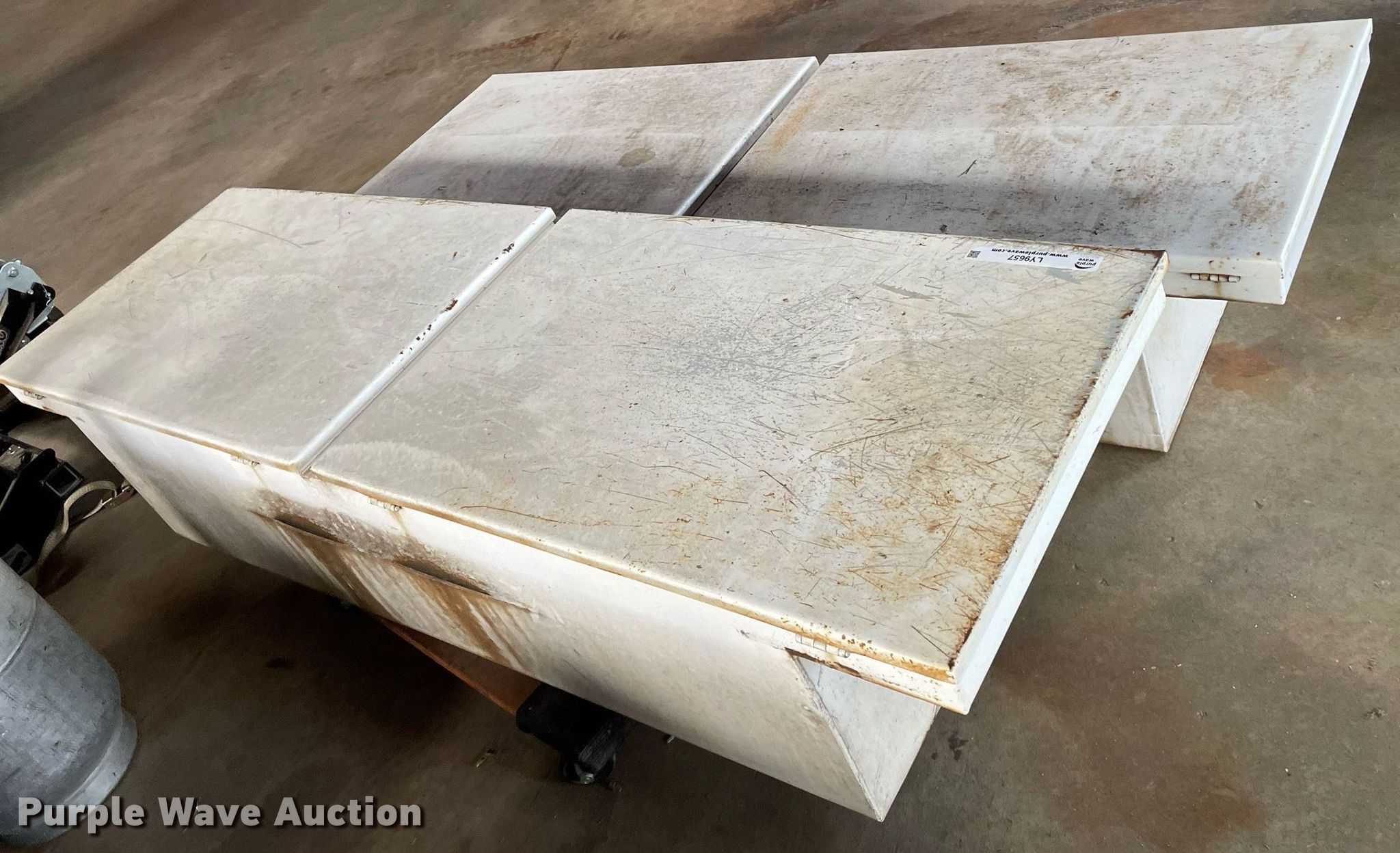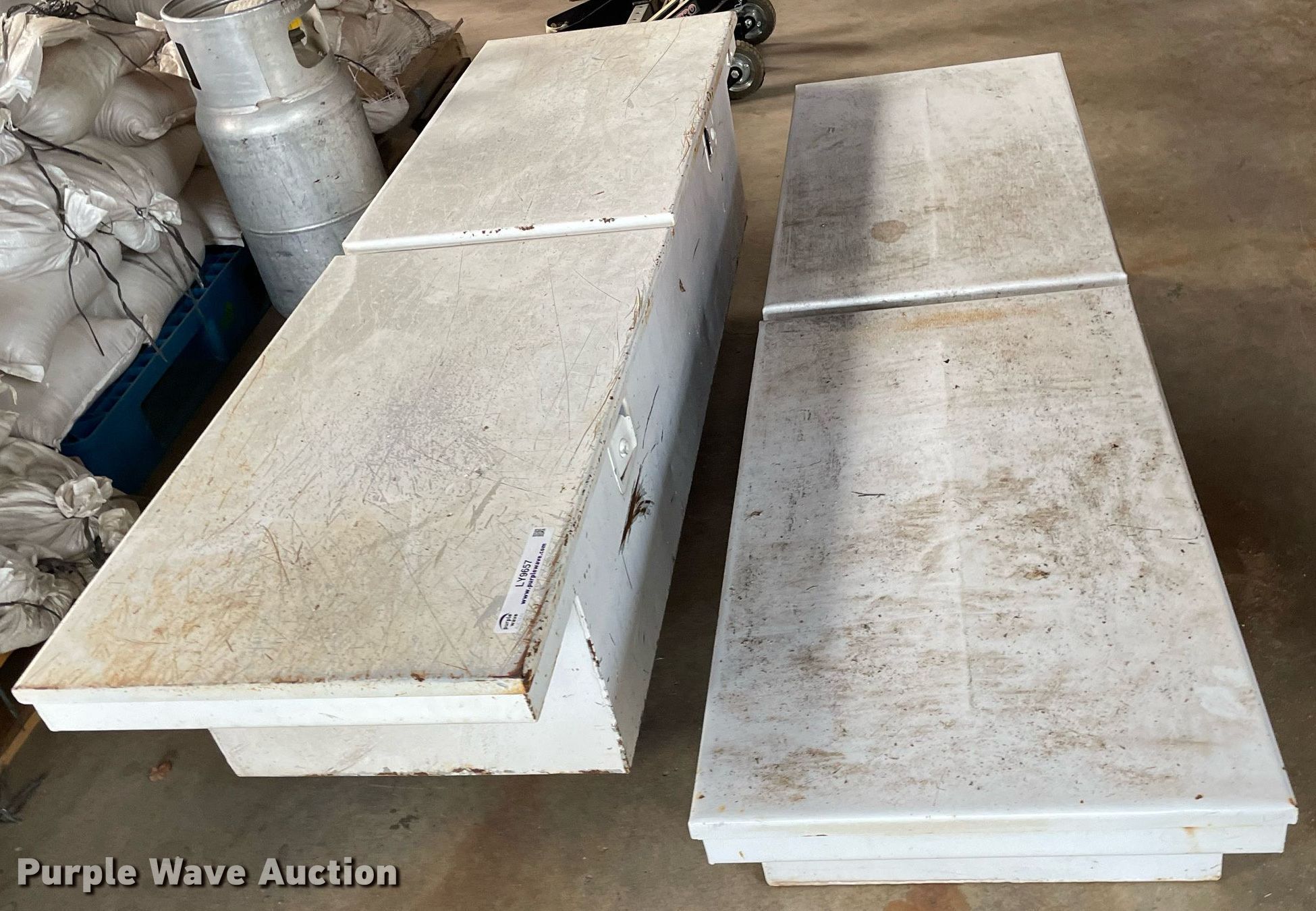 Purple Wave is selling a used Automotive Parts or Acces. in Kansas. This item is a (2) toolboxes with the following: One is locked, key missing