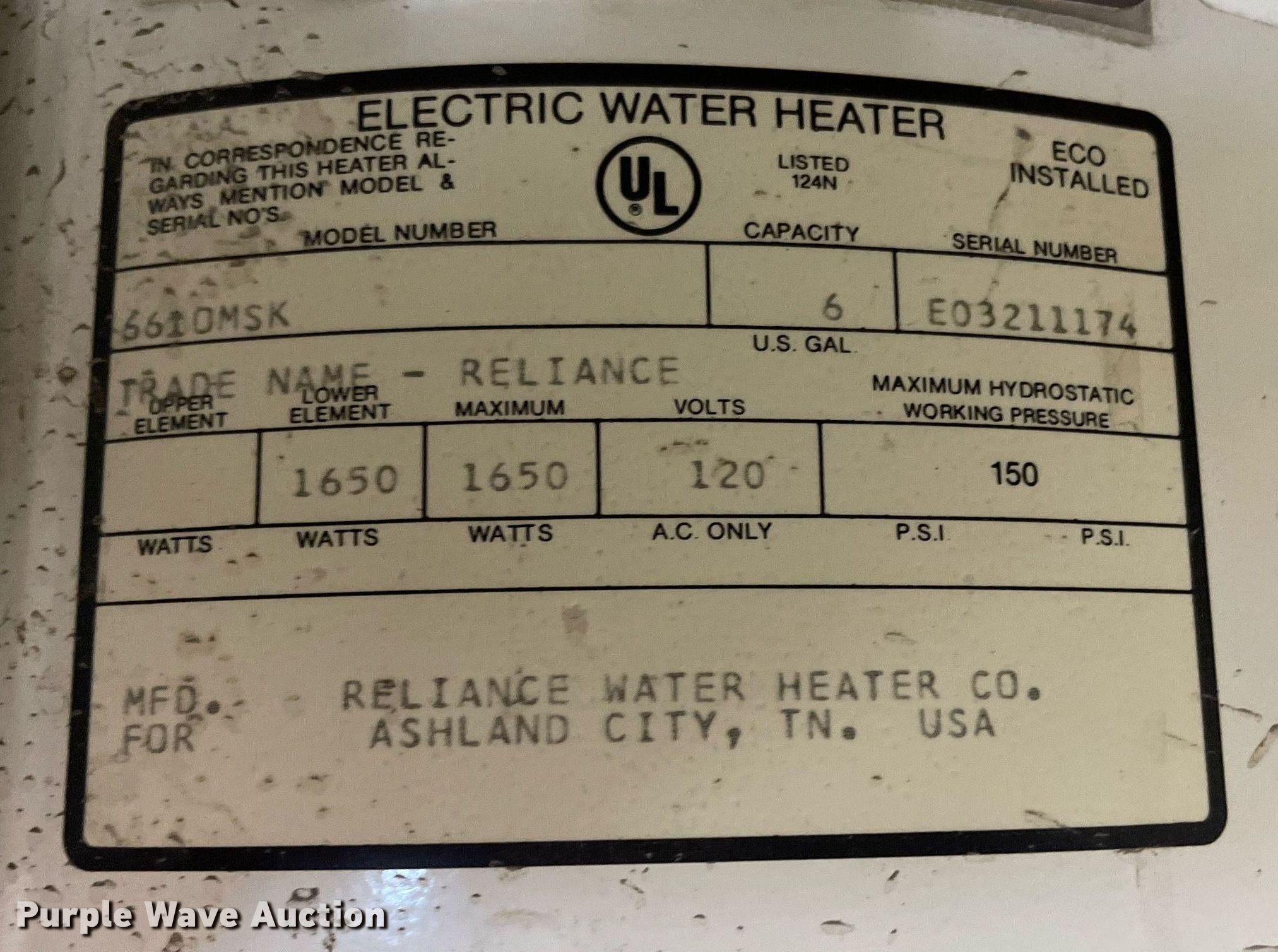 Purple Wave is selling a used Building Materials in Kansas. This item is a (2) electric water heaters with the following: Capacity: 10 gallons