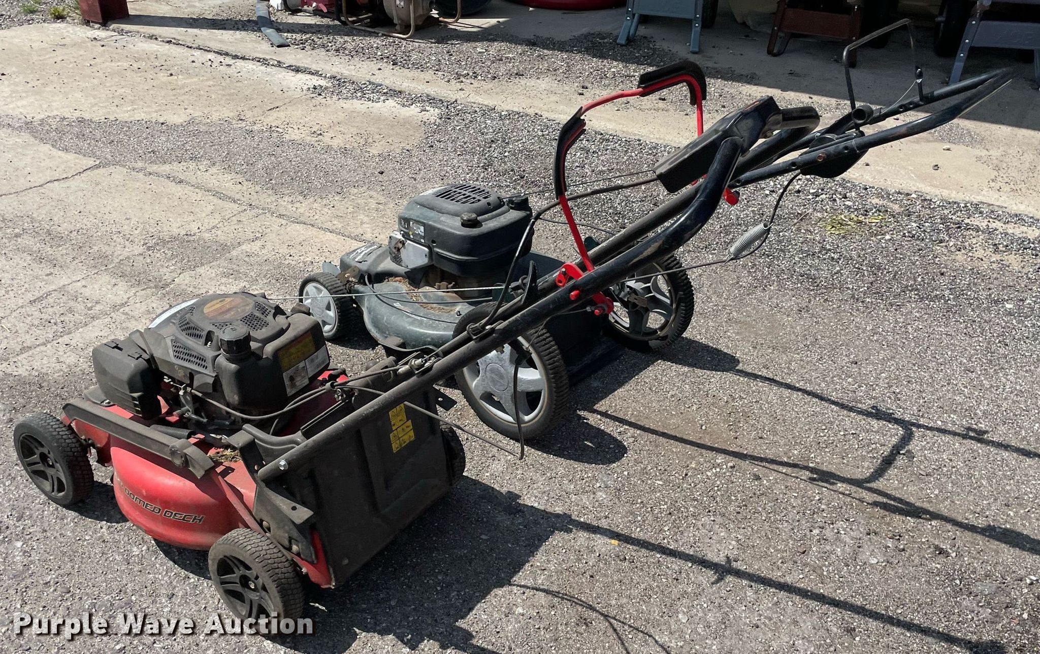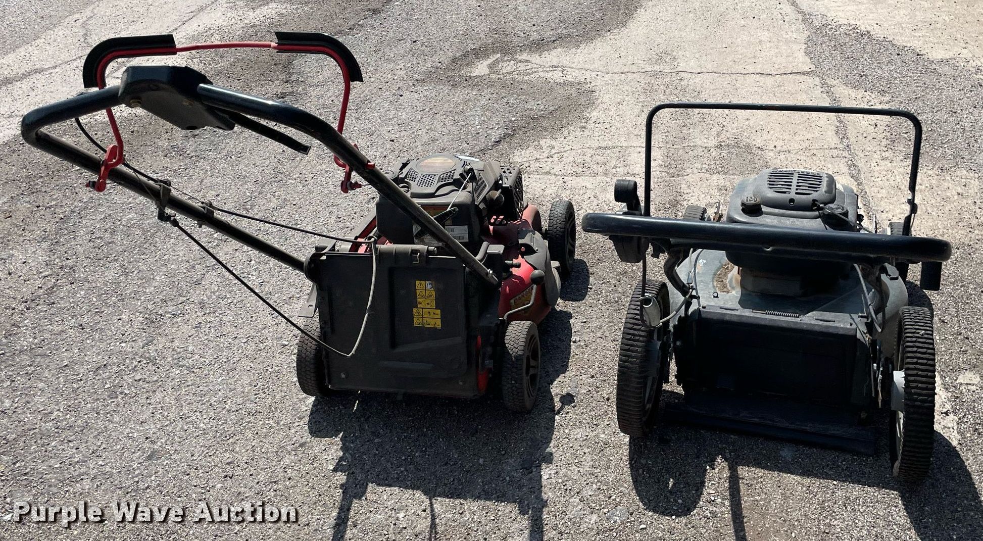 Purple Wave is selling a used Lawn Mower in Kansas. This item is a (2) lawn mowers with the following: Cutting width: 21", Cylinders: 1, Displacement: 175 cc, Fuel type: gas