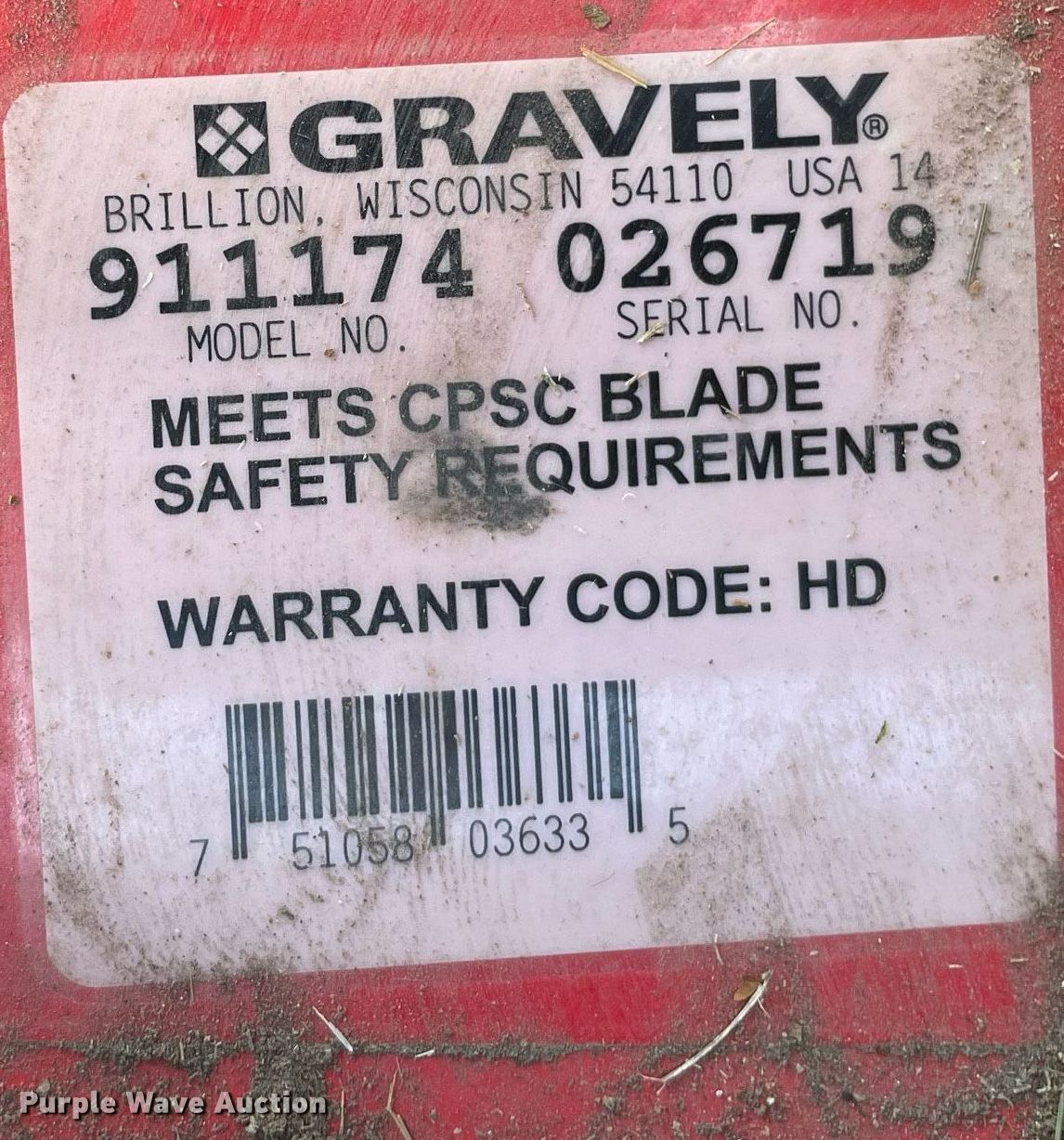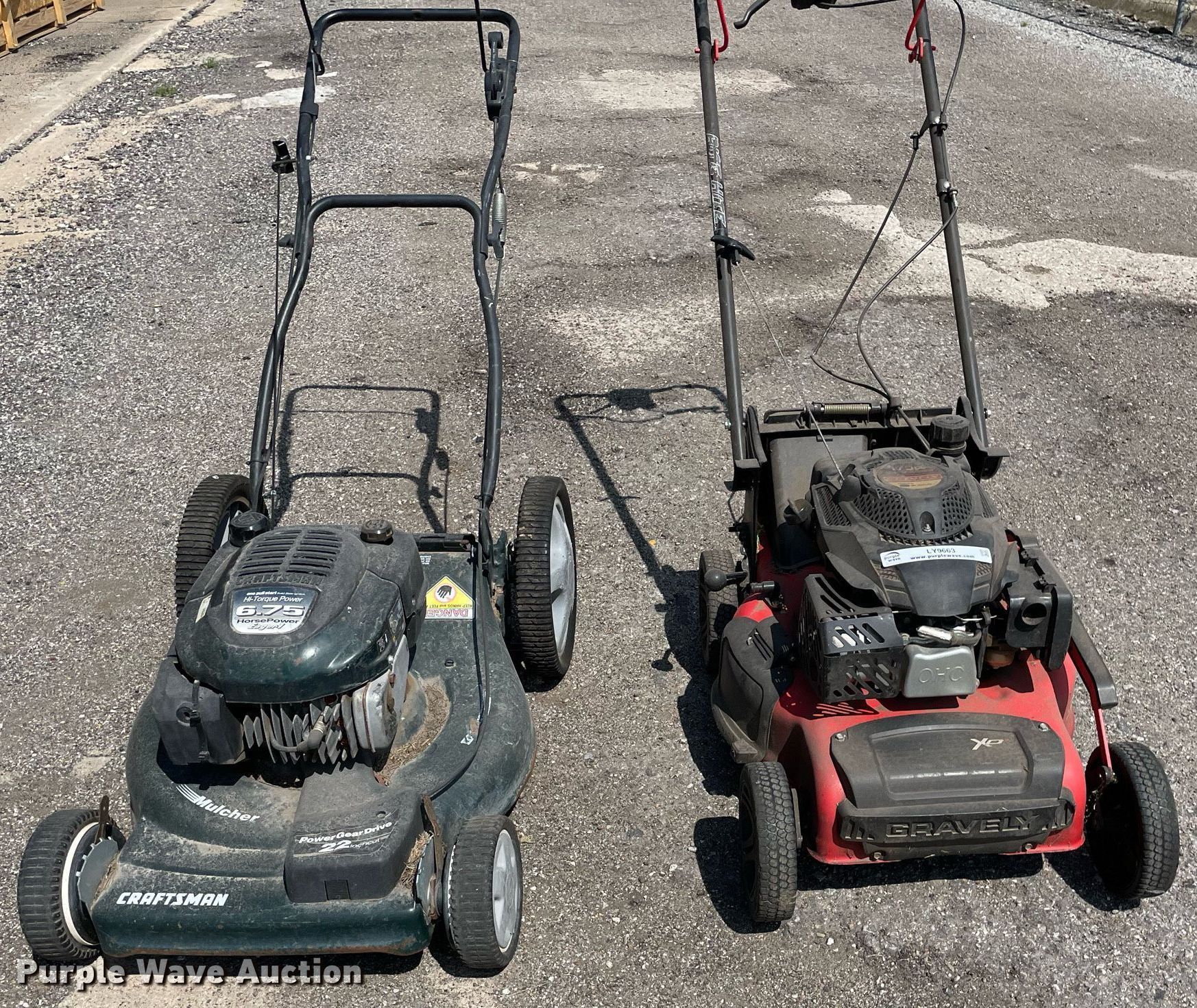 (2) lawn mowers. Gravely 911174. Cutting width: 21", Cylinders: 1, Displacement: 175 cc, Fuel type: gas. Craftsman 917.377593 Cutting width: 22", Cylinders: 1, HP: 6.75, Fuel type: Gas. Notes Unknown operating condition. City of Newton. Newton, KS 67114